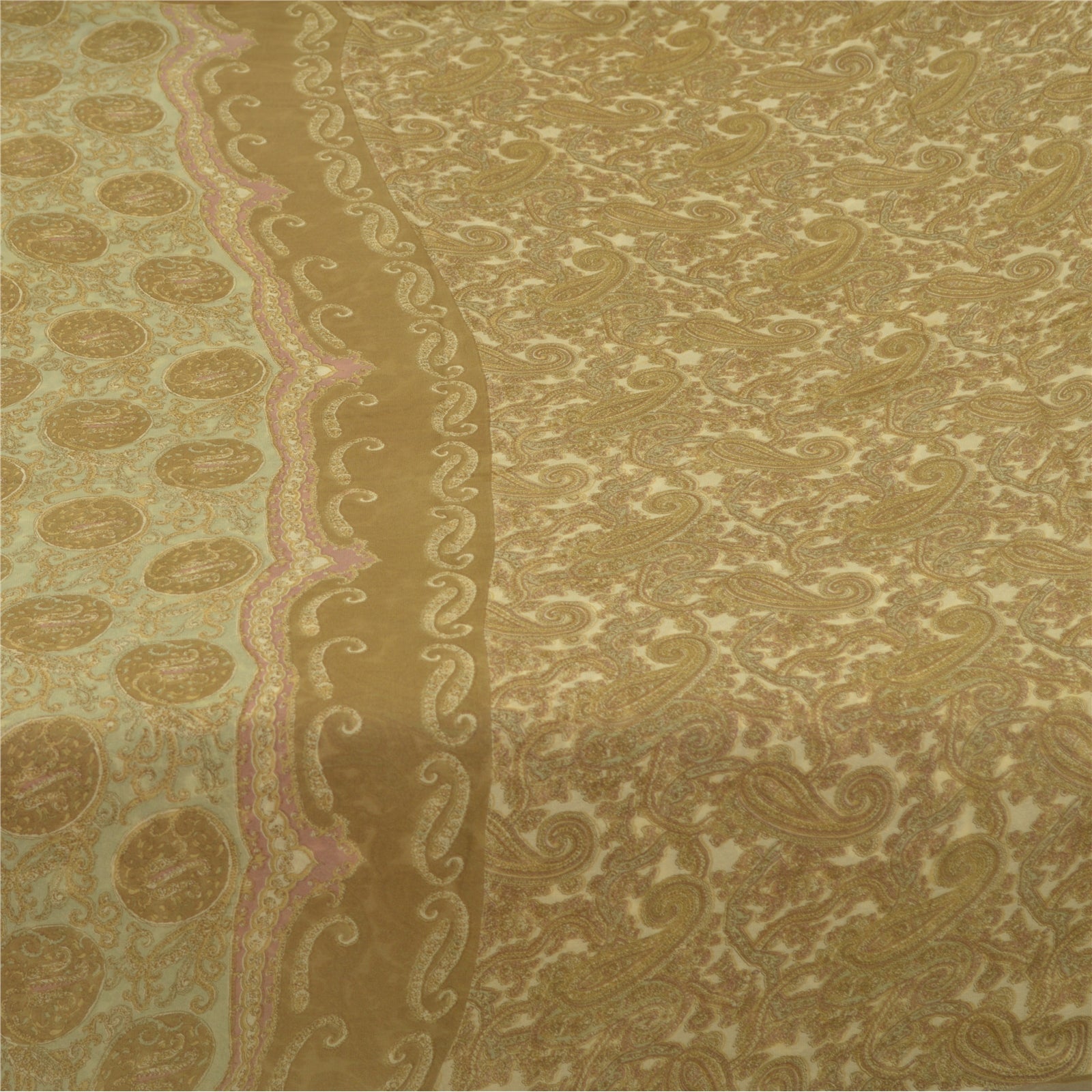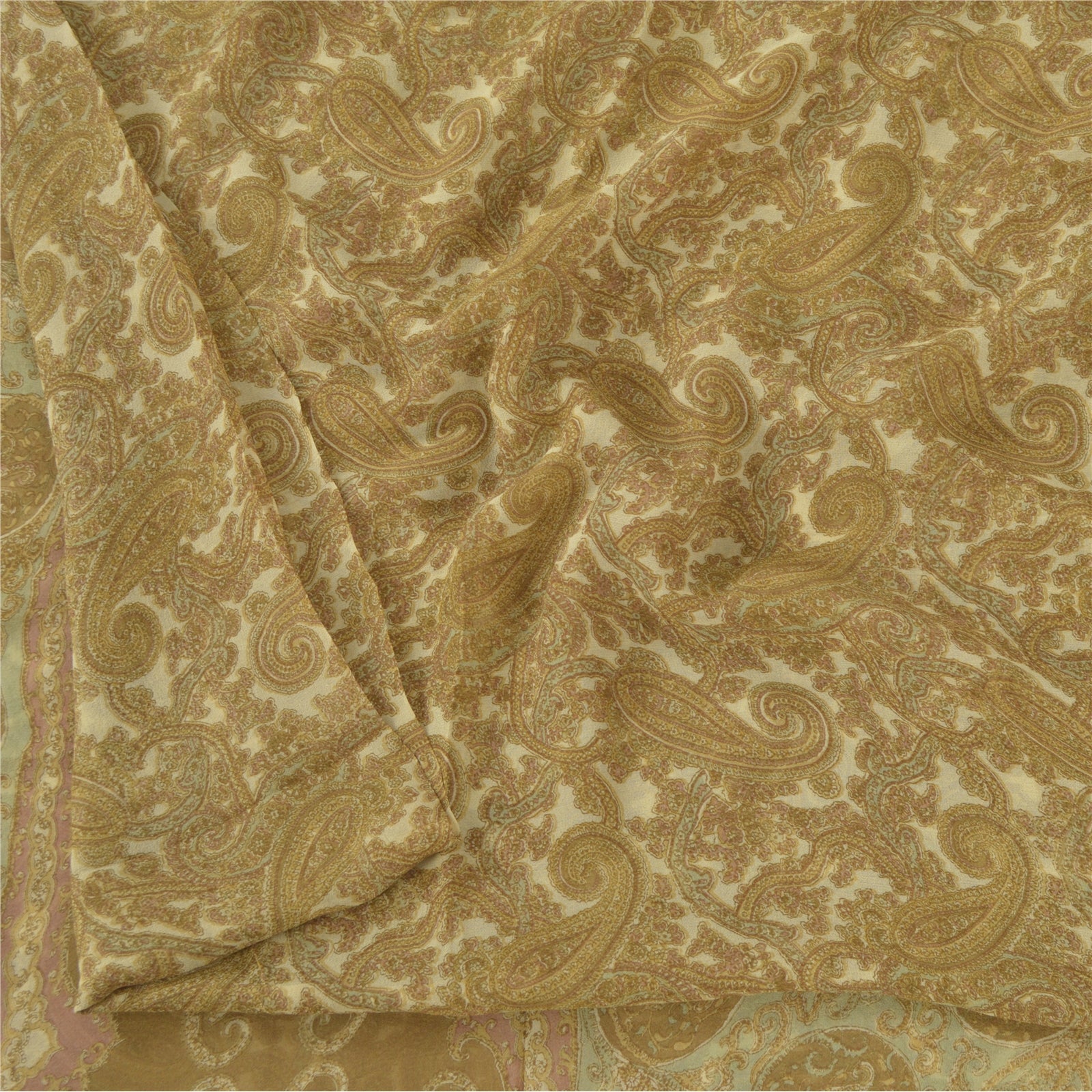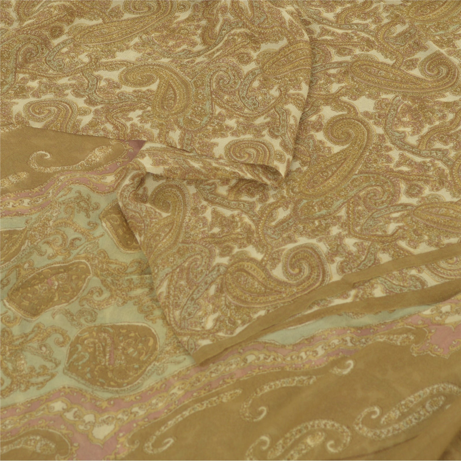Sanskriti Vintage Sarees Cream Blend Georgette Print Sari 6yd Soft Craft Sustainable Fabric