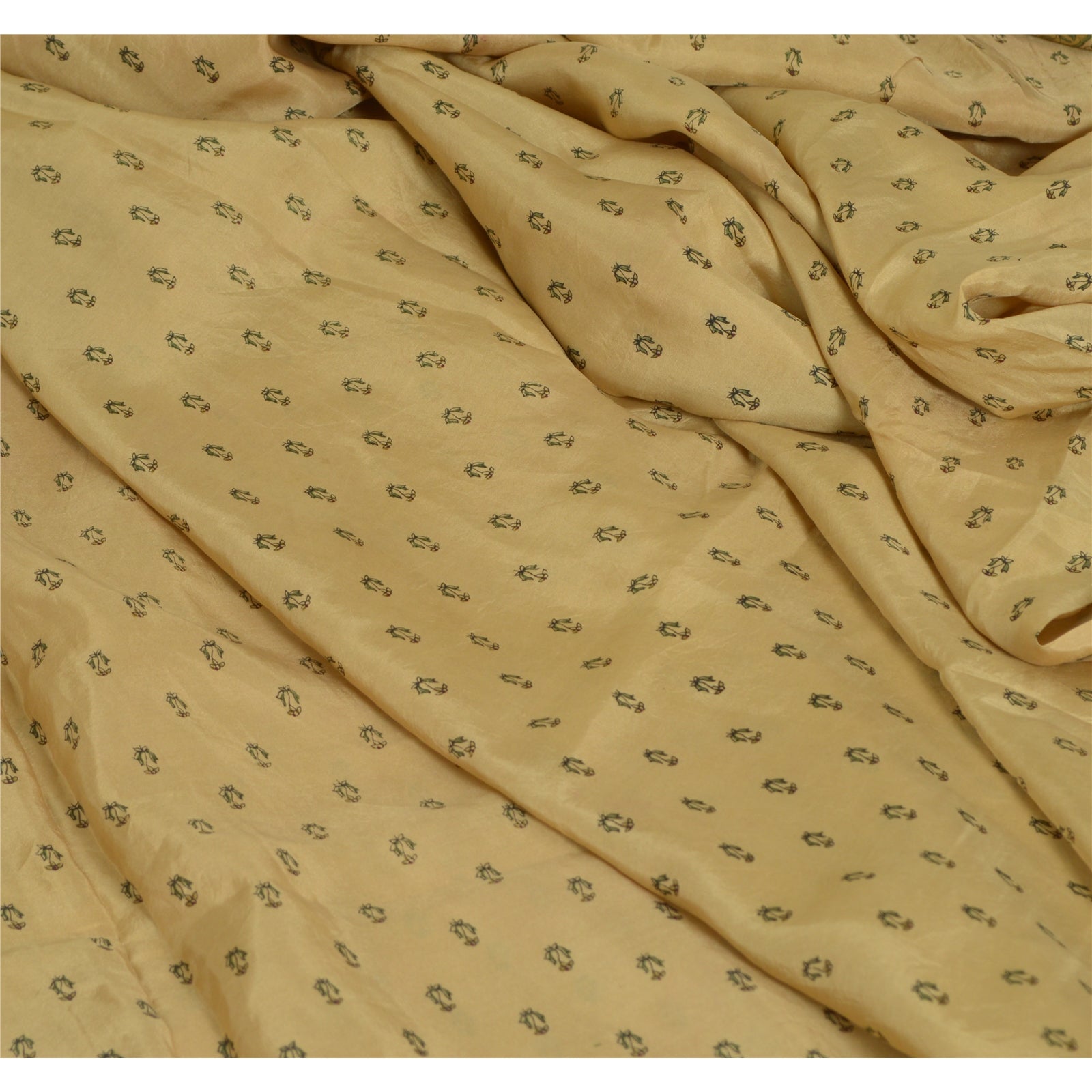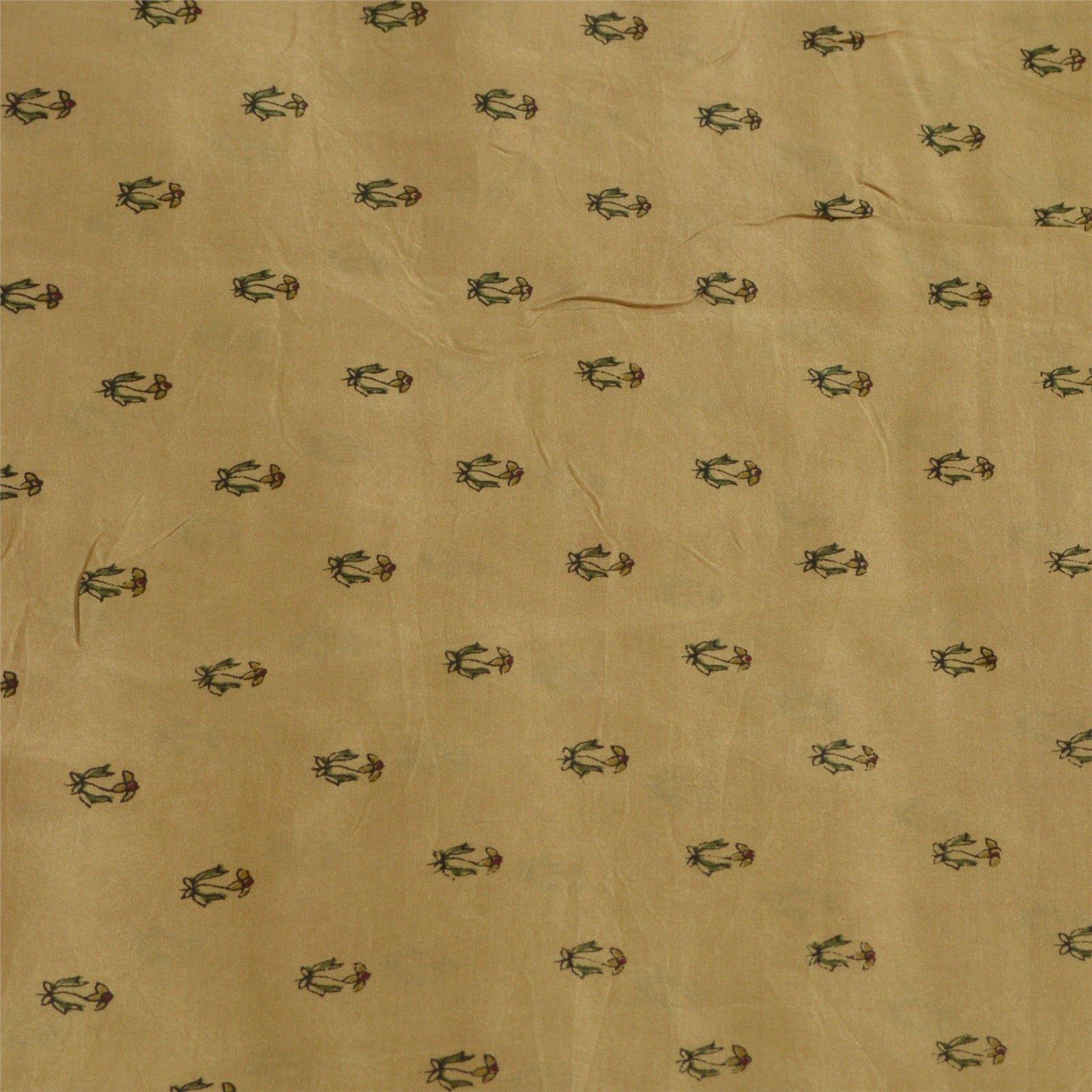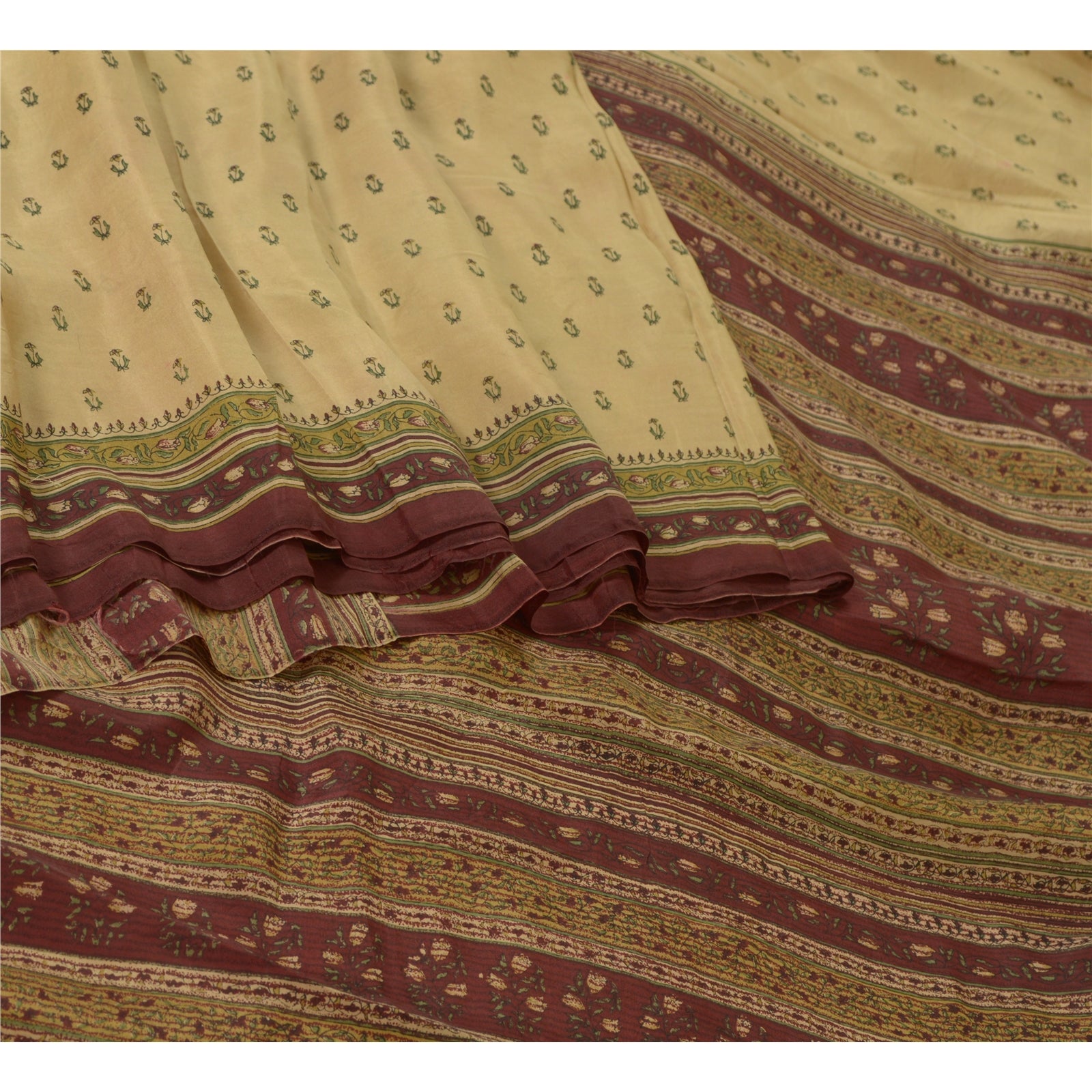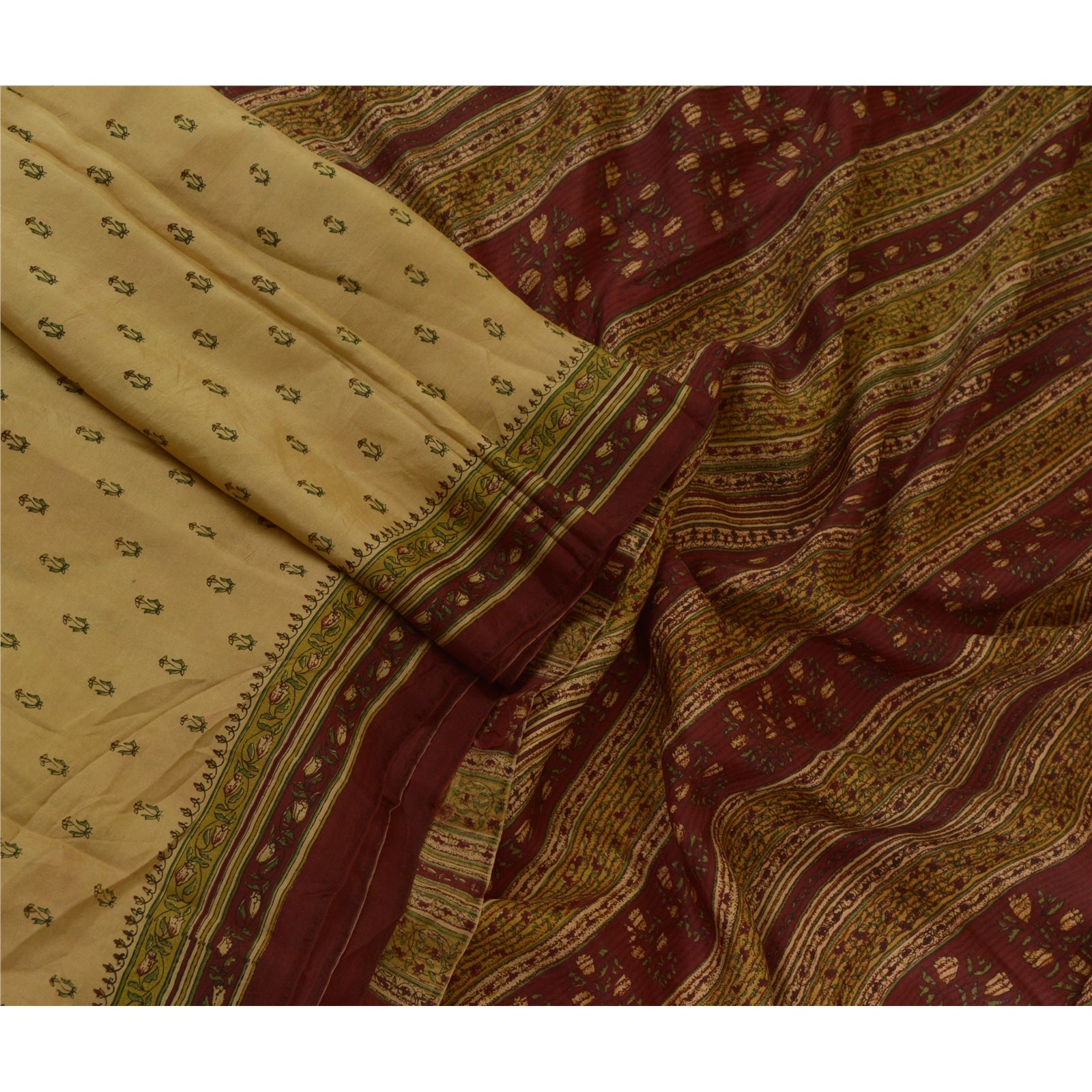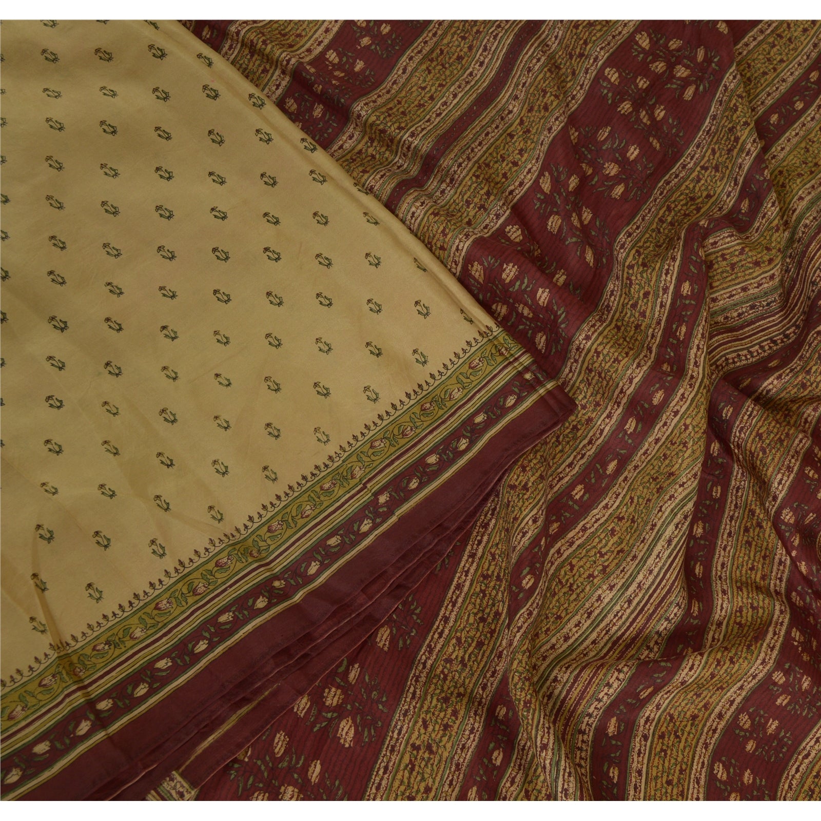 Sanskriti Vintage Sarees Cream/Dark Red Pure Silk Printed Sari Soft Craft Sustainable Fabric