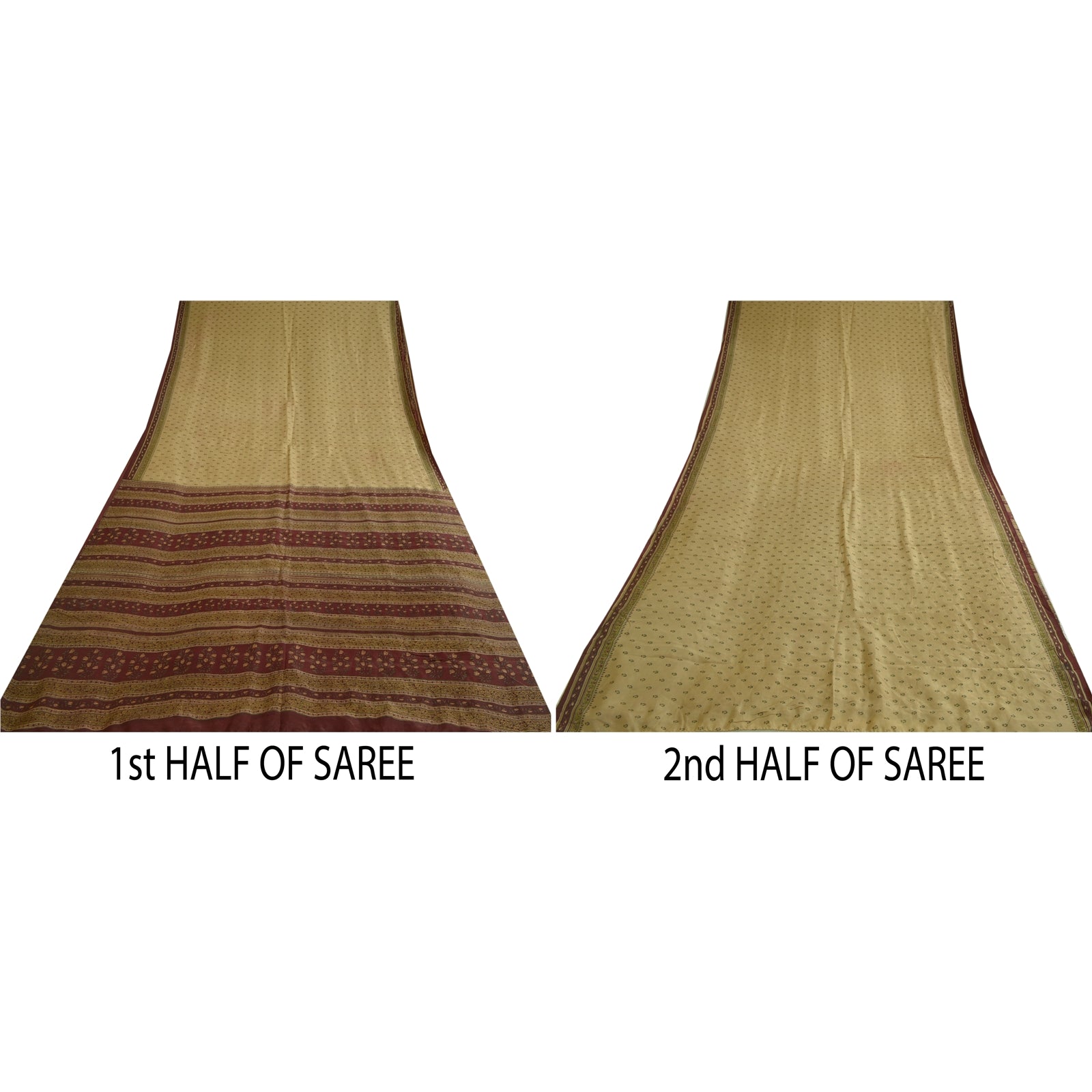 THE ITEM COLOR OR SHADE MAY BE DARKER OR LIGHTER THAN THE PICTURE.' Beautiful cream & dark red colored pure silk printed saree. Pallu & Border has printed floral design. Similar design in center part of saree. What is special about this saree? Fabulous design is really enhancing the beauty of the saree.This unique vintage saree can be used for various crafting ideas even if you don't want to use it as a sari. Design a dress, use it as window, dressing, upholstery, sarongs, throw, dress making and table linen much more. Let your creative juices flow and use this decorated Sustainable Fabric in multiple fashion. International buyers please note: Import duties, taxes, and charges are not included in the item price or postage cost. These charges are the buyer's responsibility. Please check with your country's customs office to determine what these additional costs will be prior to bidding or buying. Buyer will pay custom duty/tax. It is calculated and charged differently by every country. As a seller I do not have any control over it. VAT or sales tax is calculated by the platform at the time of checkout. Customs charge is payable at the time of delivery.'