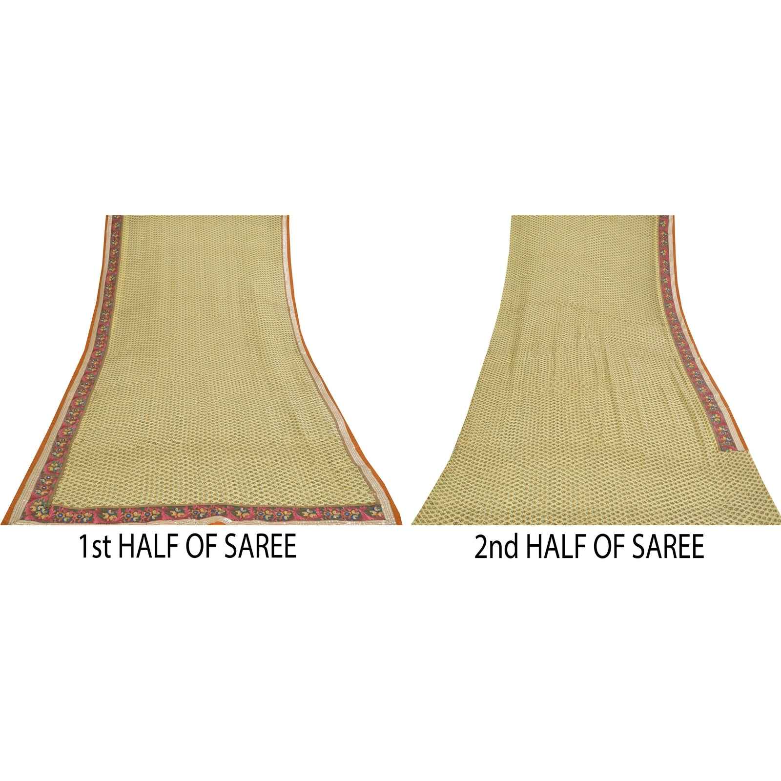 Sanskriti Vintage Sarees Cream Embroidered Pure Georgette Print Sari 6yd Sustainable Fabric
