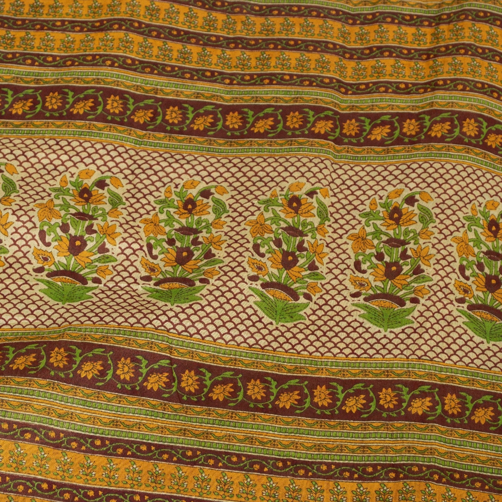 Sanskriti Vintage Sarees Cream Pure Cotton Floral Printed 5+yd Sari Craft Fabric