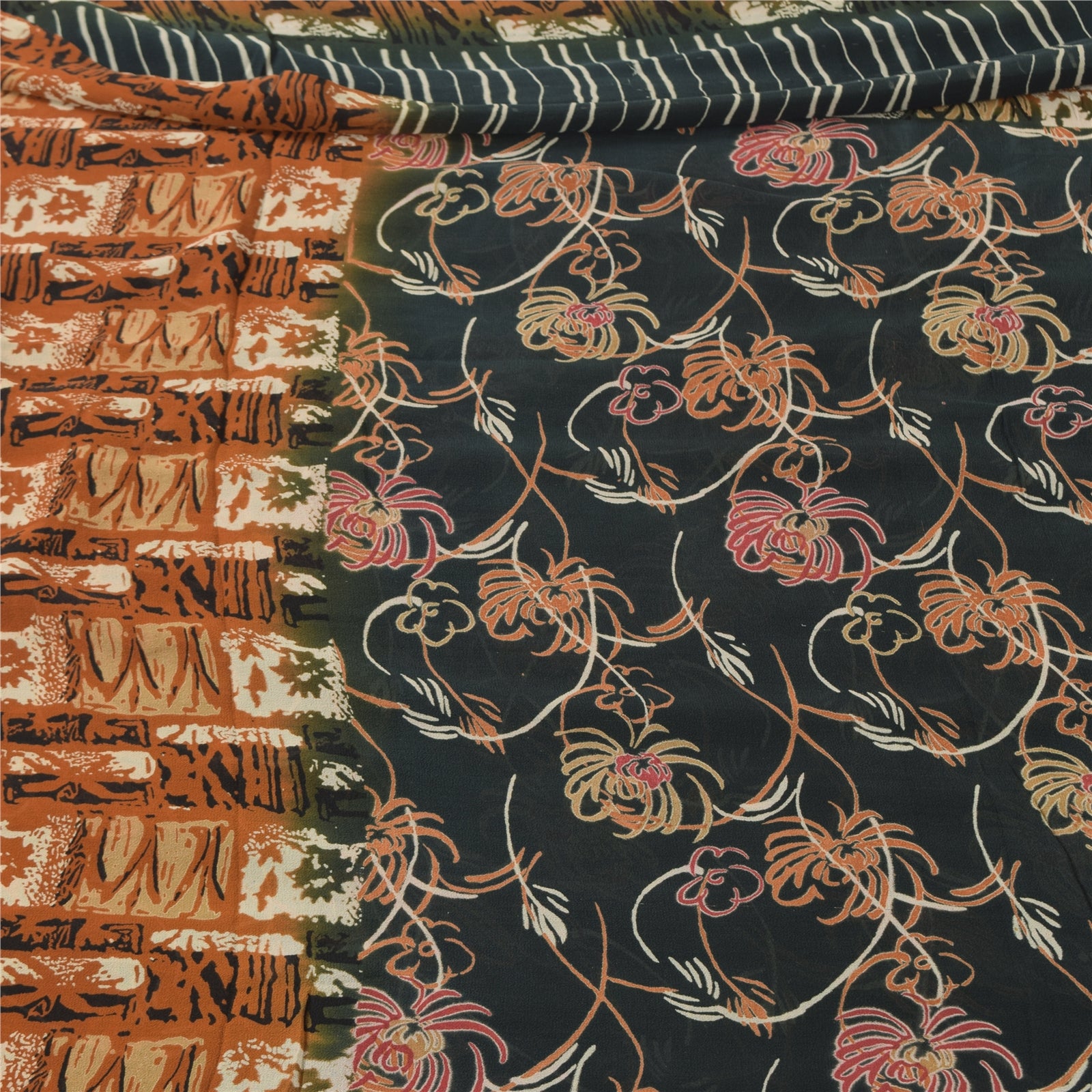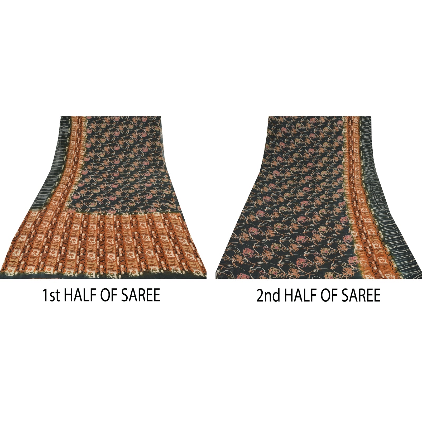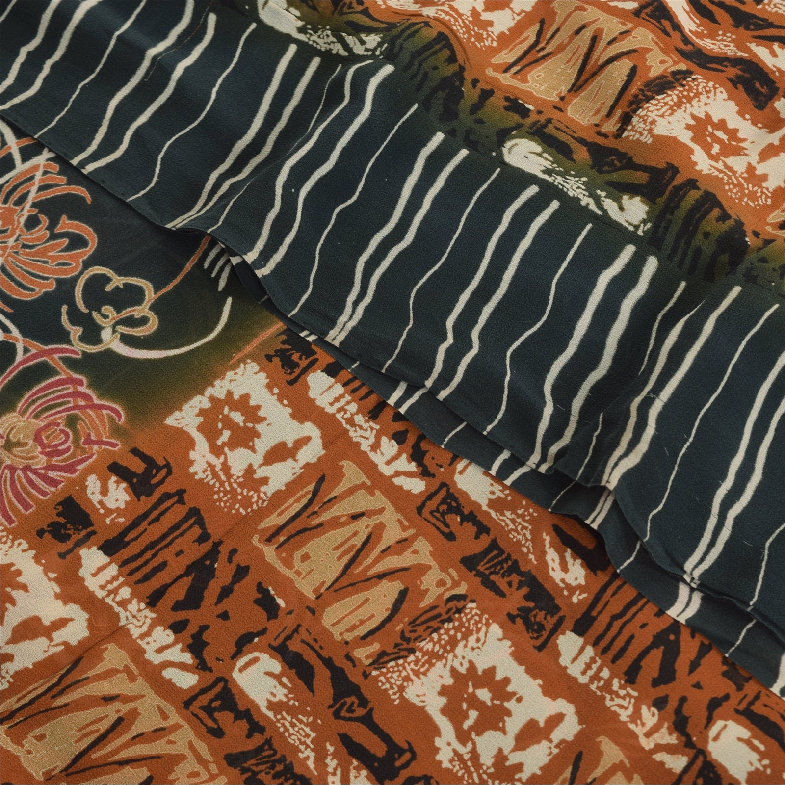 Sanskriti Vintage Sarees Dark Gray Pure Georgette Silk Printed Sari Craft Sustainable Fabric