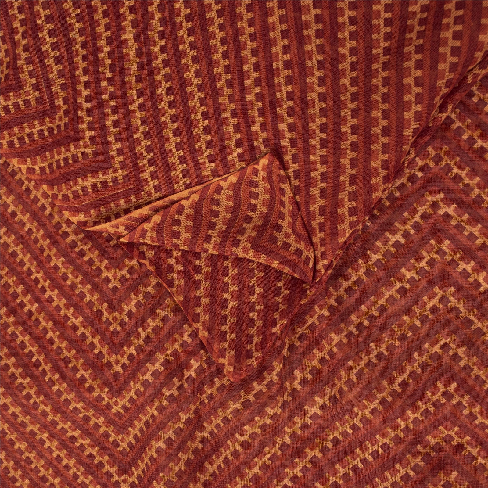THE ITEM COLOR OR SHADE MAY BE DARKER OR LIGHTER THAN THE PICTURE. Attractive dark red colored pure cotton printed sari. Allover sari has printed geometric design. This unique vintage saree can be used for various crafting ideas even if you don't want to use it as a sari. Design a dress, use it as a as window dressing, upholstery, sarongs, throw, dress making and table linen much more. Let your creative juices flow and use this decorated fabric in multiple fashion. Shipping Note: 'International buyers please note: Import duties, taxes, and charges are not included in the item price or postage cost. These charges are the buyer's responsibility. Please check with your country's customs office to determine what these additional costs will be prior to bidding or buying. Buyer will pay custom duty/tax. It is calculated and charged differently by every country. As a seller I do not have any control over it. VAT or sales tax is calculated by the platform at the time of checkout. Customs charge is payable at the time of delivery.' PCS-7220