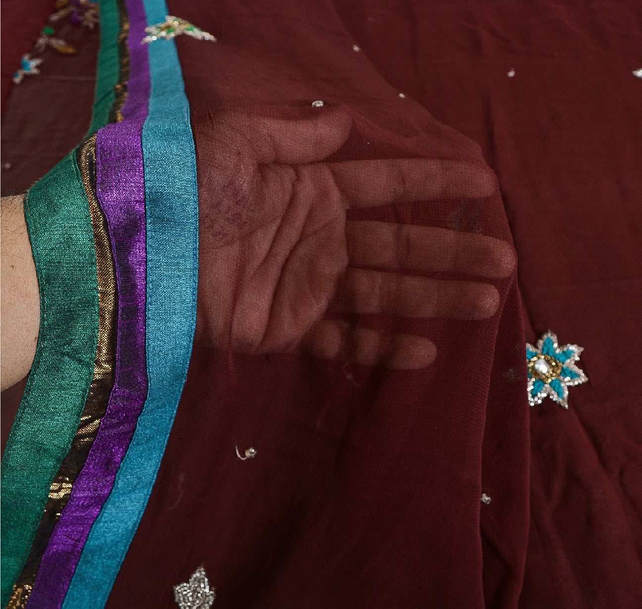 THE ITEM COLOR OR SHADE MAY BE DARKER OR LIGHTER THAN THE PICTURE. 'Beautiful dark red colored pure georgette silk hand embroidered sari. Pallu & border has floral design with dabka, thread, rhinestone work & multicolor Sustainable Fabric patch work. Similar work in center part of saree. This saree can be used for various crafting ideas too. Use it for dress designing, as a throw, as window dressing, upholstery, table linen and much more. Let your creative juices flow. 'International buyers please note: Import duties, taxes, and charges are not included in the item price or postage cost. These charges are the buyer's responsibility. Please check with your country's customs office to determine what these additional costs will be prior to bidding or buying. Buyer will pay custom duty/tax. It is calculated and charged differently by every country. As a seller I do not have any control over it. VAT or sales tax is calculated by the platform at the time of checkout. Customs charge is payable at the time of delivery.'