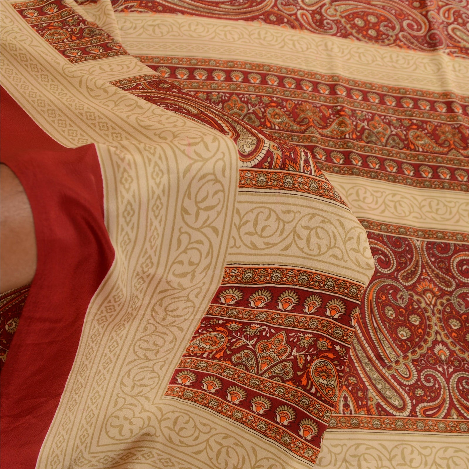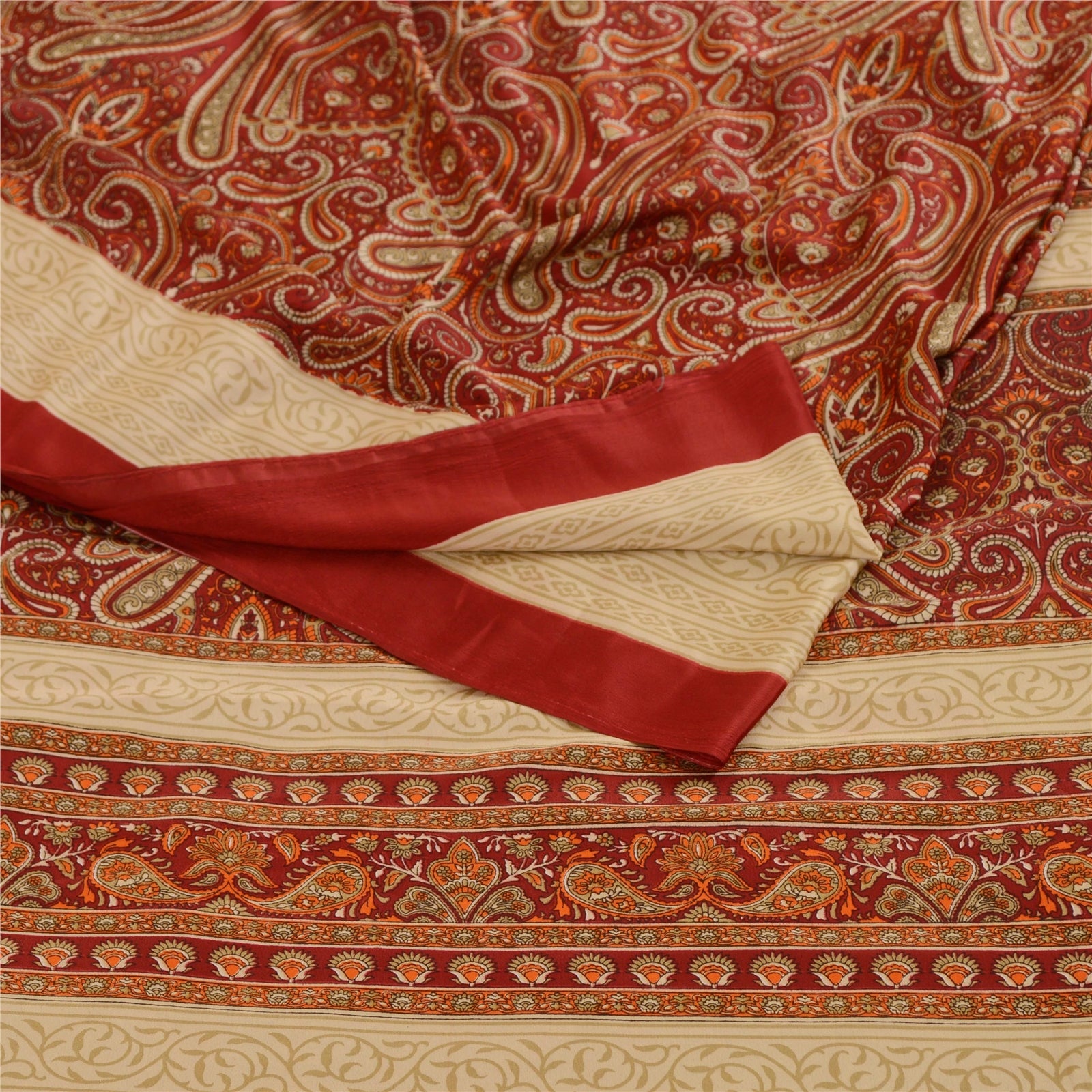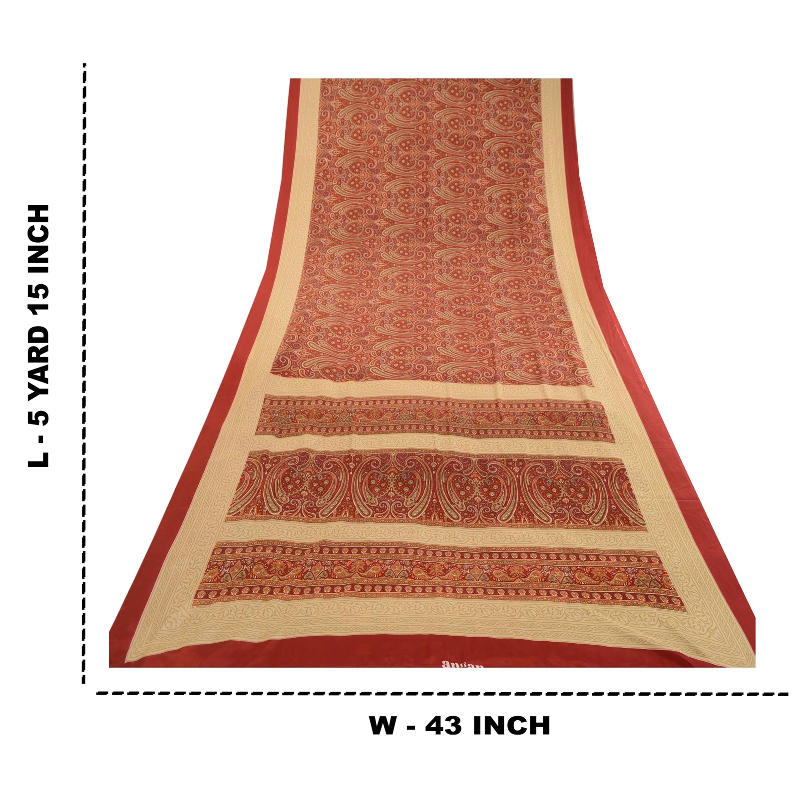 Sanskriti Vintage Sarees Dark Red Printed Moss Crepe Sari Soft 5yd Craft Fabric