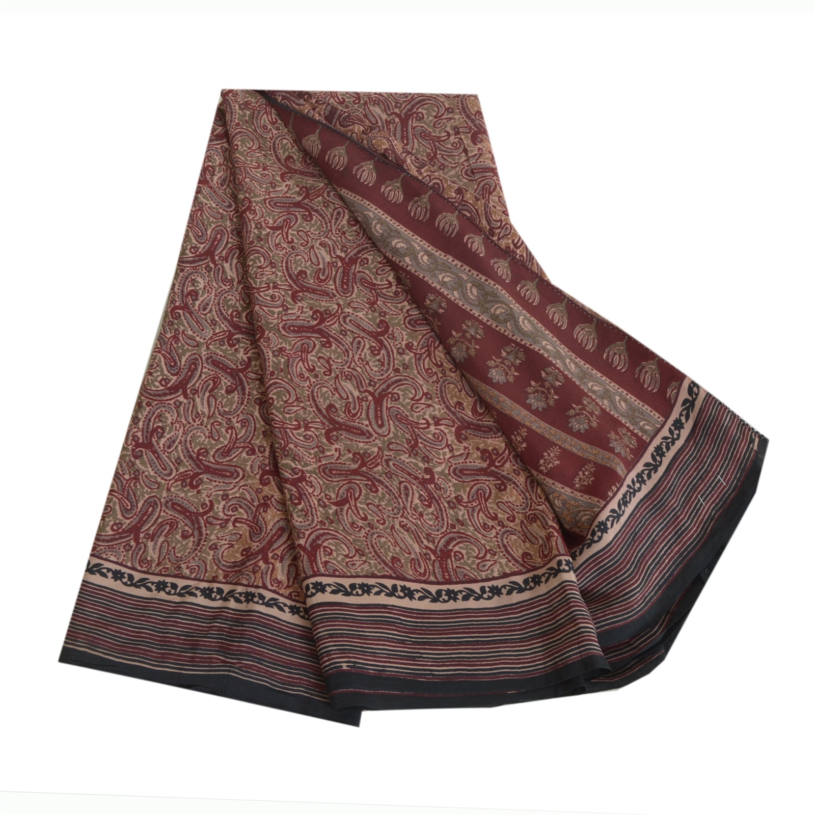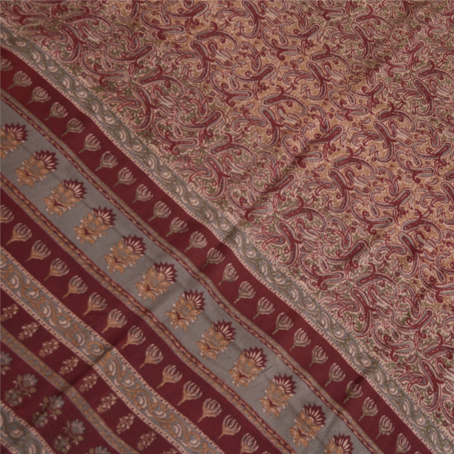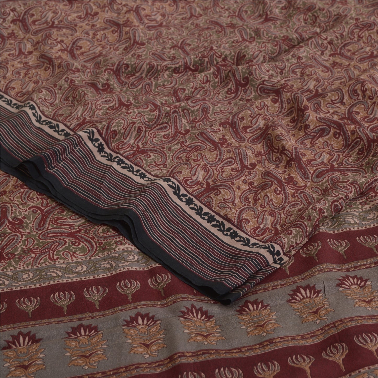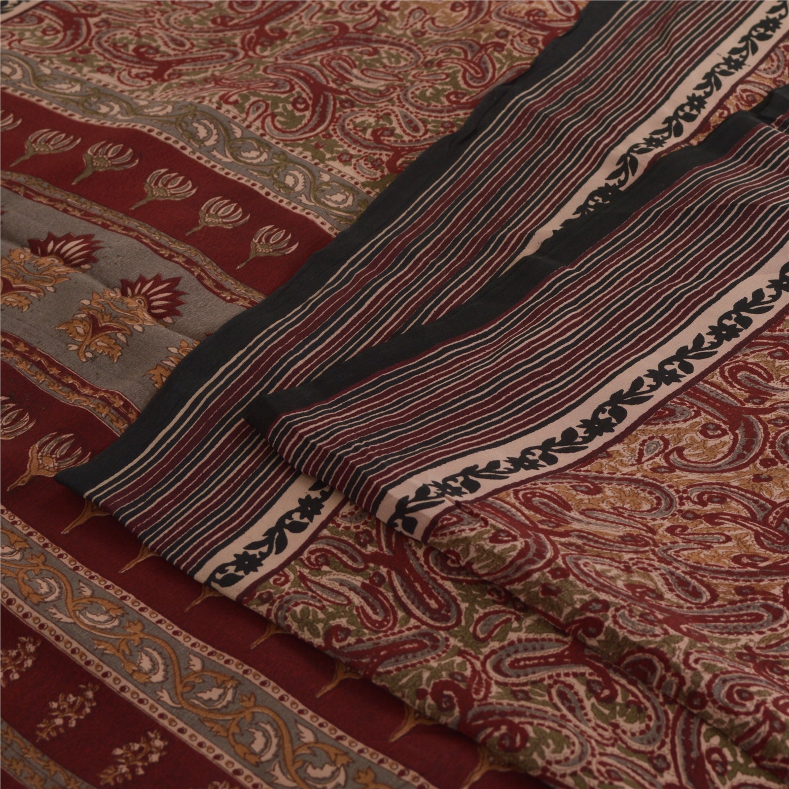 Sanskriti Vintage Sarees Dark Red Pure Crepe Silk Printed Sari 5yd Craft Sustainable Fabric