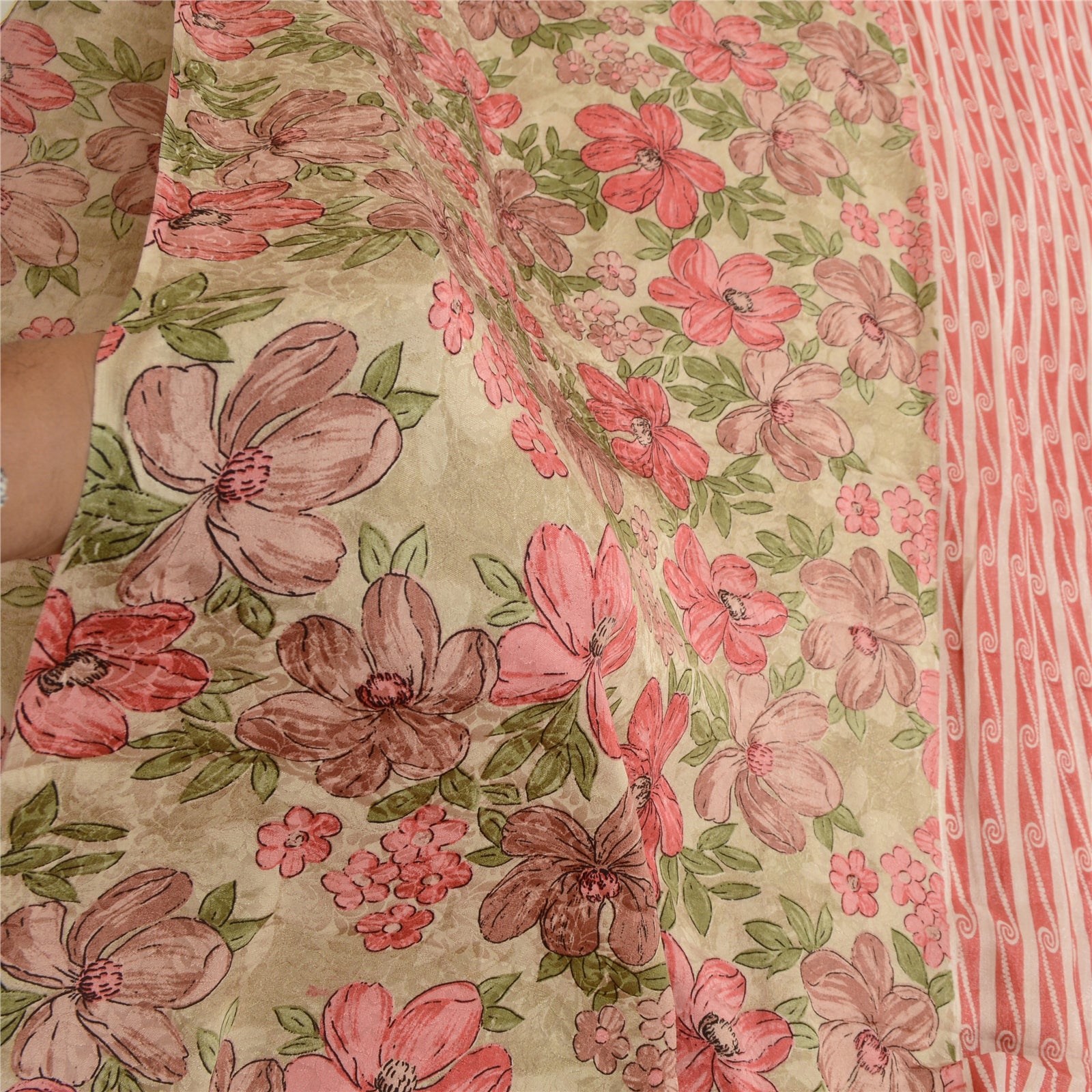 THE ITEM COLOR OR SHADE MAY BE DARKER OR LIGHTER THAN THE PICTURE.' Beautiful dusty-red colored pure georgette silk printed saree. Allover sari has printed floral design. Saree has mild stain on it. What is special about this saree? Brilliant design on soft Sustainable Fabric is really enhancing the beauty of the saree. This unique vintage saree can be used for various crafting ideas even if you don't want to use it as a sari. Design a dress, use it as a as window dressing, upholstery, sarongs, throw, dress making and table linen much more. Let your creative juices flow and use this decorated Sustainable Fabric in multiple fashion. International buyers please note: Import duties, taxes, and charges are not included in the item price or postage cost. These charges are the buyer's responsibility. Please check with your country's customs office to determine what these additional costs will be prior to bidding or buying.Buyer will pay custom duty/tax. It is calculated and charged differently by every country. As a seller I do not have any control over it. VAT or sales tax is calculated by the platform at the time of checkout. Customs charge is payable at the time of delivery.