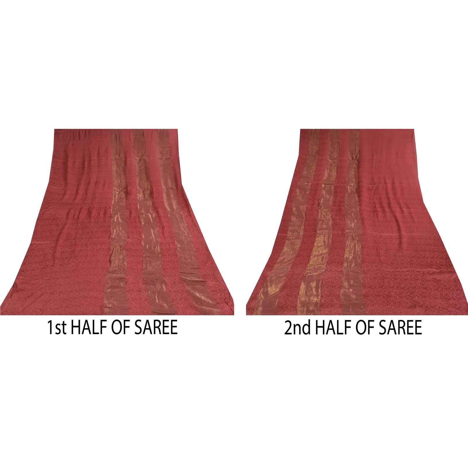 THE ITEM COLOR OR SHADE MAY BE DARKER OR LIGHTER THAN THE PICTURE.' Beautiful dusty red colored pure georgette silk woven saree. Floral design with red woven work allover the saree. Border has lines design with golden woven work. What is special about this saree? Brilliant design on soft Sustainable Fabric is really enhancing the beauty of the saree. This unique vintage saree can be used for various crafting ideas even if you don't want to use it as a sari. Design a dress, use it as a as window dressing, upholstery, sarongs, throw, dress making and table linen much more. Let your creative juices flow and use this decorated Sustainable Fabric in multiple fashion. International buyers please note: Import duties, taxes, and charges are not included in the item price or postage cost. These charges are the buyer's responsibility. Please check with your country's customs office to determine what these additional costs will be prior to bidding or buying.Buyer will pay custom duty/tax. It is calculated and charged differently by every country. As a seller I do not have any control over it. VAT or sales tax is calculated by the platform at the time of checkout. Customs charge is payable at the time of delivery. prg-14390
