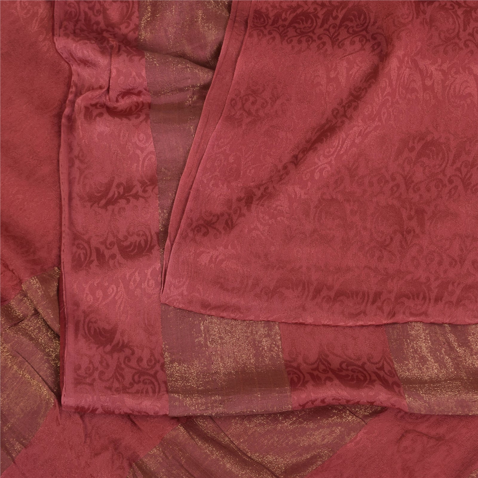 Sanskriti Vintage Sarees Dusty Red Woven Pure Georgette Sari 5+yd Craft Sustainable Fabric
