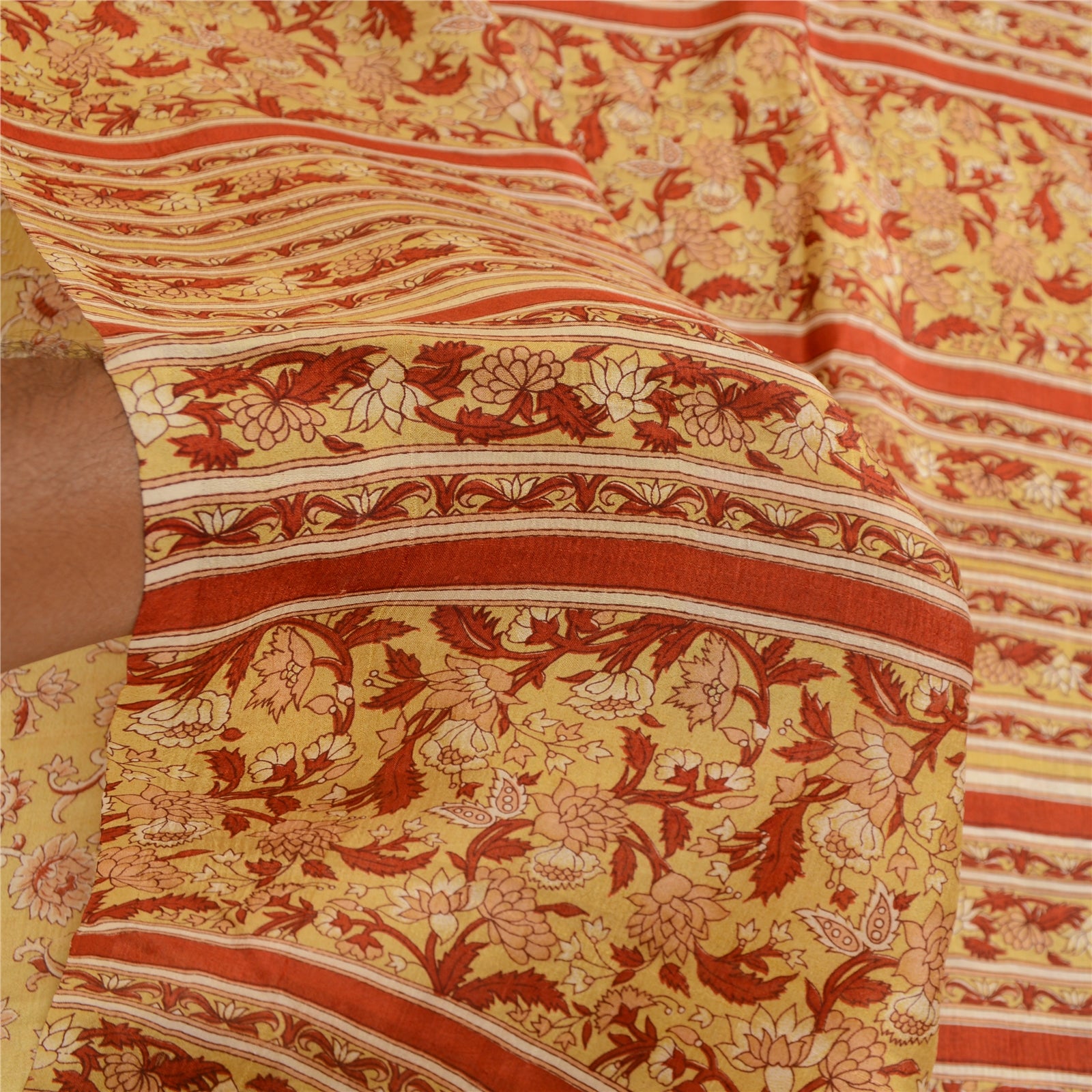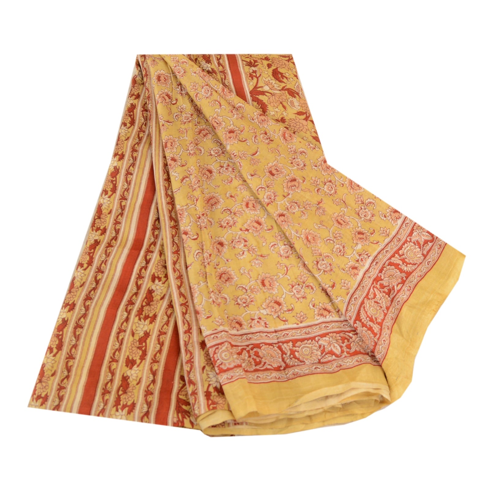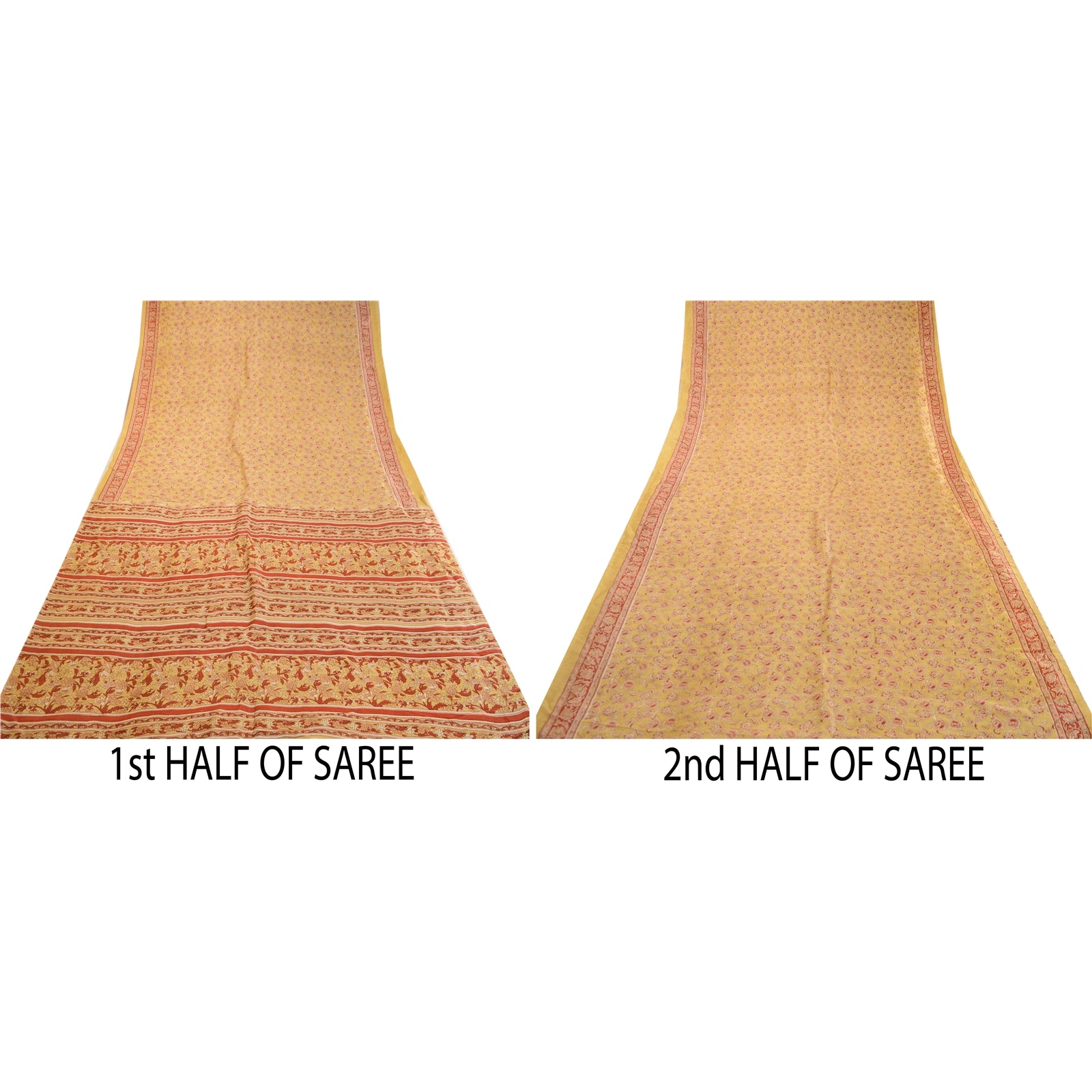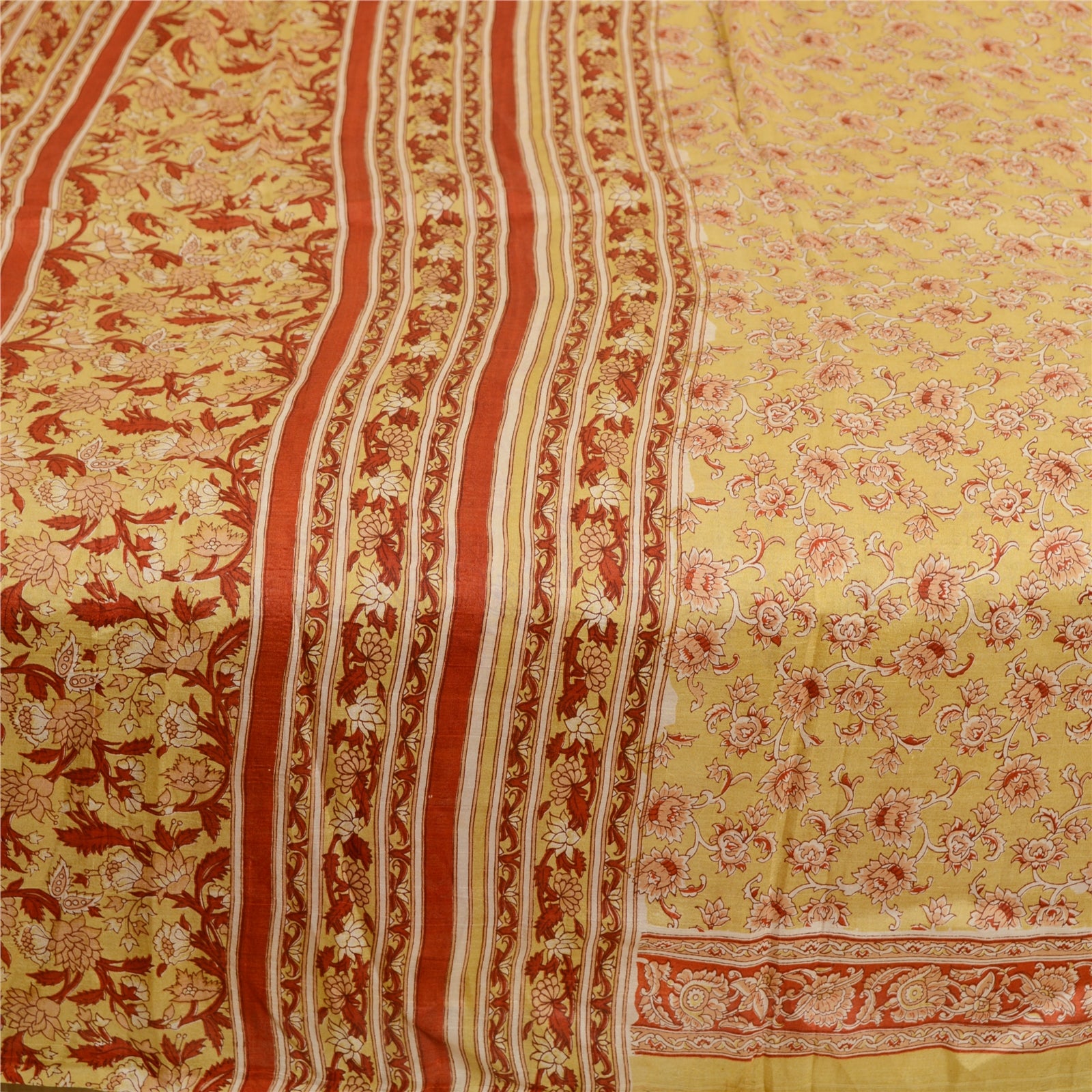 Sanskriti Vintage Sarees From India Beige Printed Pure Silk Sari Craft Sustainable Fabric