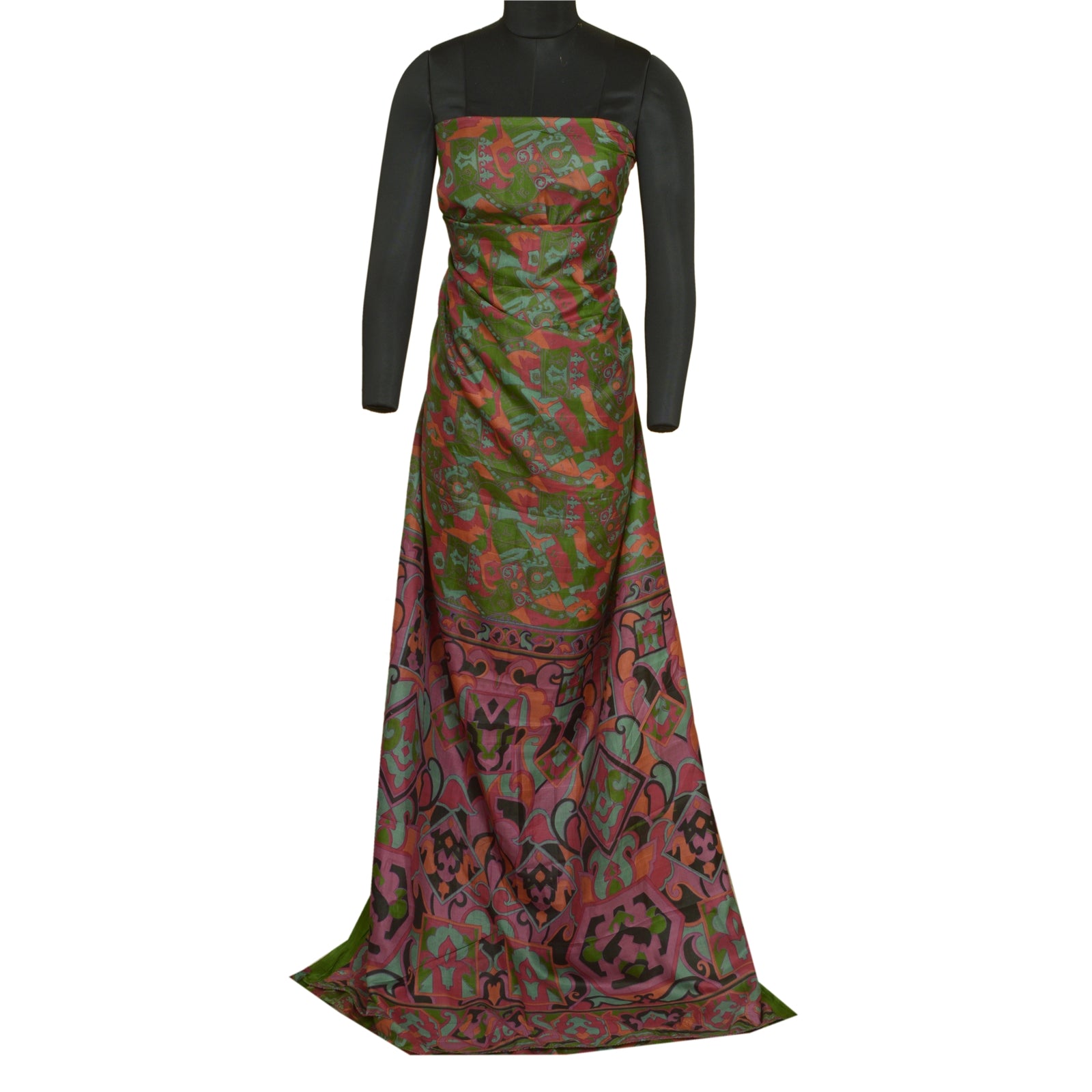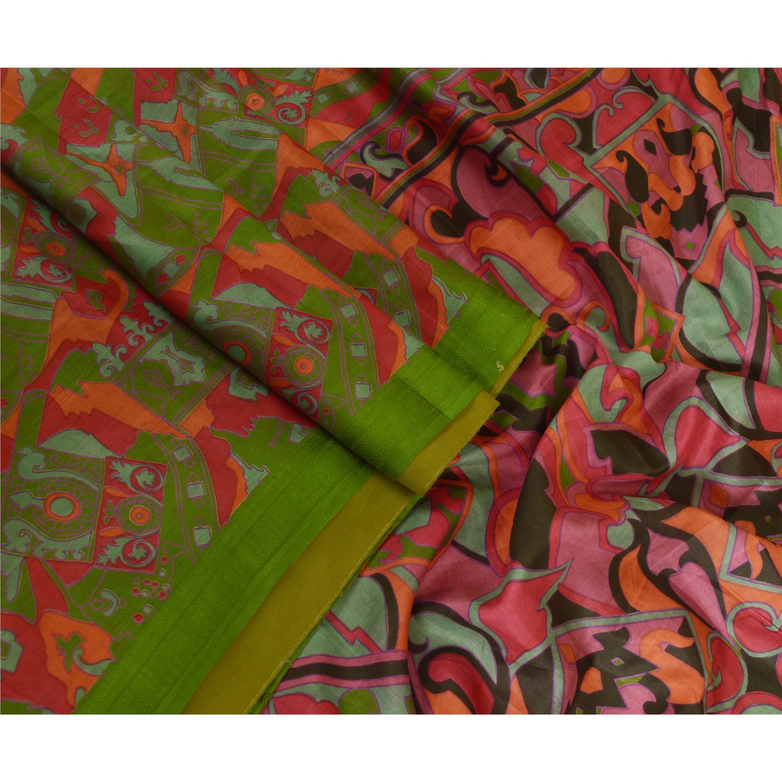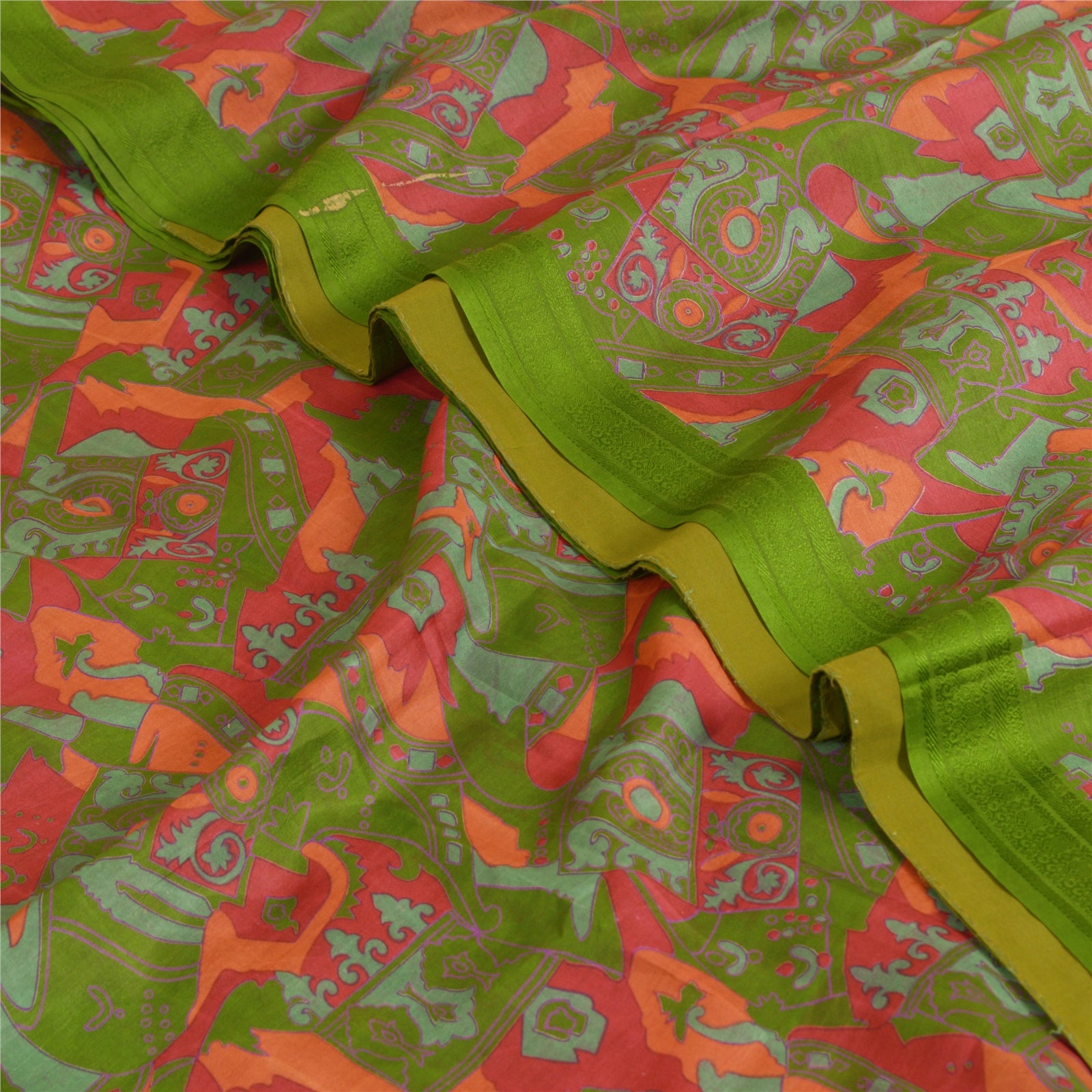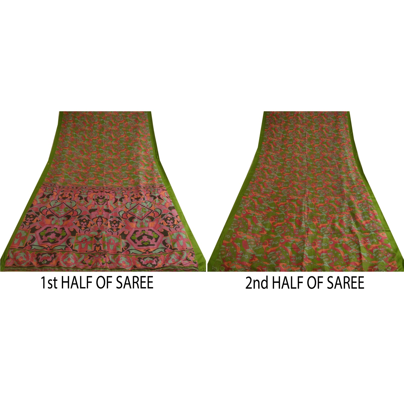 Sanskriti Vintage Sarees From India Green Pure Silk Print Sari 6yd Craft Sustainable Fabric