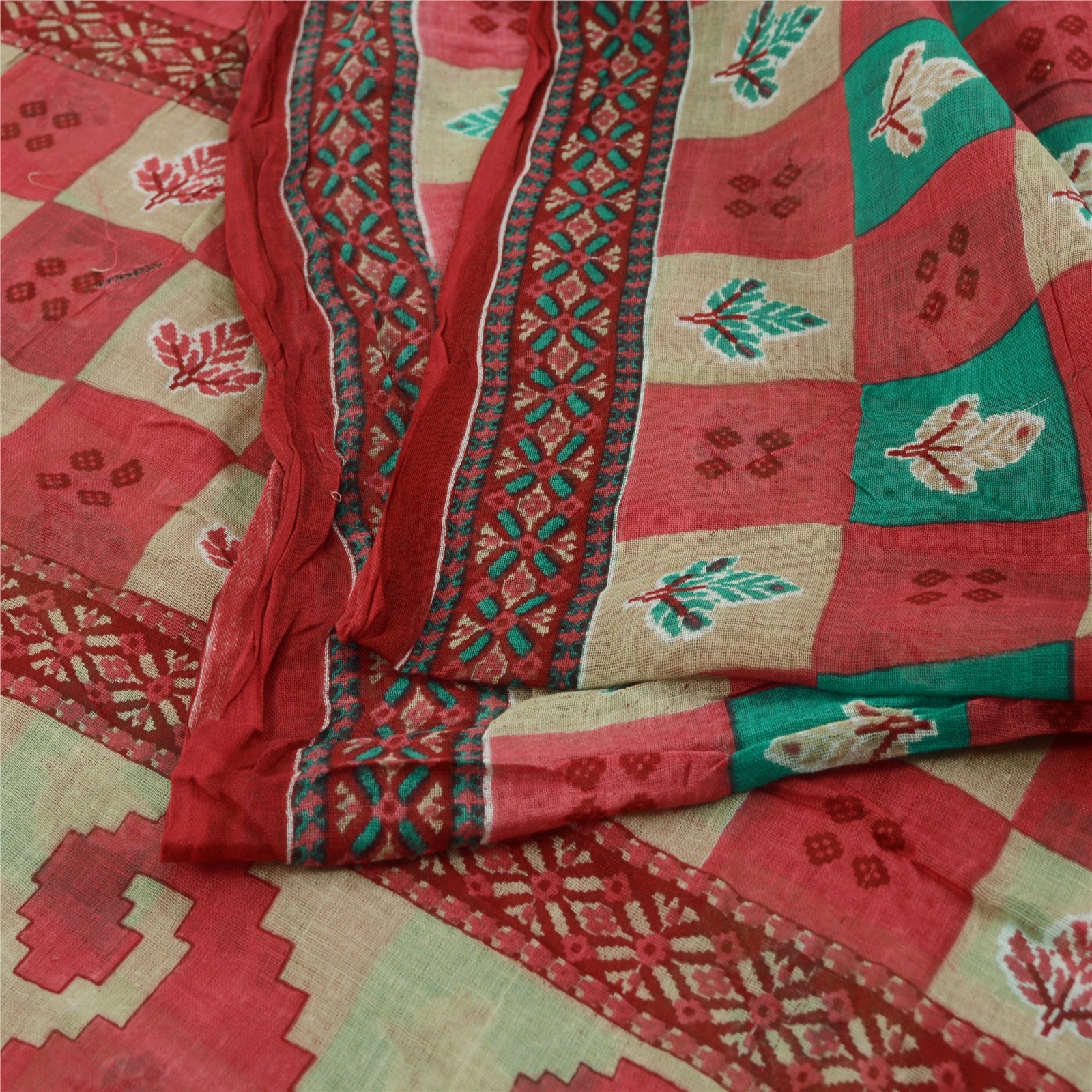Sanskriti Vintage Sarees From India Red Pure Cotton Print Sari 5yd Craft Sustainable Fabric