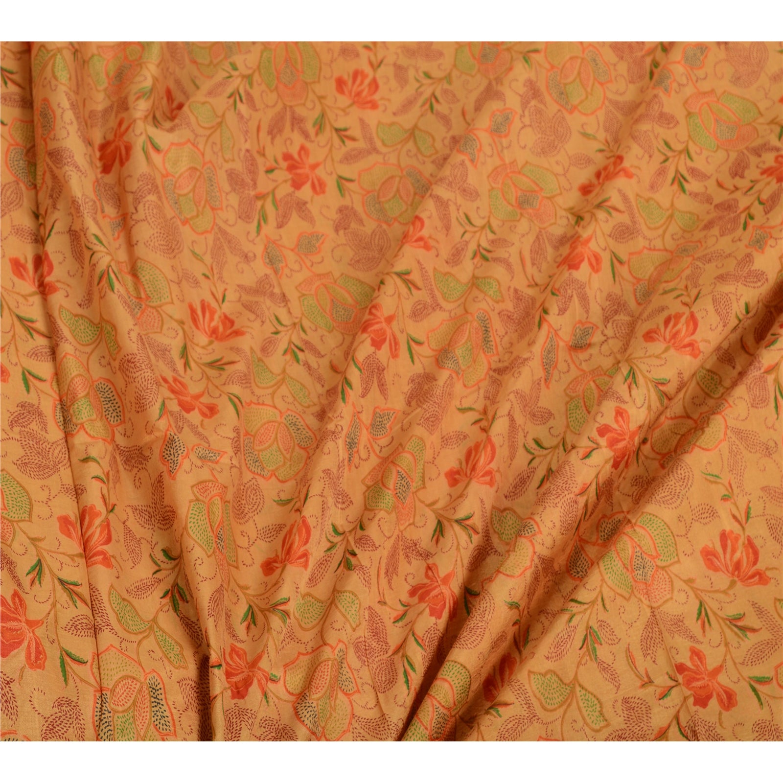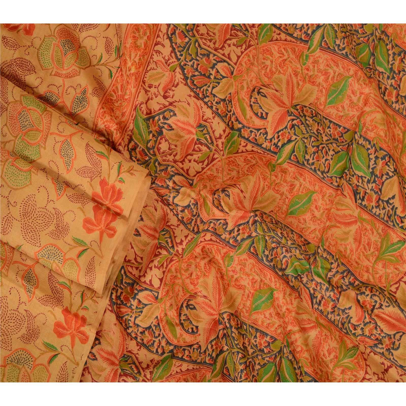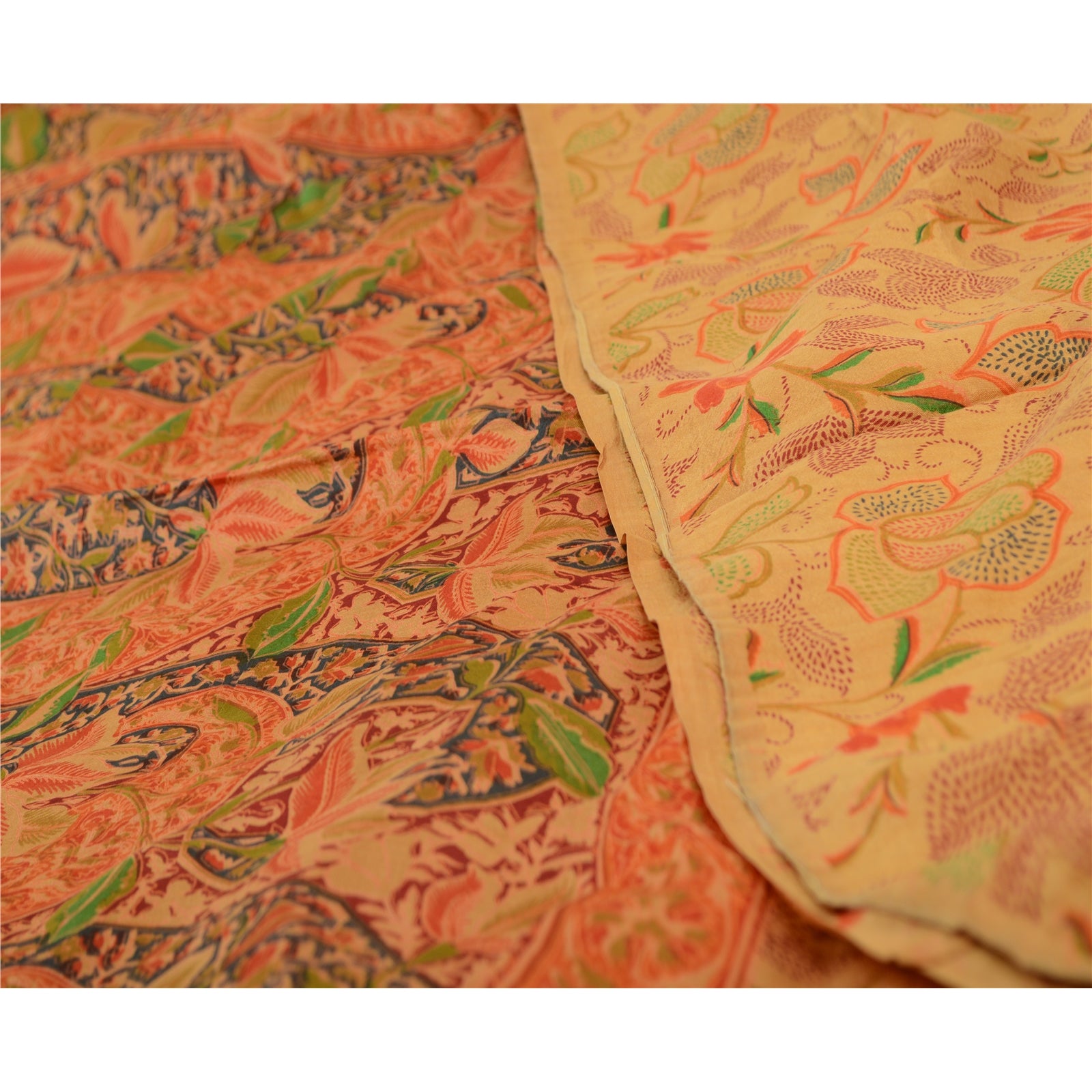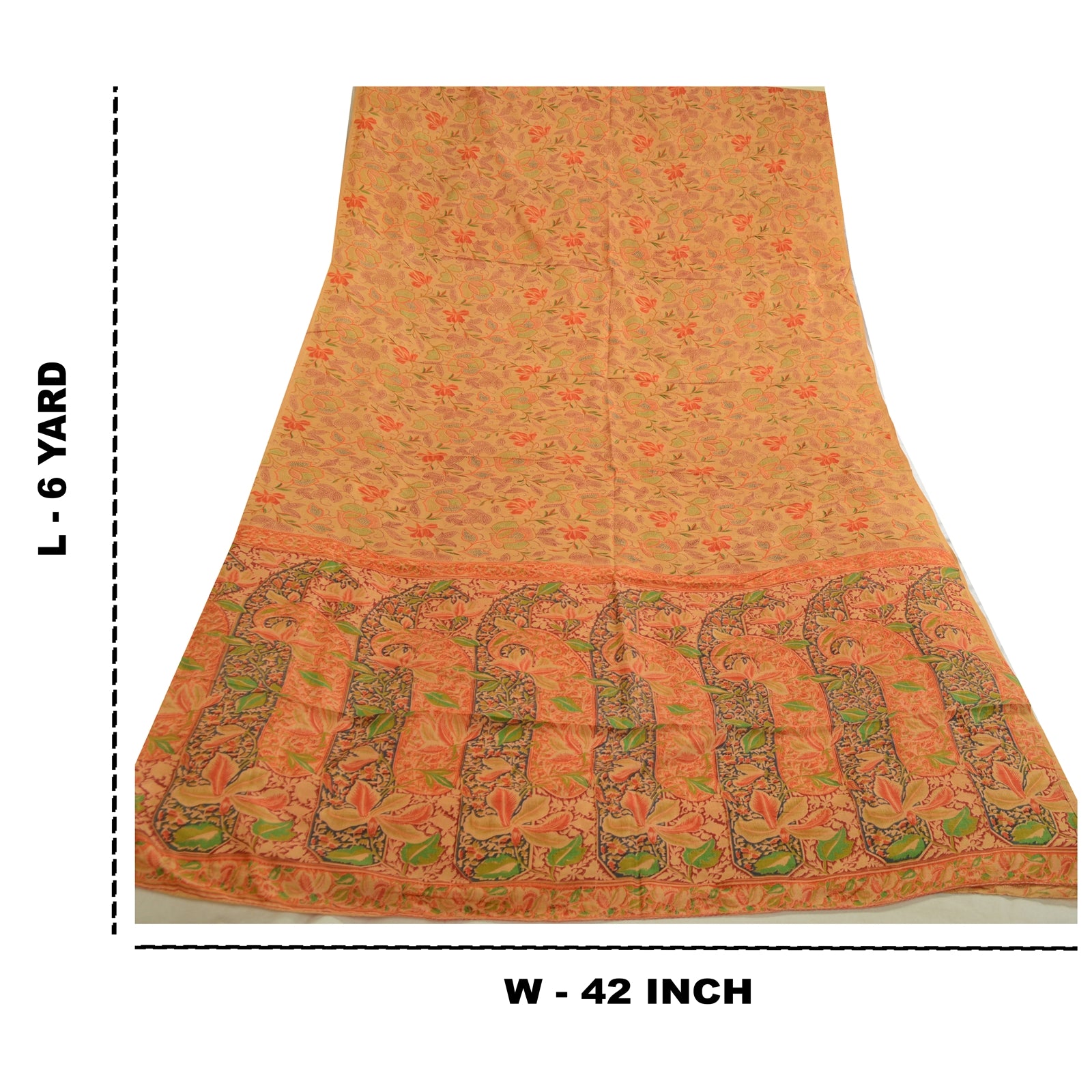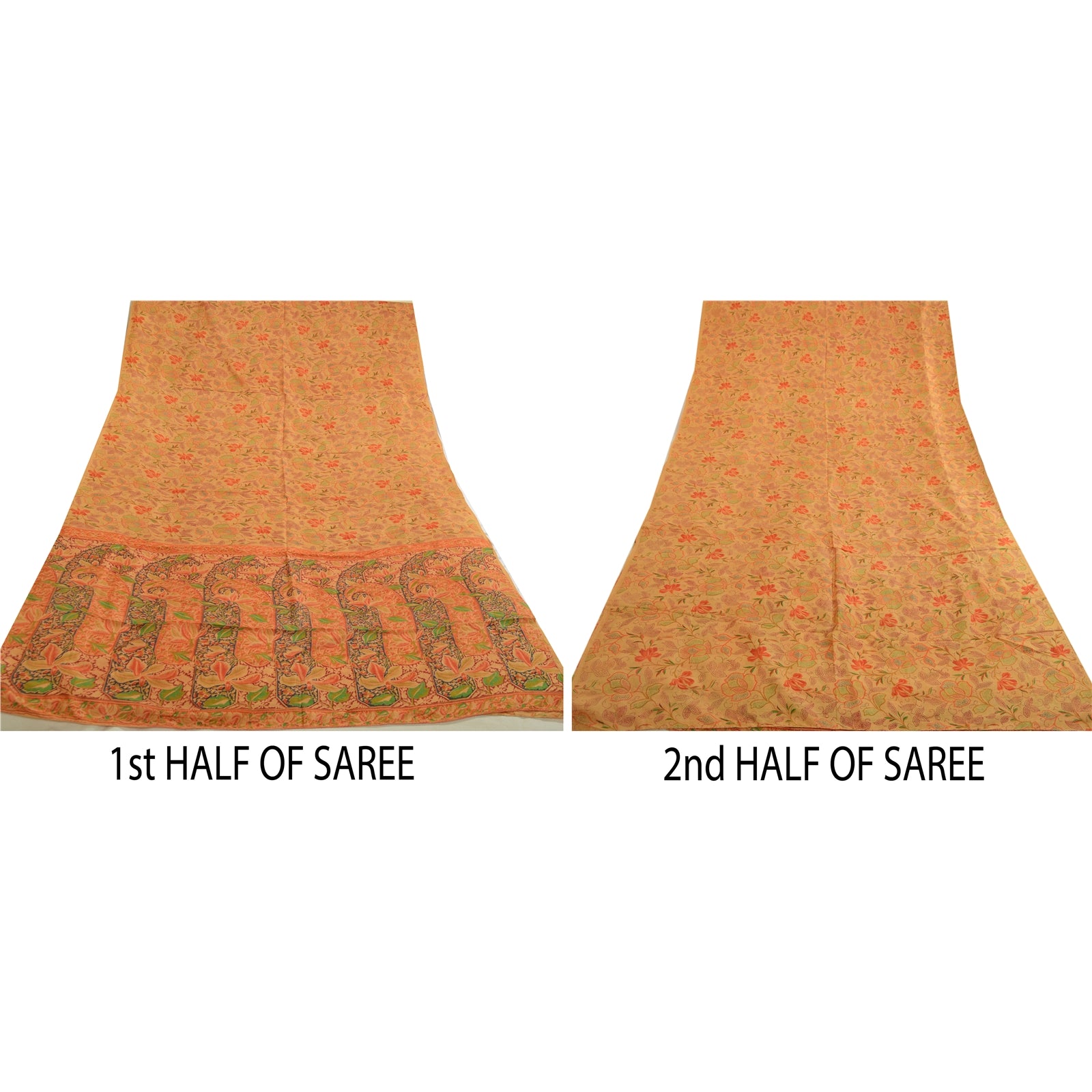 Sanskriti Vintage Sarees From India Saffron Pure Silk Printed Sari Craft Sustainable Fabric