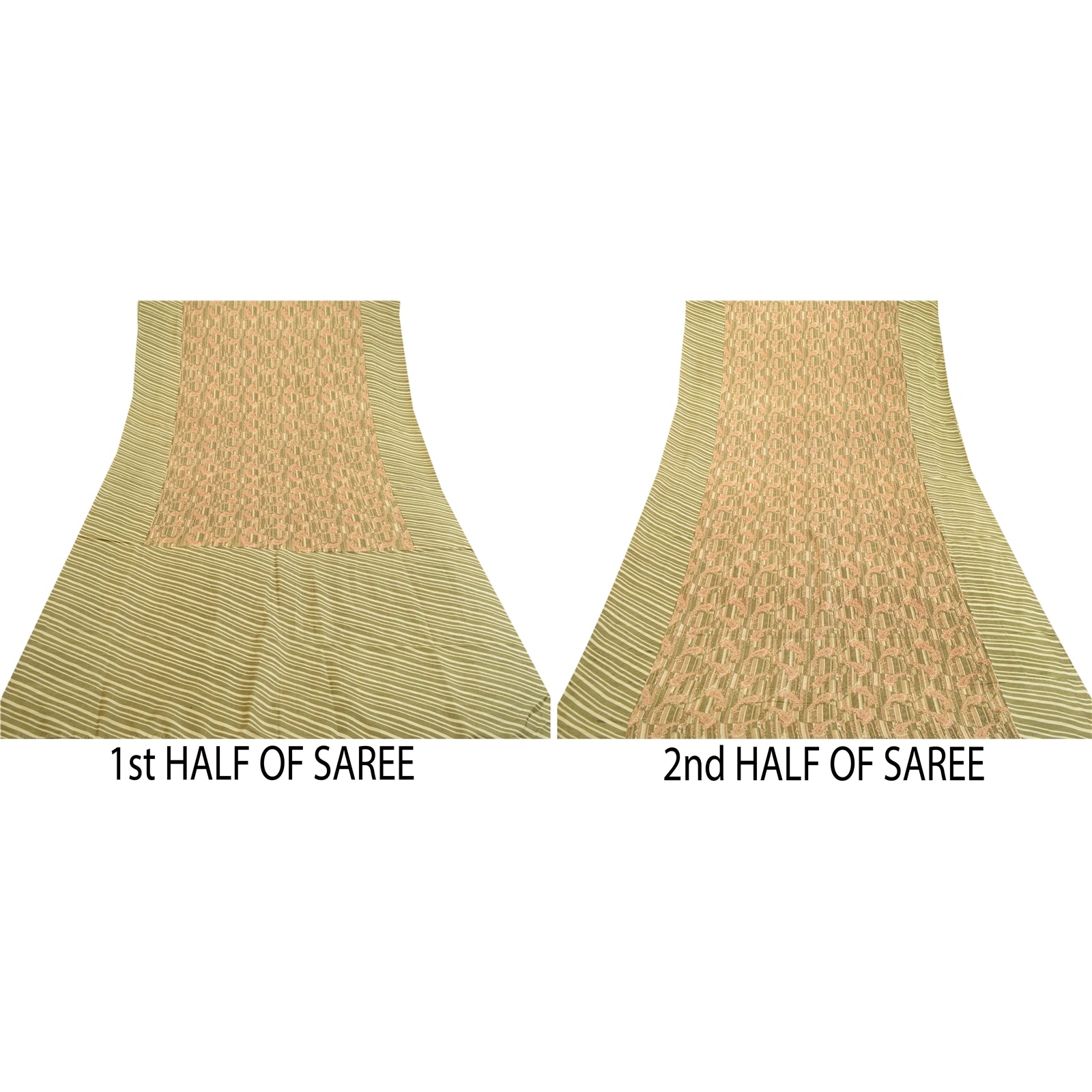 Sanskriti Vintage Sarees From Indian Green Pure Silk Printed Sari Craft Sustainable Fabric