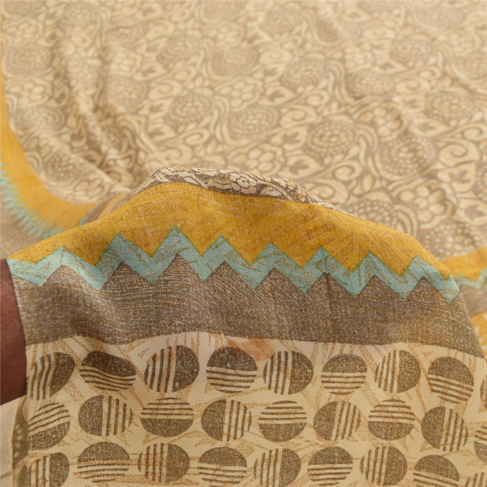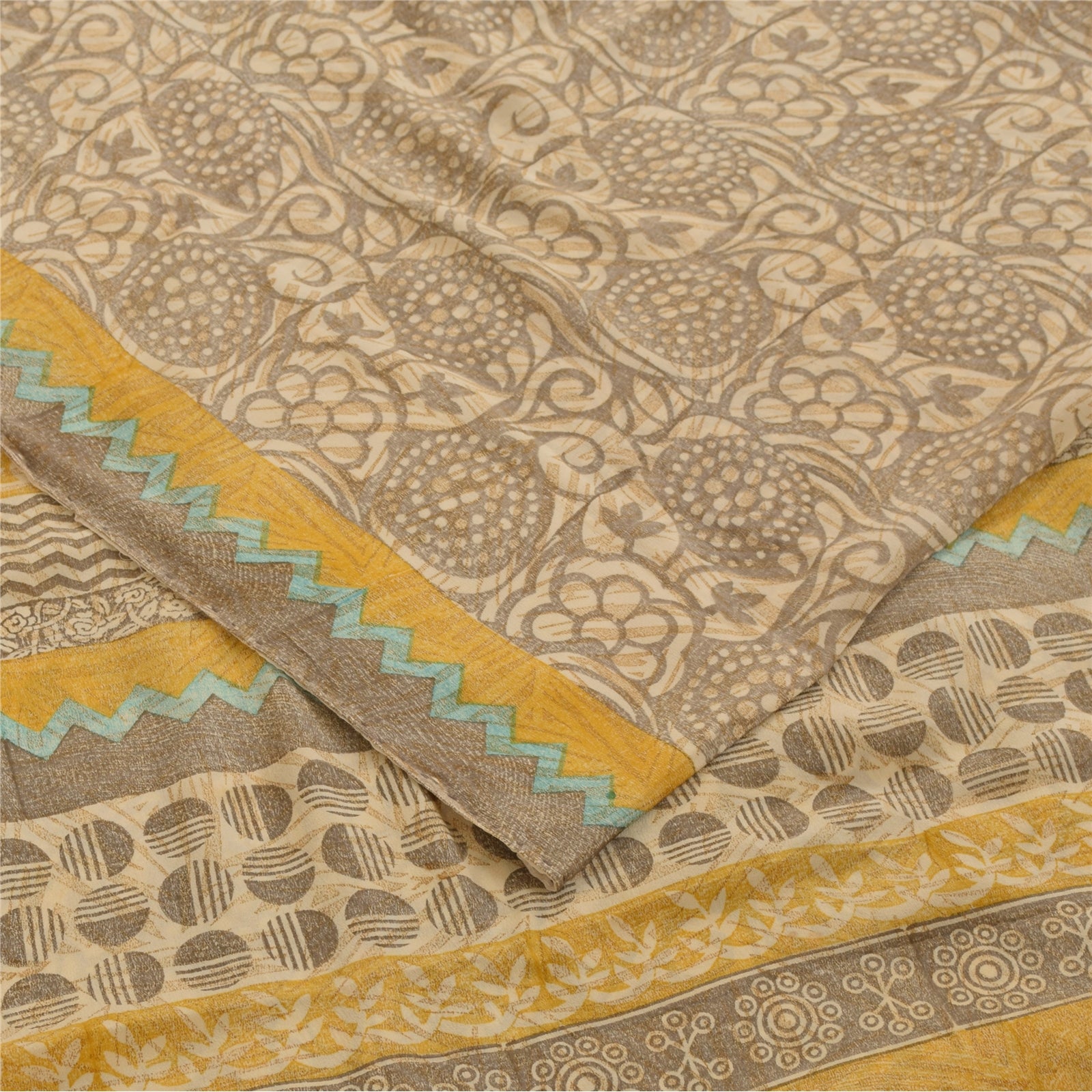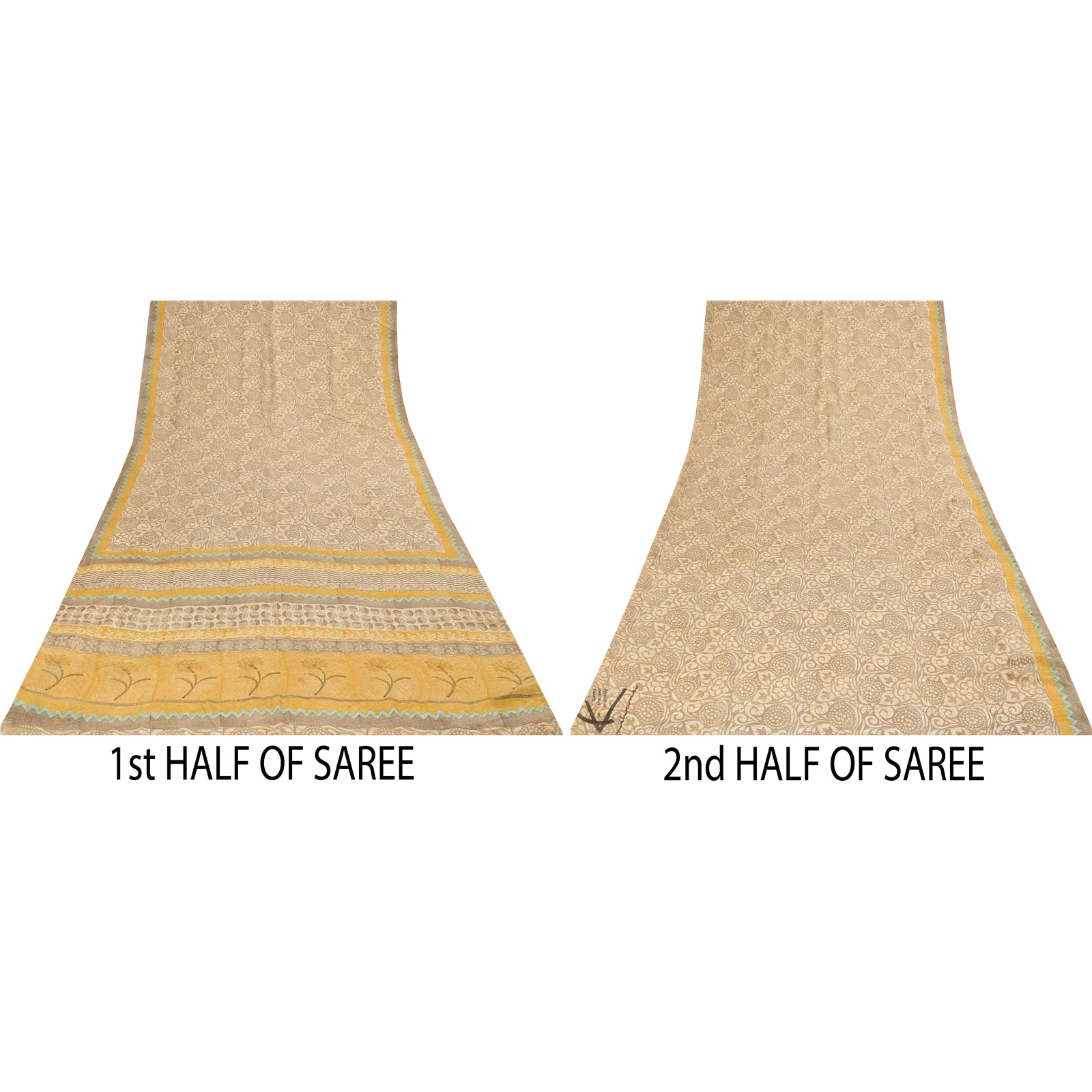 Sanskriti Vintage Sarees Gray 100%Pure Crepe Silk Printed Sari 5+yd Craft Fabric