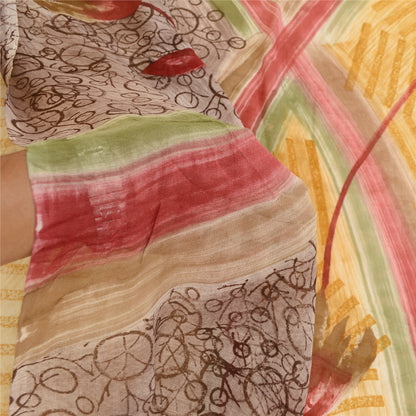 Sanskriti Vintage Sarees Gray Blend Georgette Printed Sari 5yd Soft Craft Sustainable Fabric