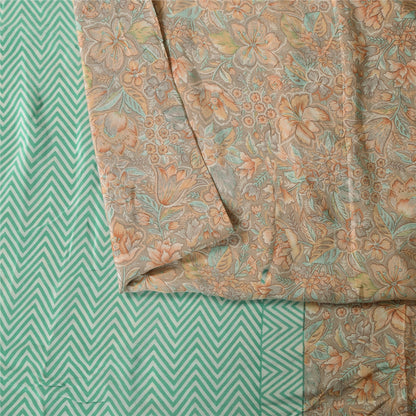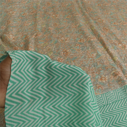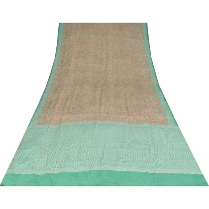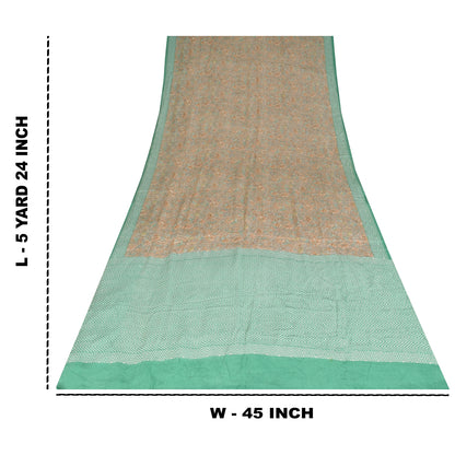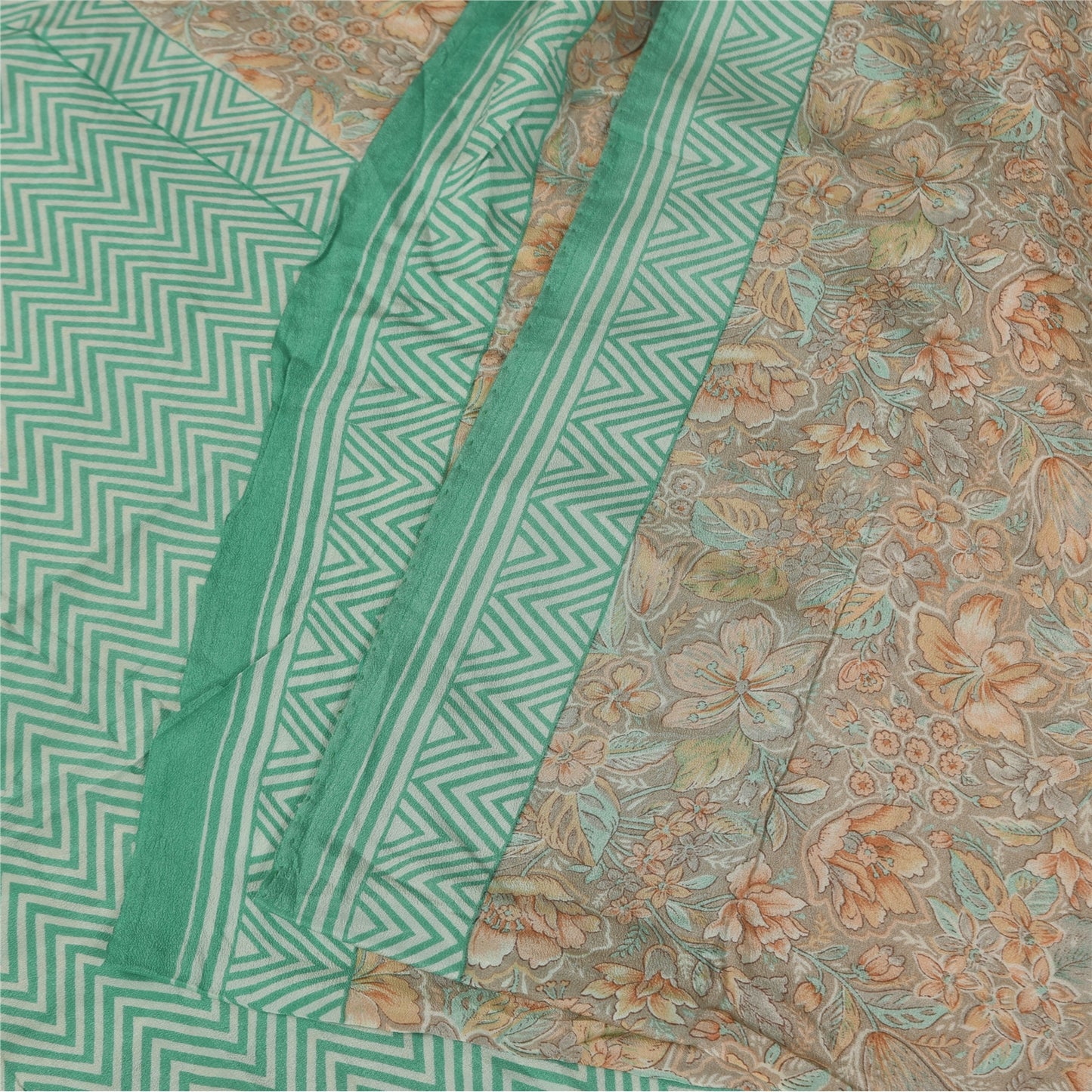 Sanskriti Vintage Sarees Gray & Green Pure Crepe Printed Sari 5+yd Craft Sustainable Fabric