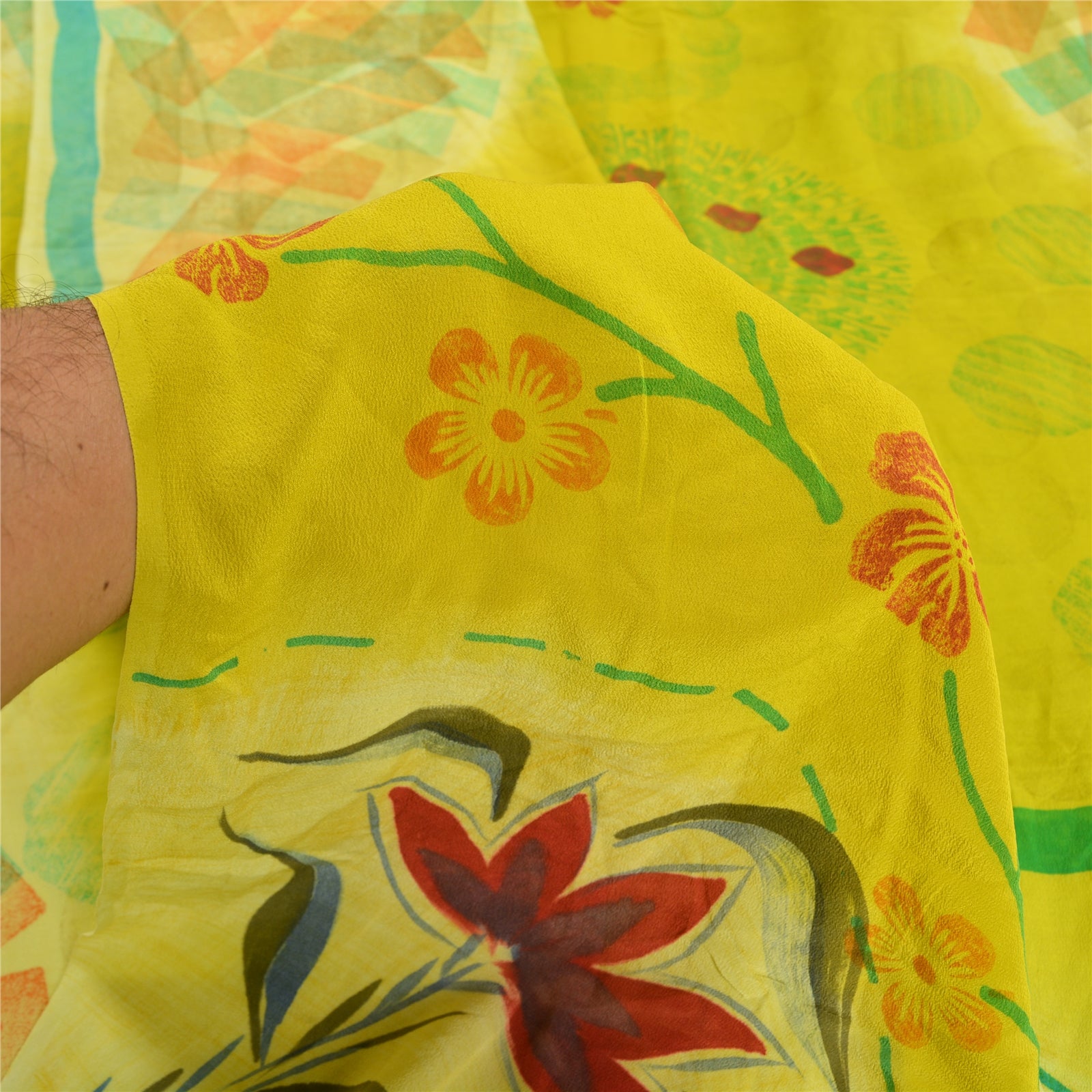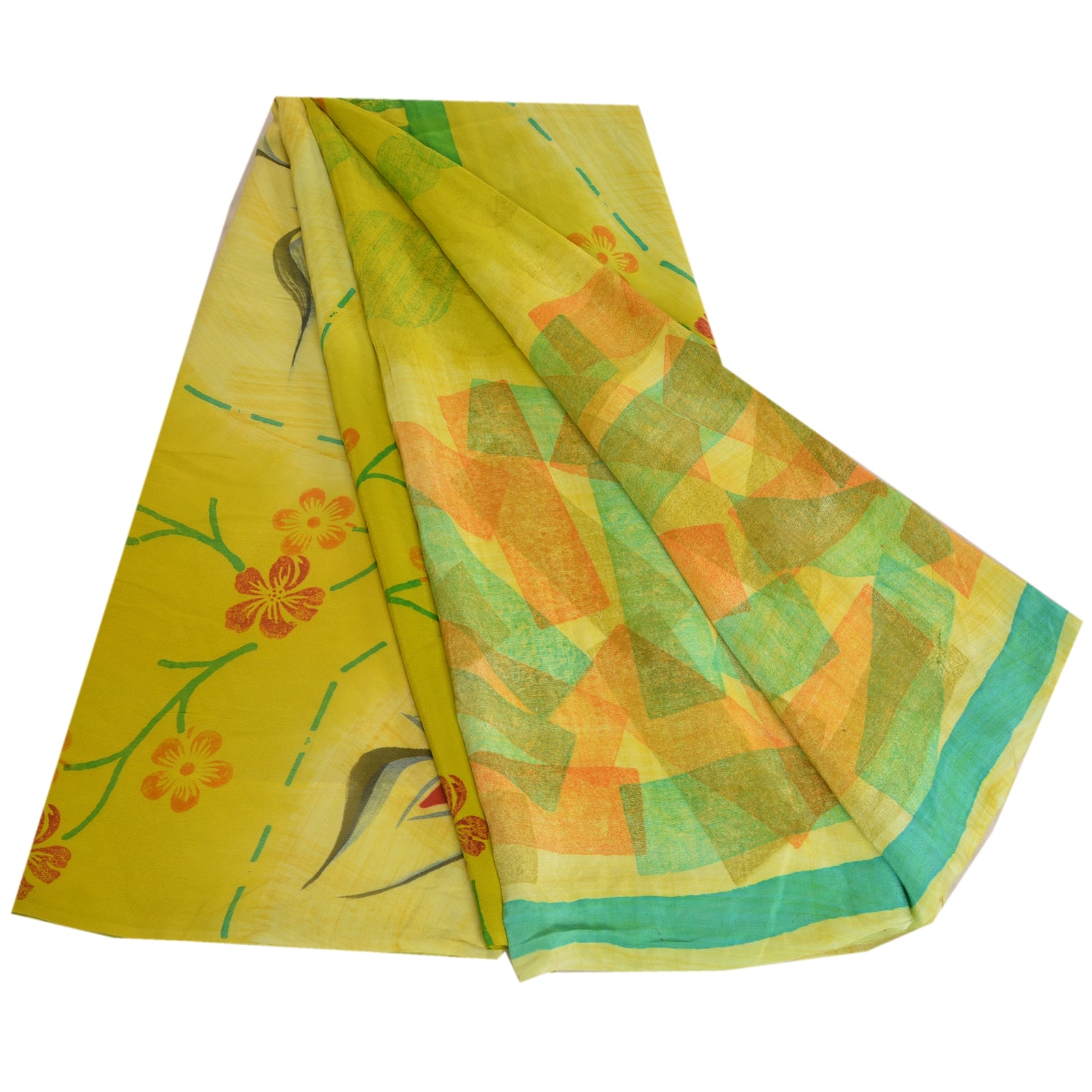 Sanskriti Vintage Sarees Green 100% Pure Crepe Silk Printed Sari Craft Sustainable Fabric