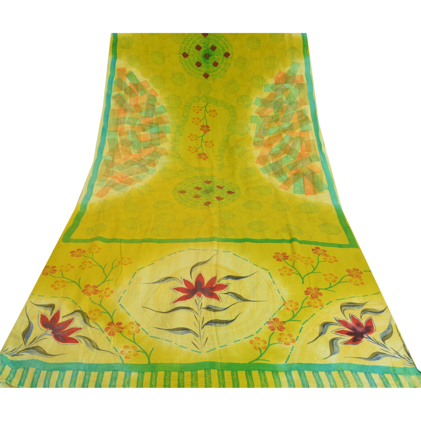 THE ITEM COLOR OR SHADE MAY BE DARKER OR LIGHTER THAN THE PICTURE.' Beautiful green colored pure crepe silk printed saree. Pallu & border has printed floral design. Similar design in center part of saree. Saree has mild stain on it. What is special about this saree? Fabulous design is really enhancing the beauty of the saree. This unique vintage saree can be used for various crafting ideas even if you don't want to use it as a sari. Design a dress, use it as window,dressing, upholstery, sarongs, throw, dress making and table linen much more. Let your creative juices flow and use this decorated Sustainable Fabric in multiple fashion. International buyers please note: Import duties, taxes, and charges are not included in the item price or postage cost. These charges are the buyer's responsibility. Please check with your country's customs office to determine what these additional costs will be prior to bidding or buying.Buyer will pay custom duty/tax. It is calculated and charged differently by every country. As a seller I do not have any control over it.VAT or sales tax is calculated by the platform at the time of checkout. Customs charge is payable at the time of delivery.