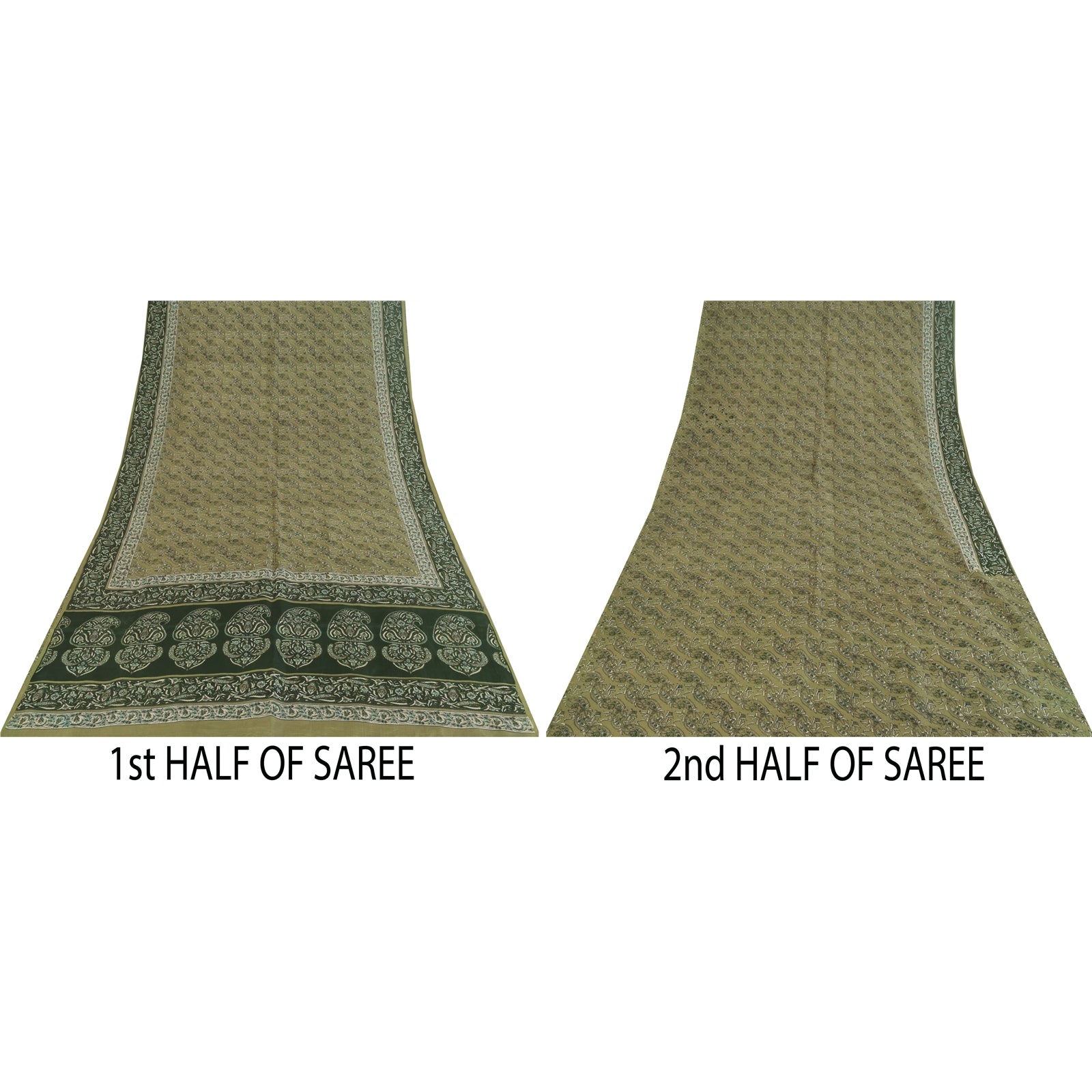 Sanskriti Vintage Sarees Green 100% Pure Silk Printed Sari 6yd Craft Fabric