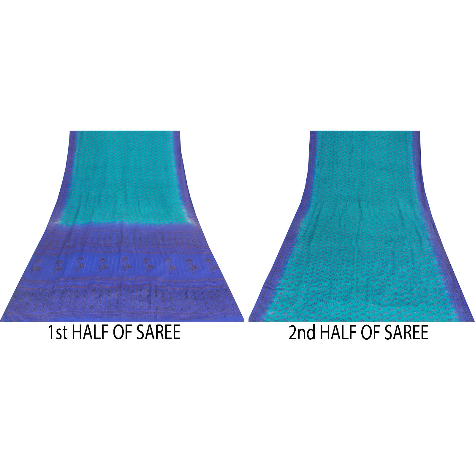Beautiful green & blue colored pure crepe silk printed saree with floral design on pallu and border & similar work in center part.. Versatile Uses-Crafting, Repurpose, Creative Sewing Project, Dressmaking, Kaftans, Use It As A Sari, Window Dressing, Upcycling, Sarongs, Throw,Table Linen,Decorative Fabric, Sustainable Indian Fabric. THE ITEM COLOR OR SHADE MAY BE DARKER OR LIGHTER THAN THE PICTURE.' International buyers please note: Import duties, taxes, and charges are not included in the item price or postage cost. Buyer will pay custom duty/tax,VAT, and any applicable charges at the time of delivery. PRC-23948