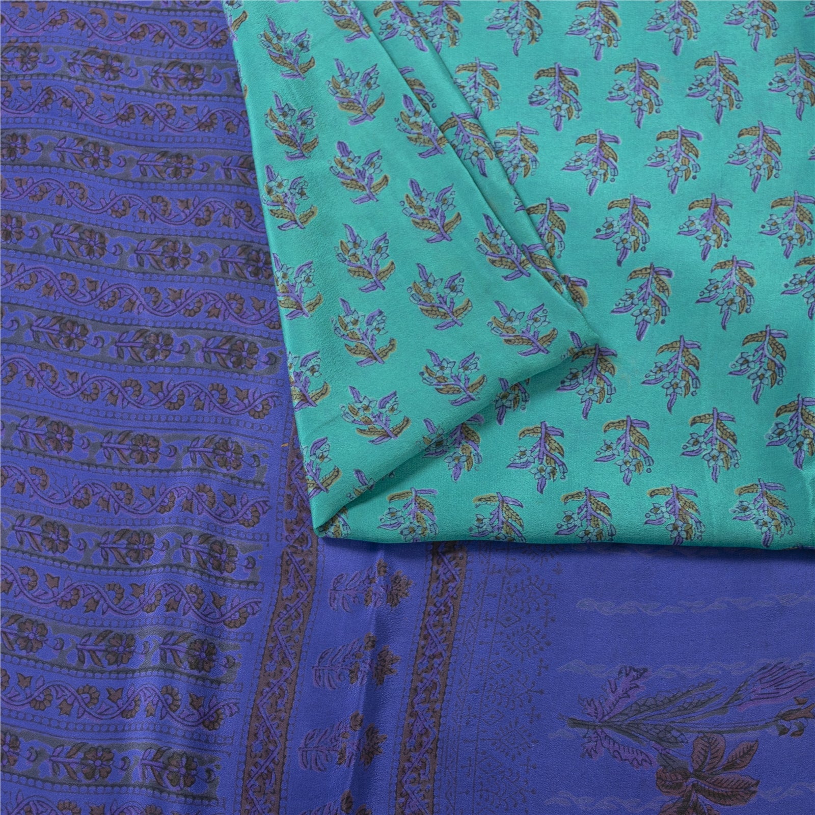 Sanskriti Vintage Sarees Green & Blue 100% Pure Crepe Floral Printed 5+YD Sari