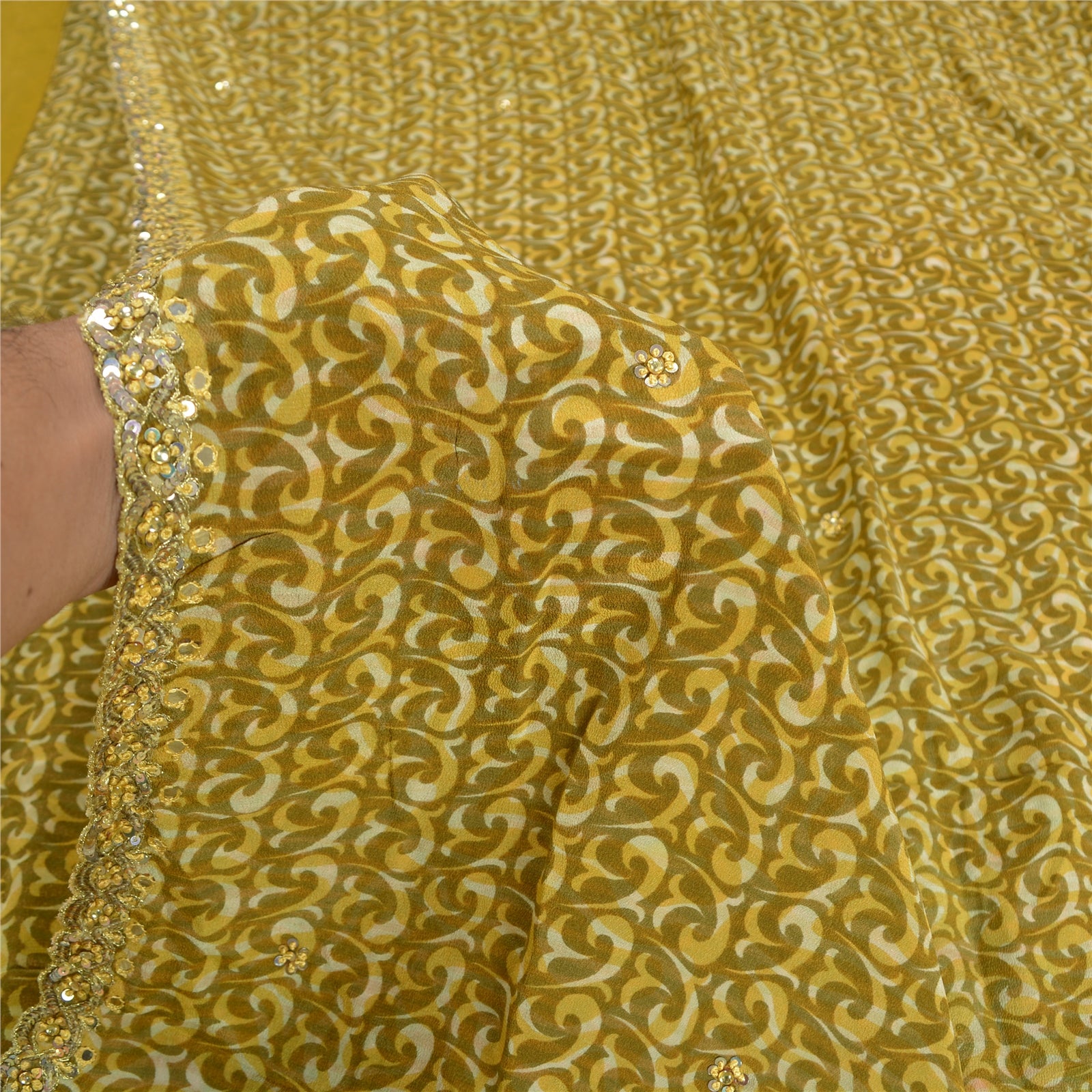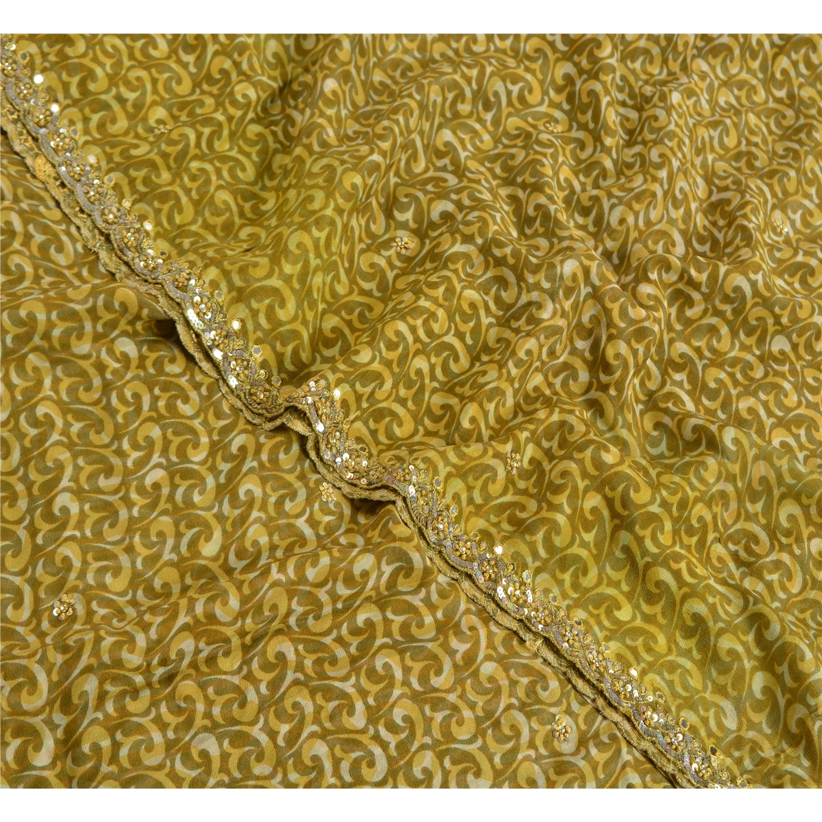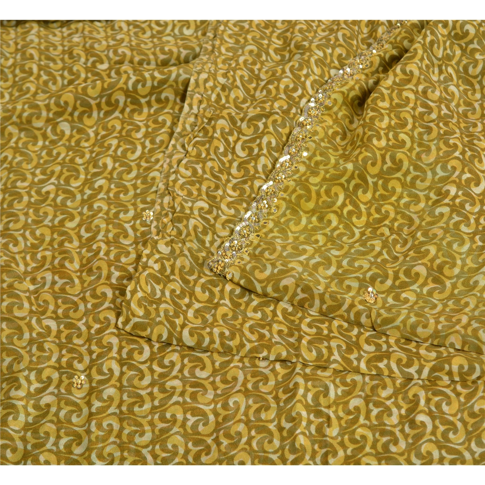THE ITEM COLOR OR SHADE MAY BE DARKER OR LIGHTER THAN THE PICTURE.' Beautiful green colored pure crepe silk printed & hand embroidered saree. Border has printed floral design with zari, sequins, rhinestone, mirror work. Similar work in center part of saree. What is special about this saree? Fabulous design is really enhancing the beauty of the saree. This unique vintage saree can be used for various crafting ideas even if you don't want to use it as a sari. Design a dress, use it as window,dressing, upholstery, sarongs, throw, dress making and table linen much more. Let your creative juices flow and use this decorated Sustainable Fabric in multiple fashion. International buyers please note: Import duties, taxes, and charges are not included in the item price or postage cost. These charges are the buyer's responsibility. Please check with your country's customs office to determine what these additional costs will be prior to bidding or buying.Buyer will pay custom duty/tax. It is calculated and charged differently by every country. As a seller I do not have any control over it.VAT or sales tax is calculated by the platform at the time of checkout. Customs charge is payable at the time of delivery.