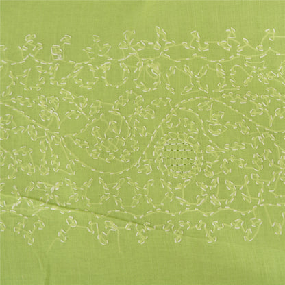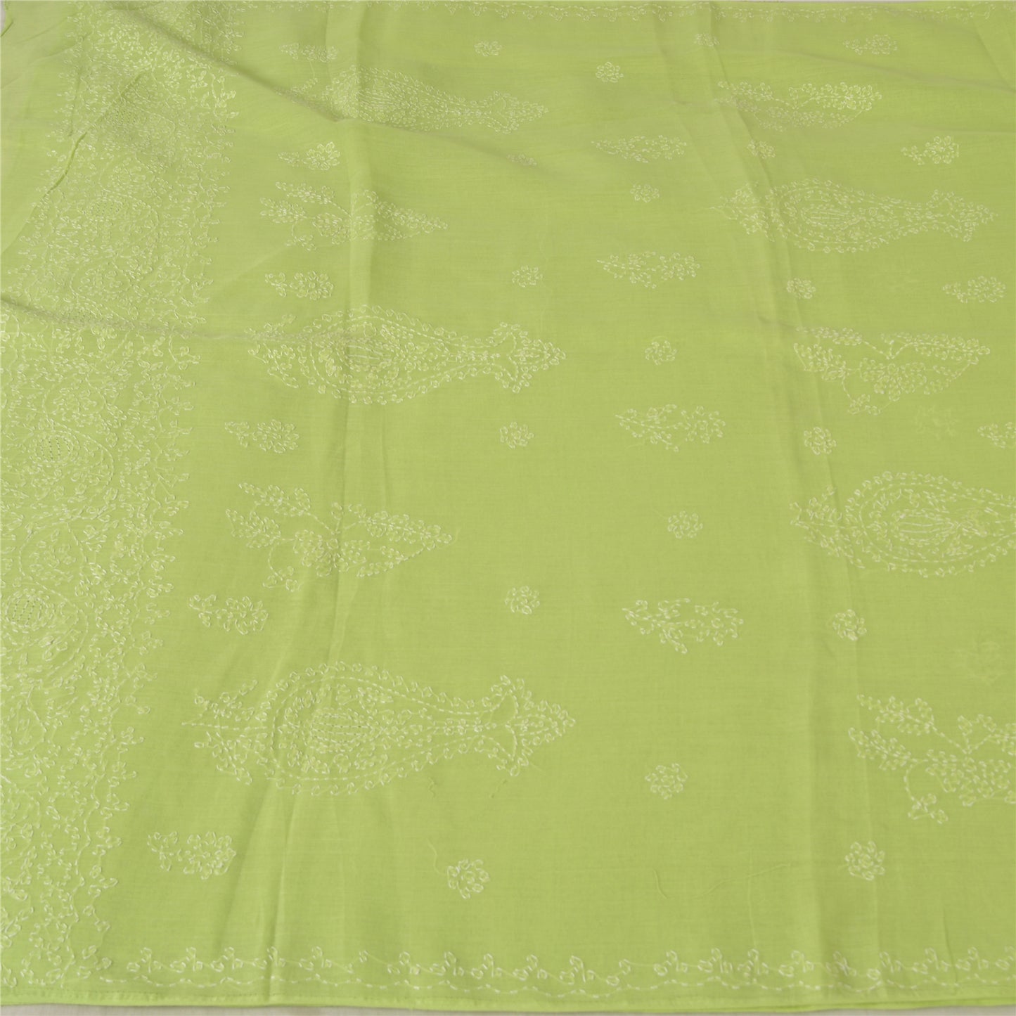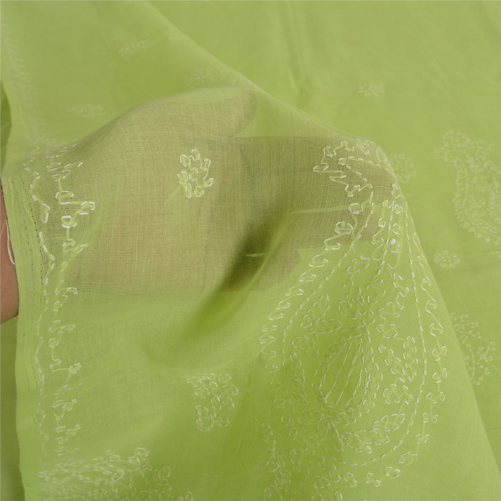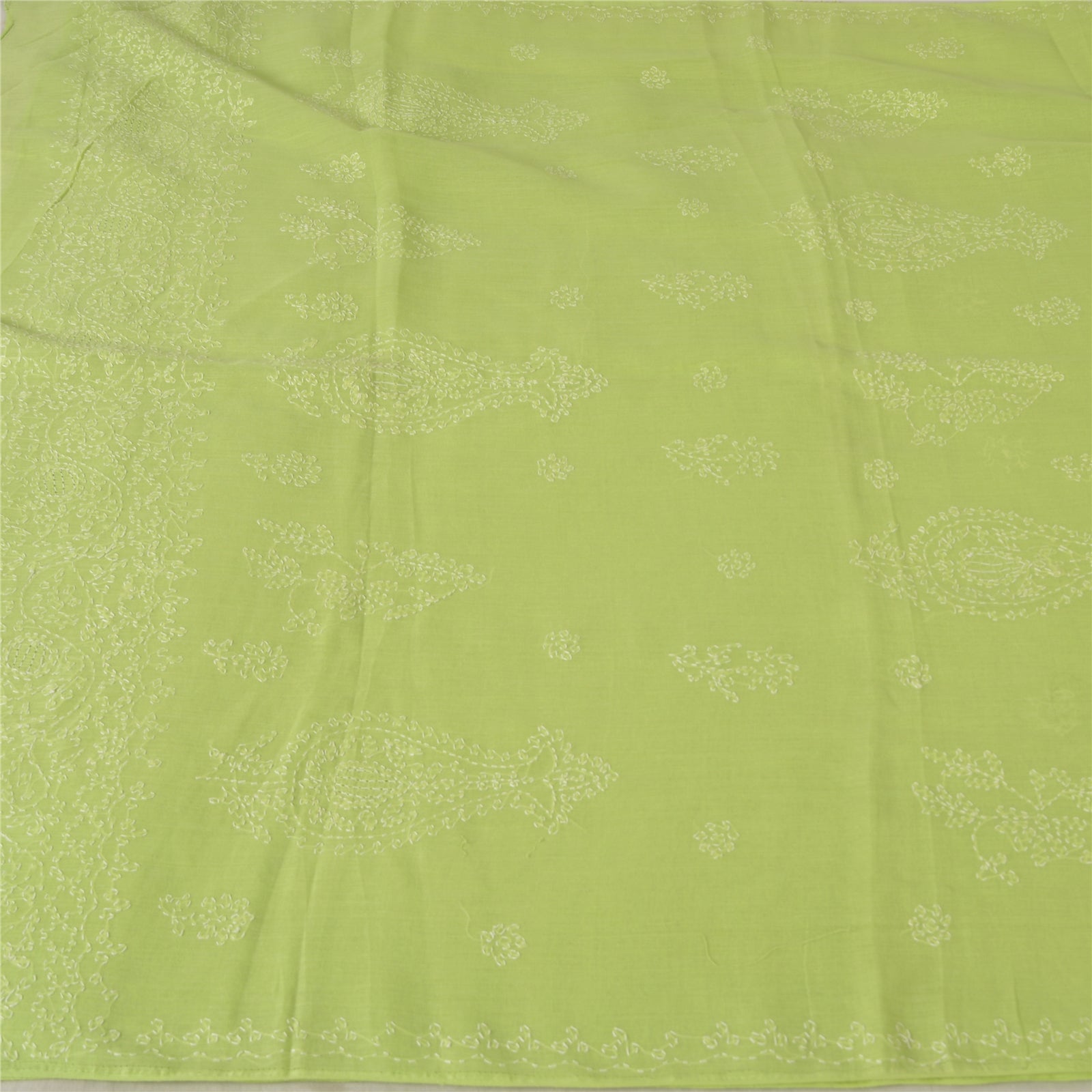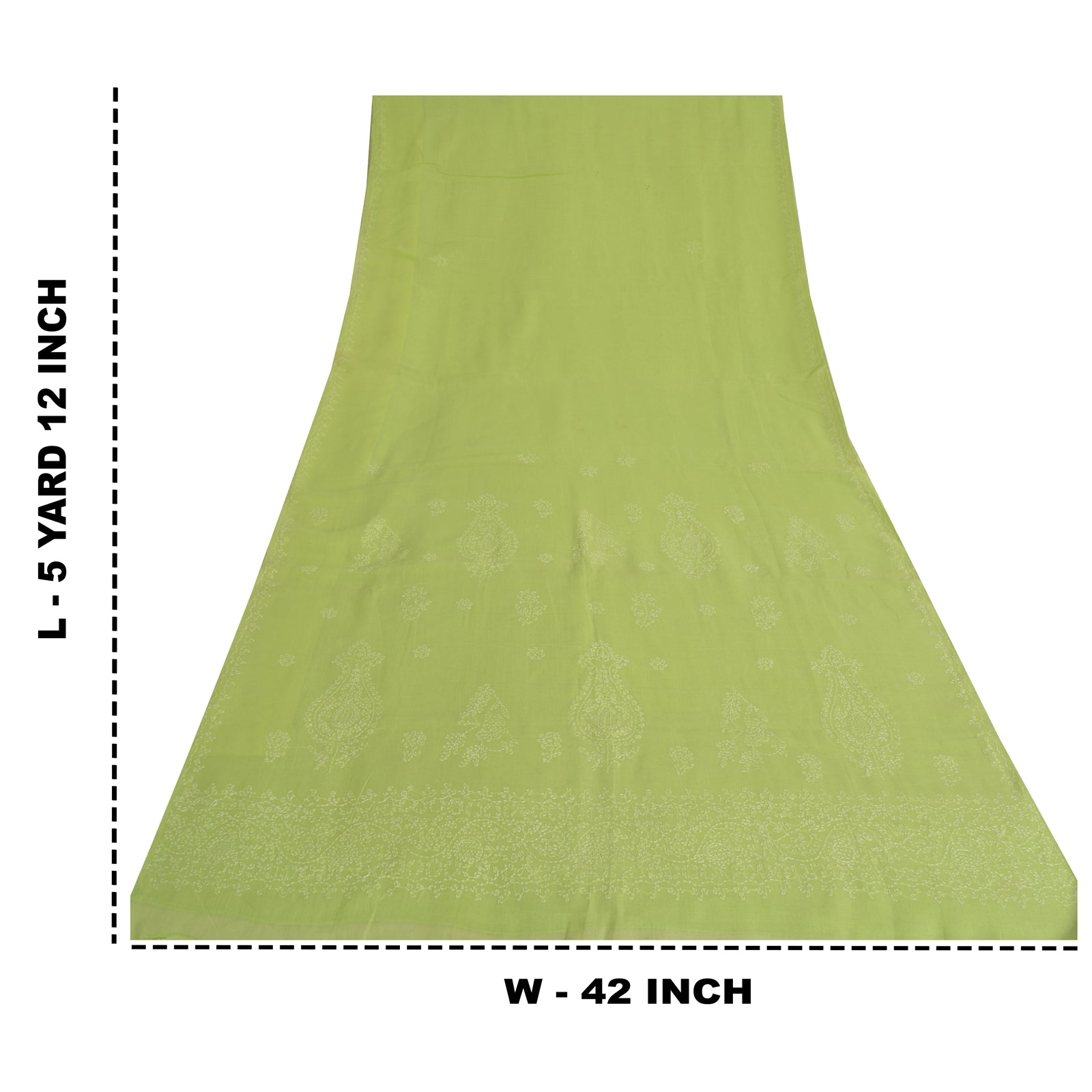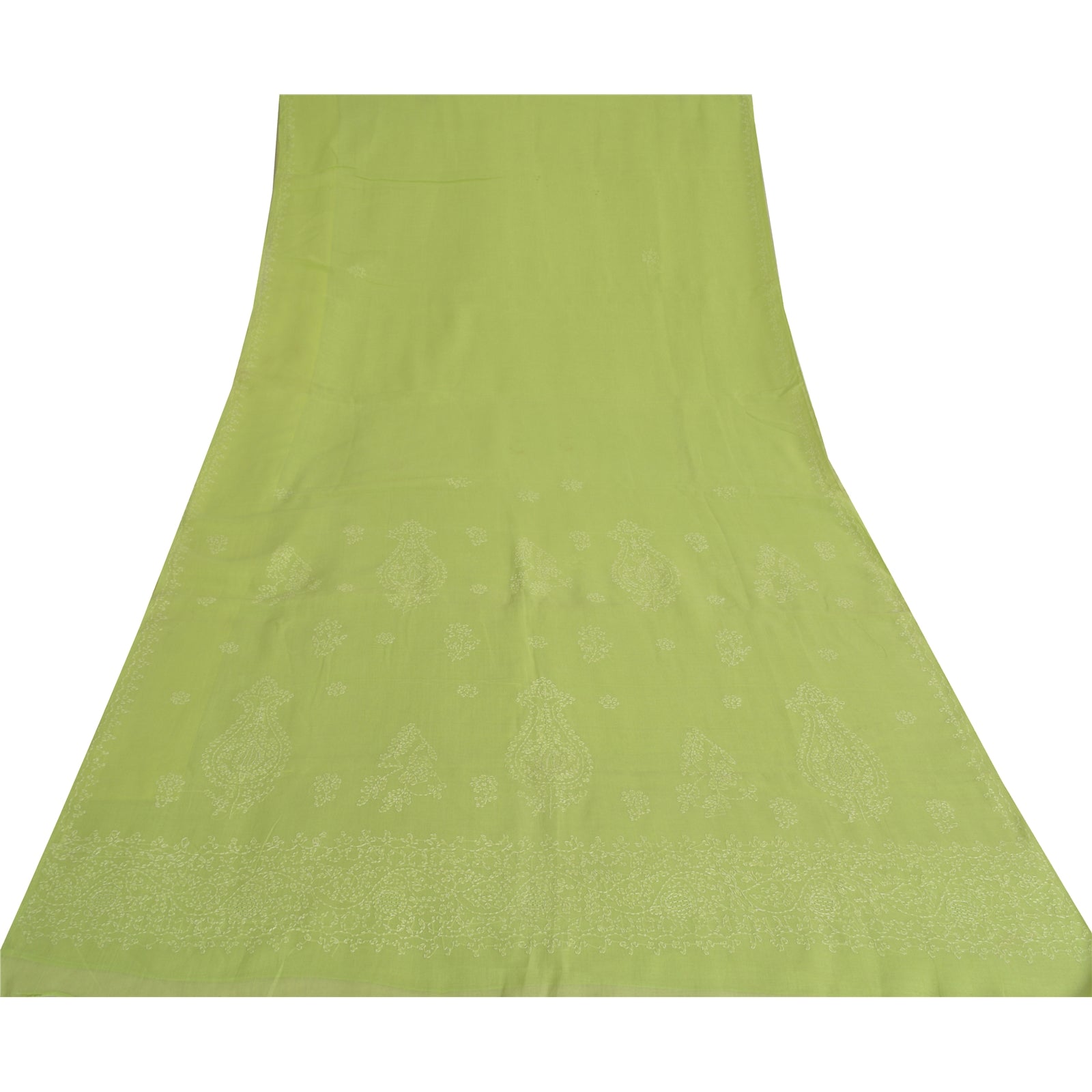 Sanskriti Vintage Sarees Green Hand Embroidered Chikankari Sari 5yd Craft Sustainable Fabric