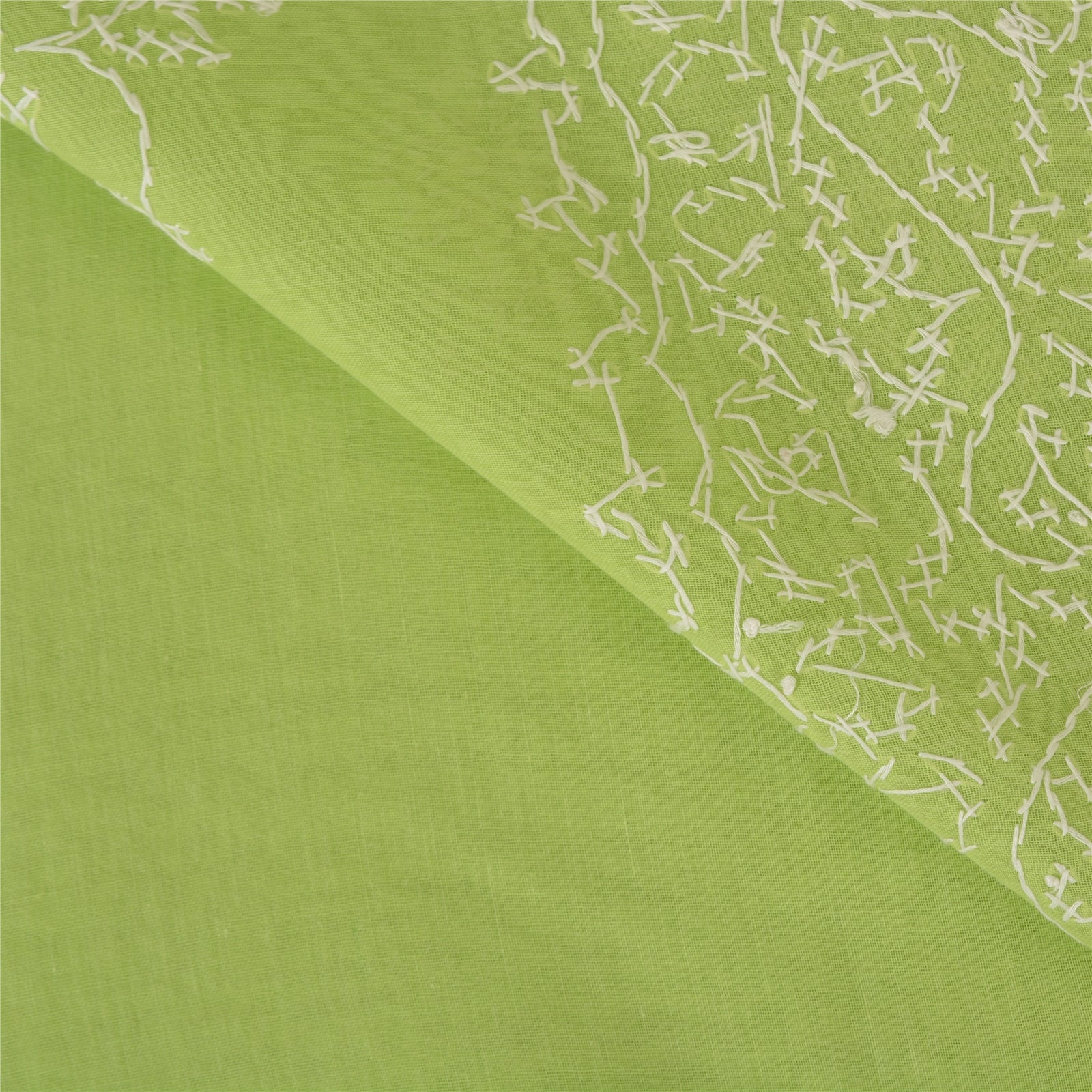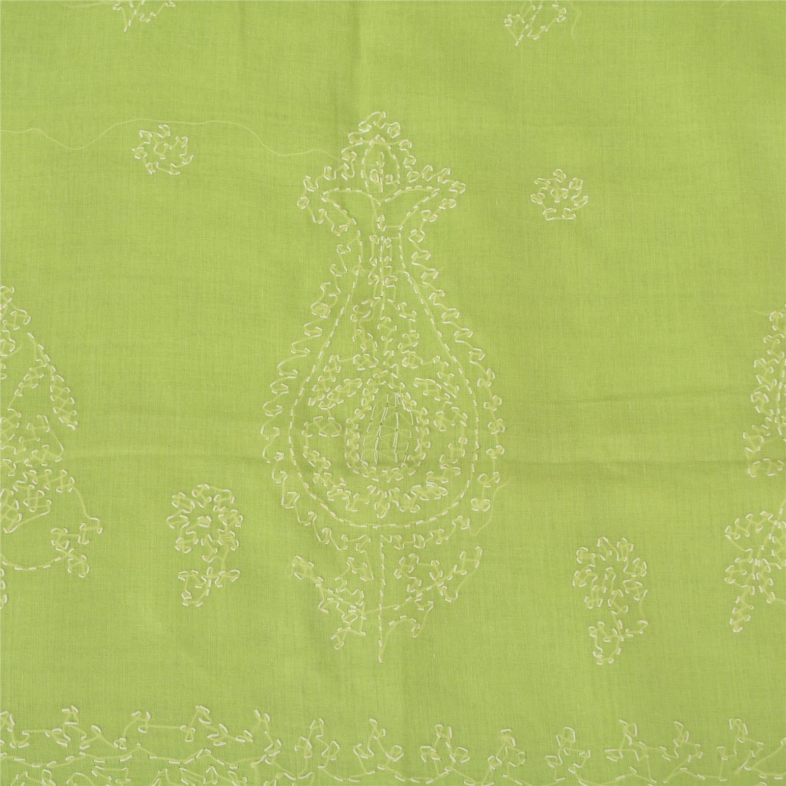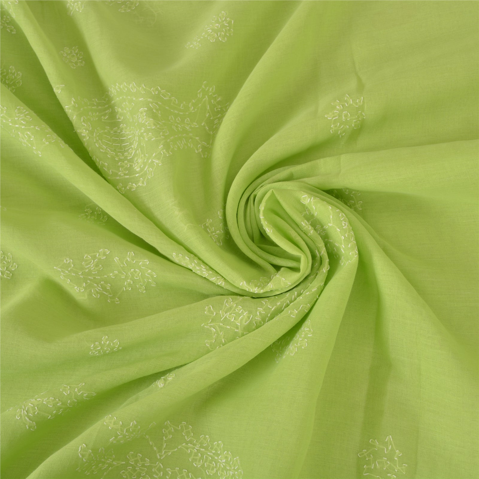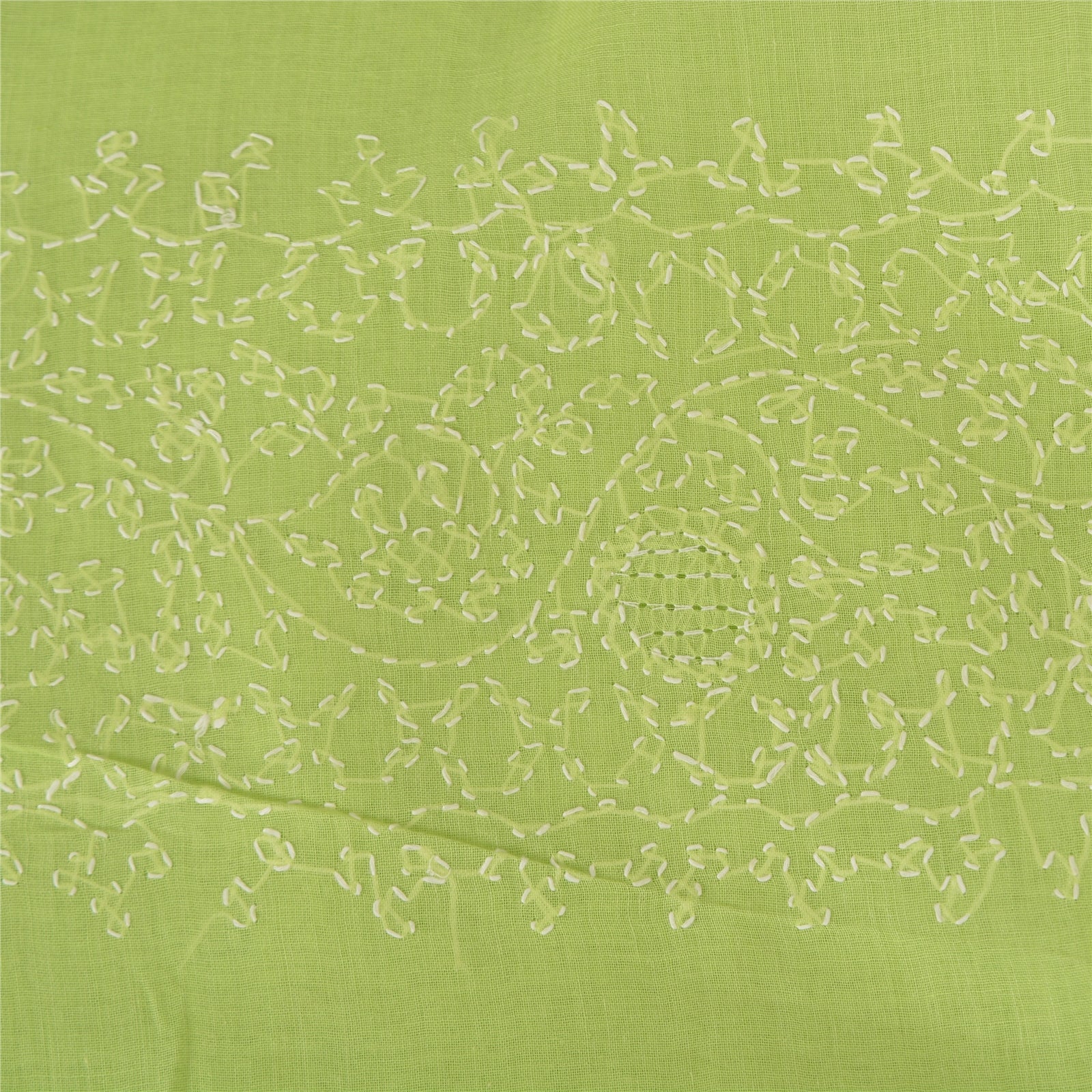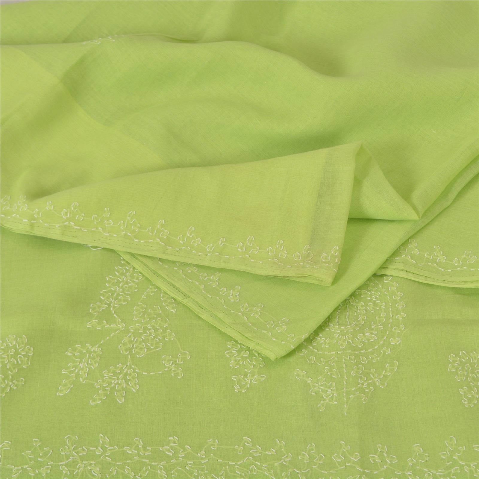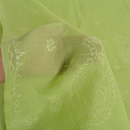 Sanskriti Vintage Sarees Green Hand Embroidered Chikankari Sari 5yd Craft Sustainable Fabric