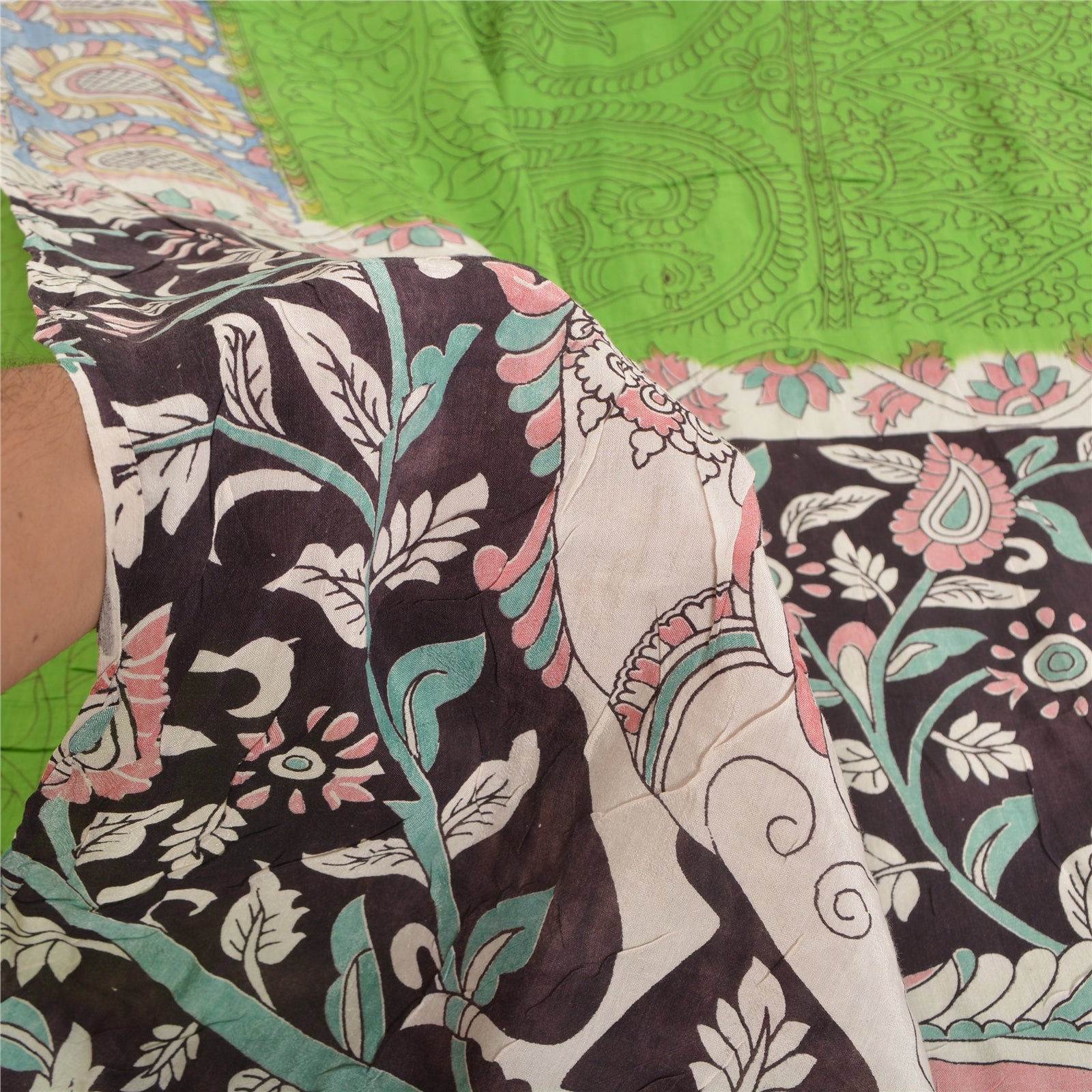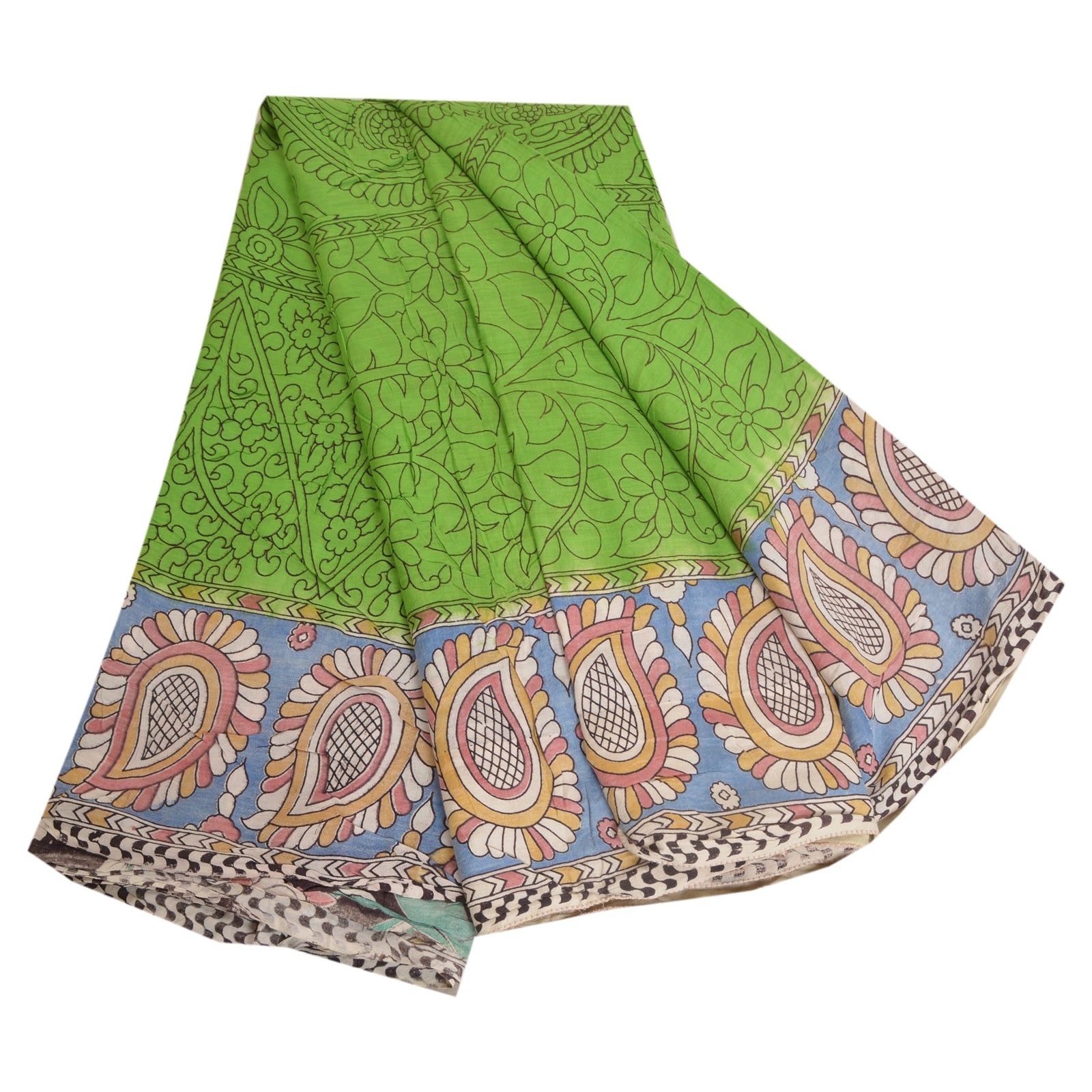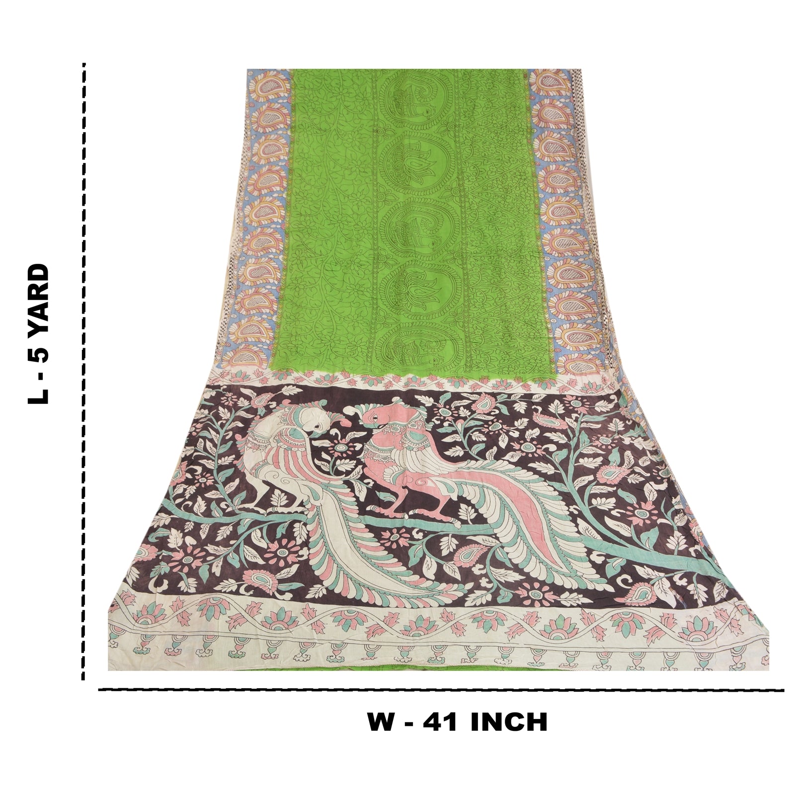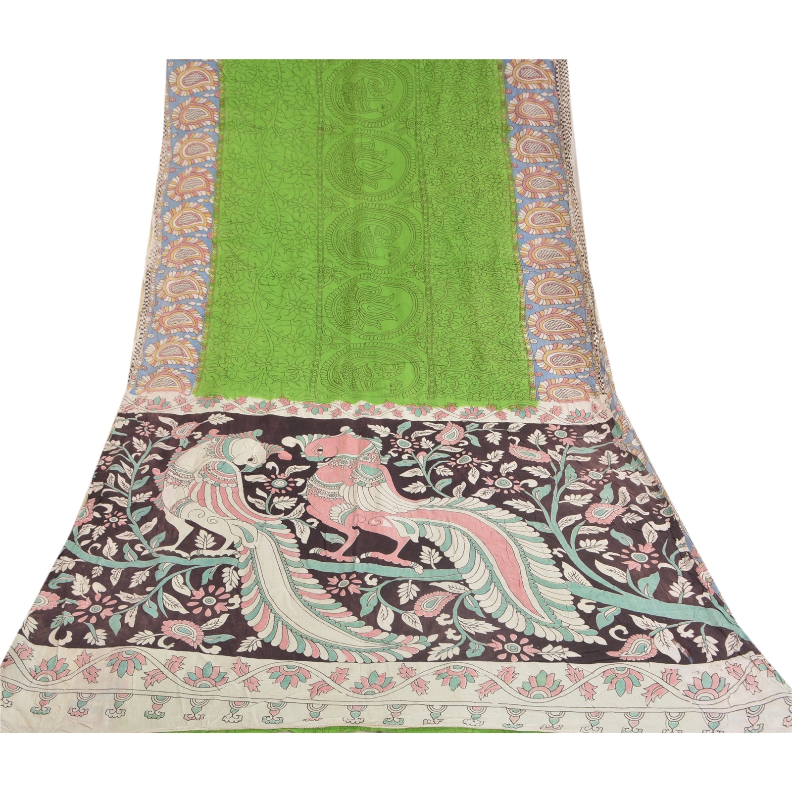 Sanskriti Vintage Sarees Green Handmade Kalamkari Pure Cotton Sari Craft Sustainable Fabric