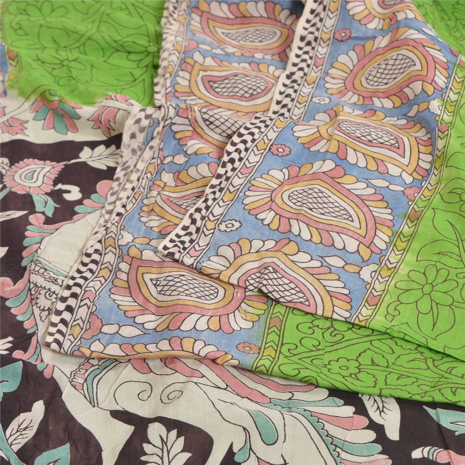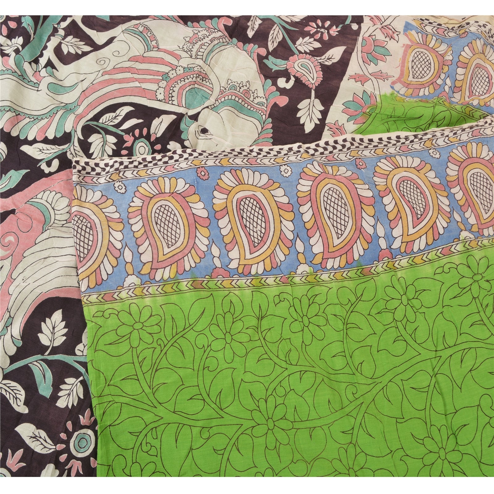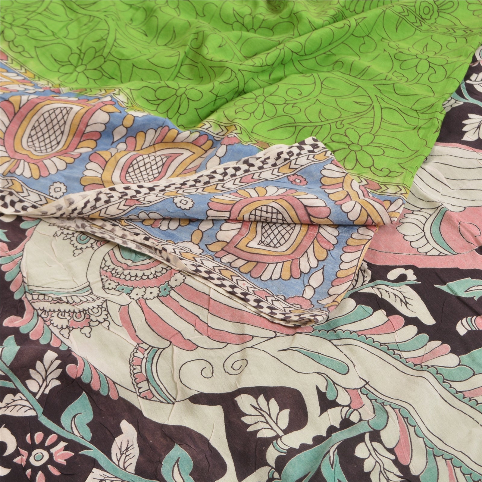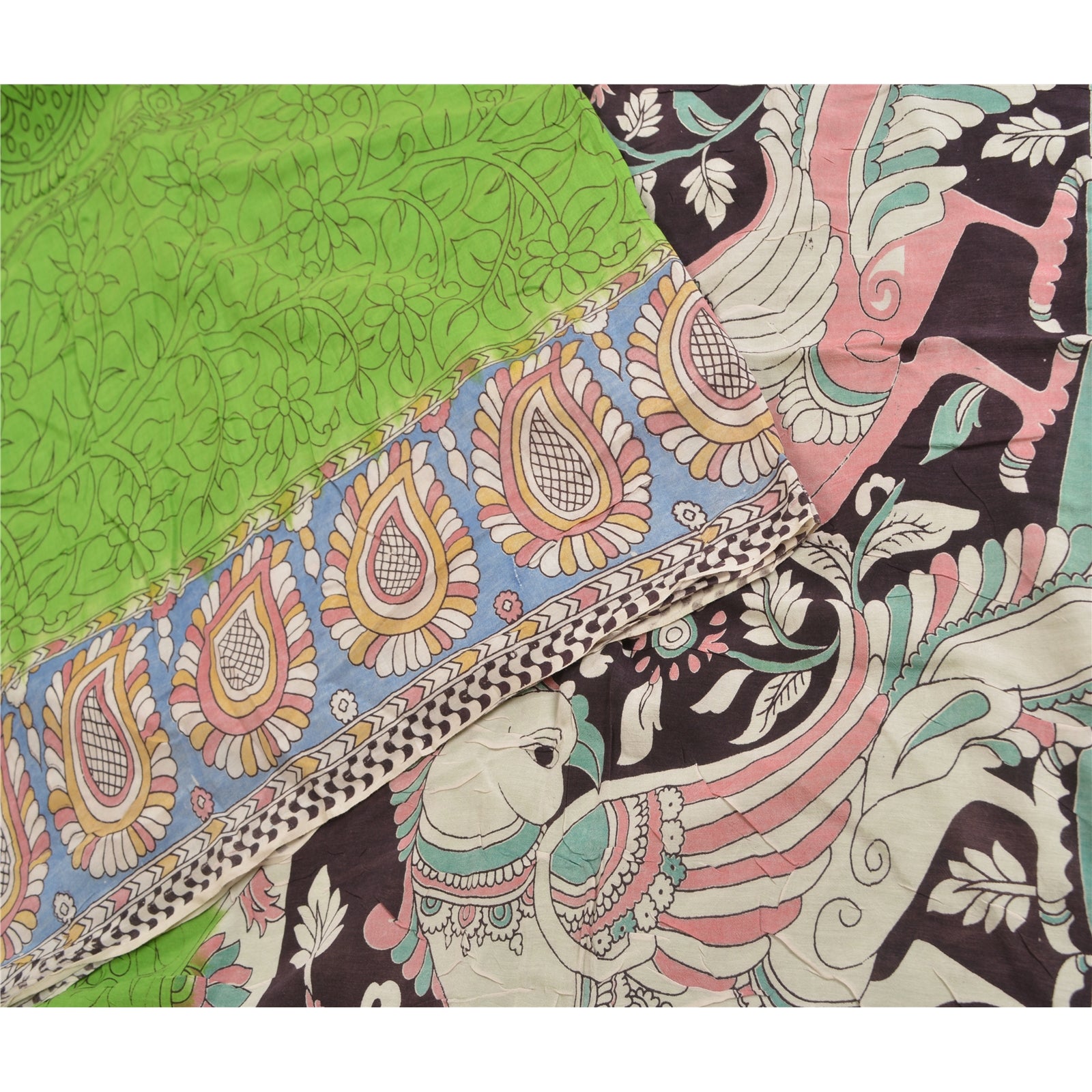 Sanskriti Vintage Sarees Green Handmade Kalamkari Pure Cotton Sari Craft Sustainable Fabric