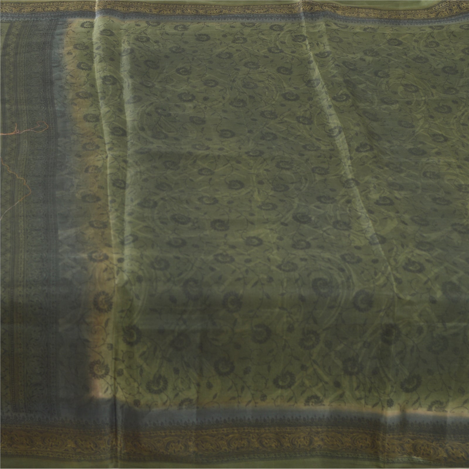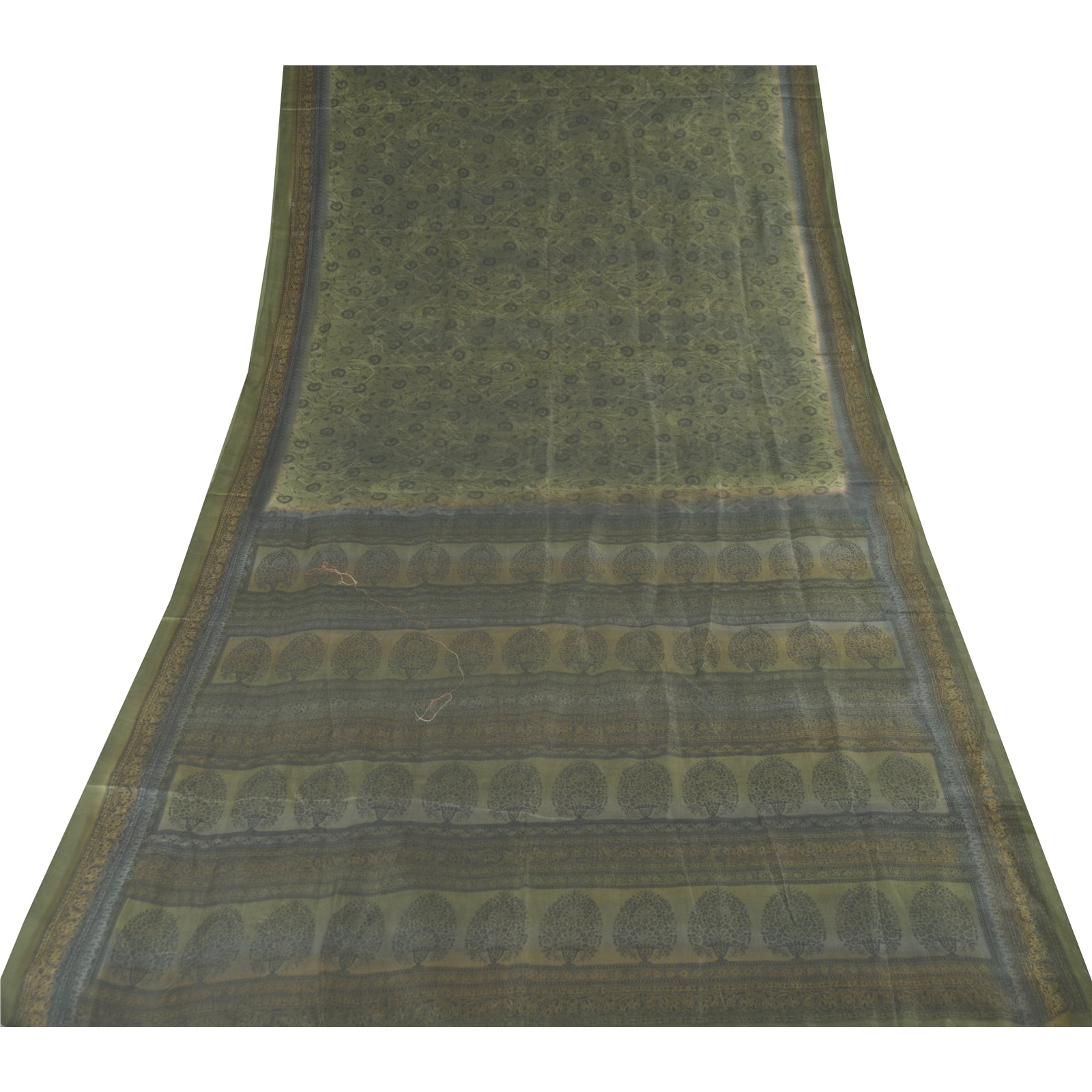 Sanskriti Vintage Sarees Green Indian Pure Cotton Printed Sari 5yd Craft Sustainable Fabric