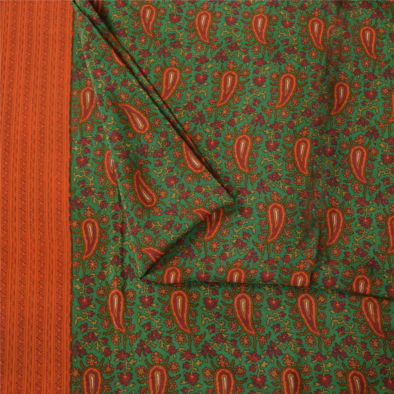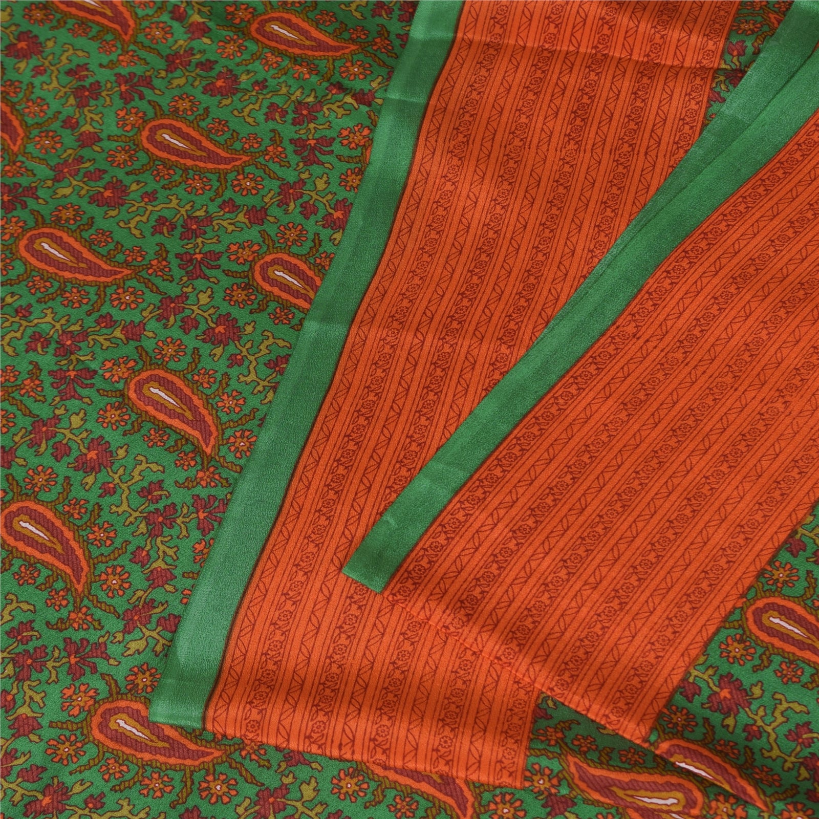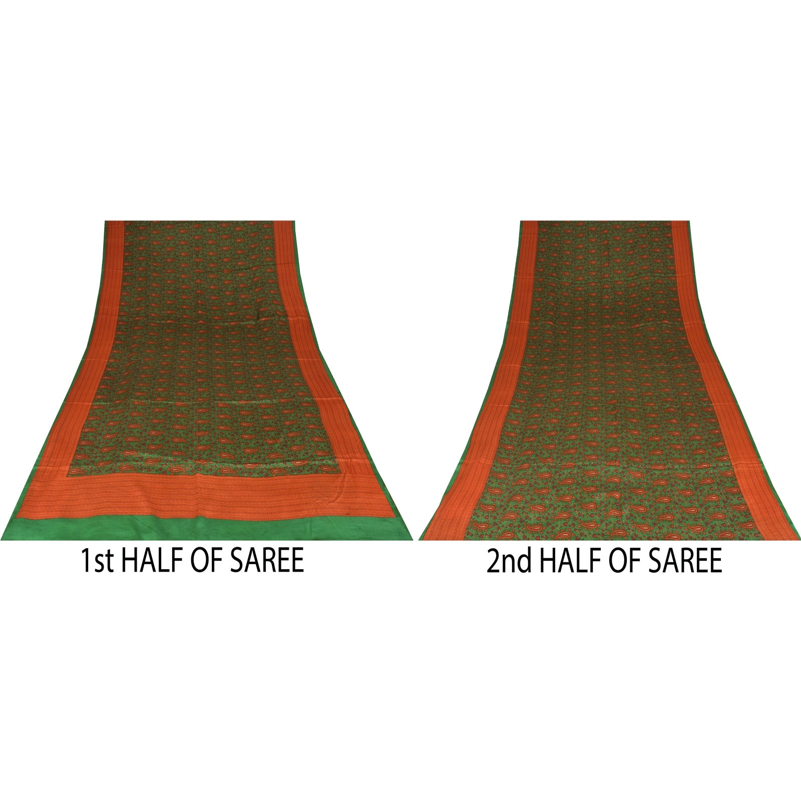 Sanskriti Vintage Sarees Green Indian Pure Crepe Printed Sari 5+yd Craft Fabric