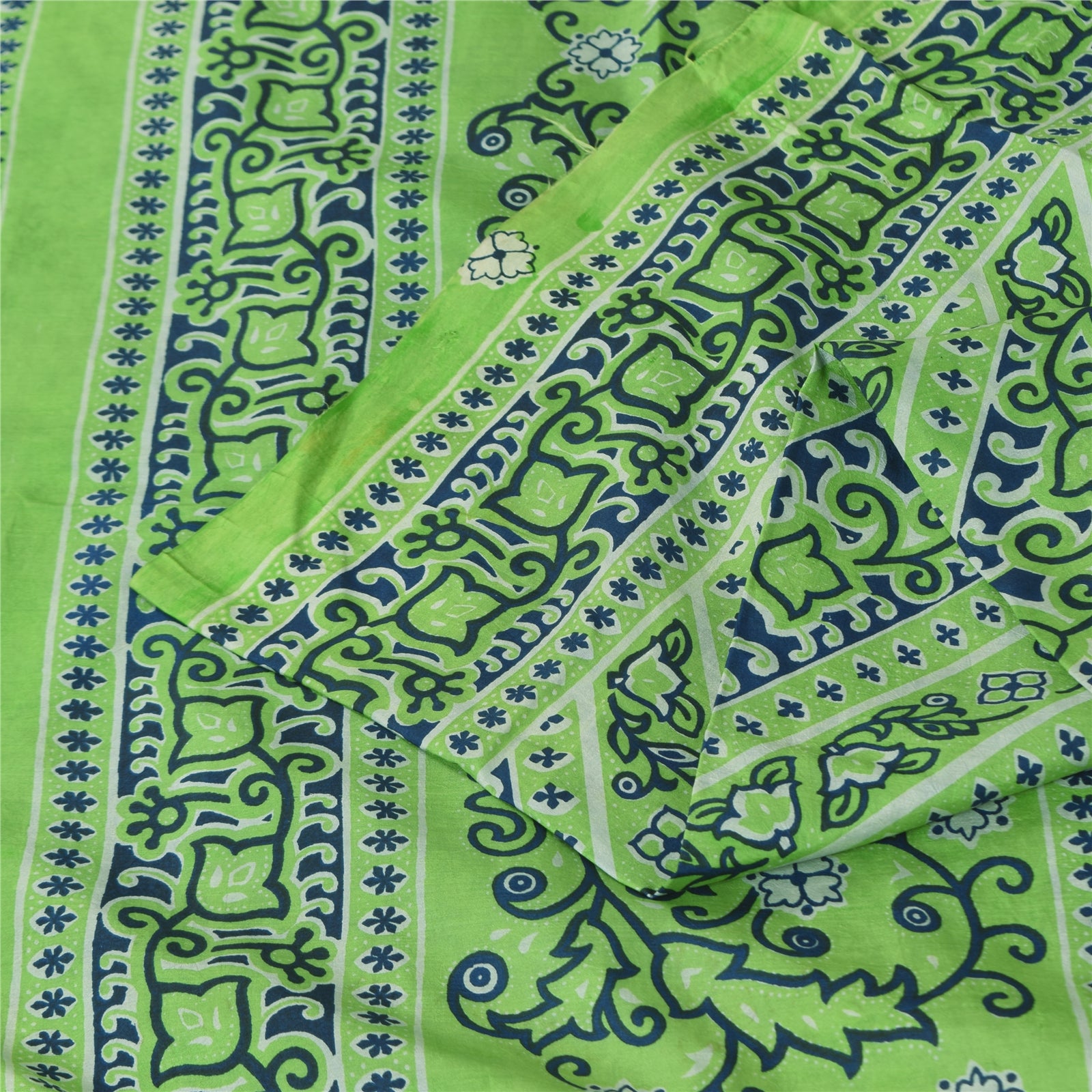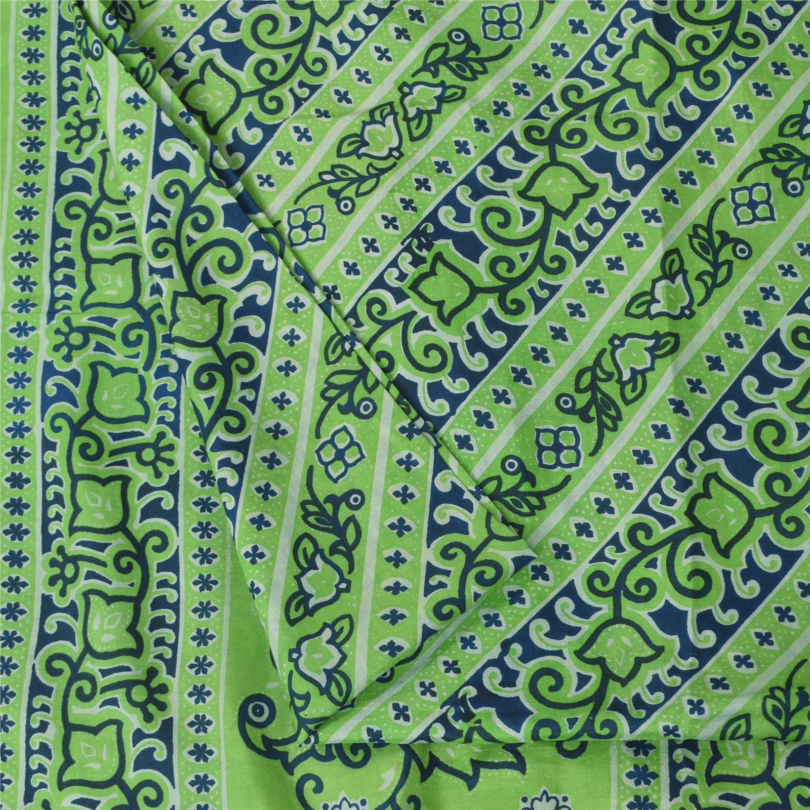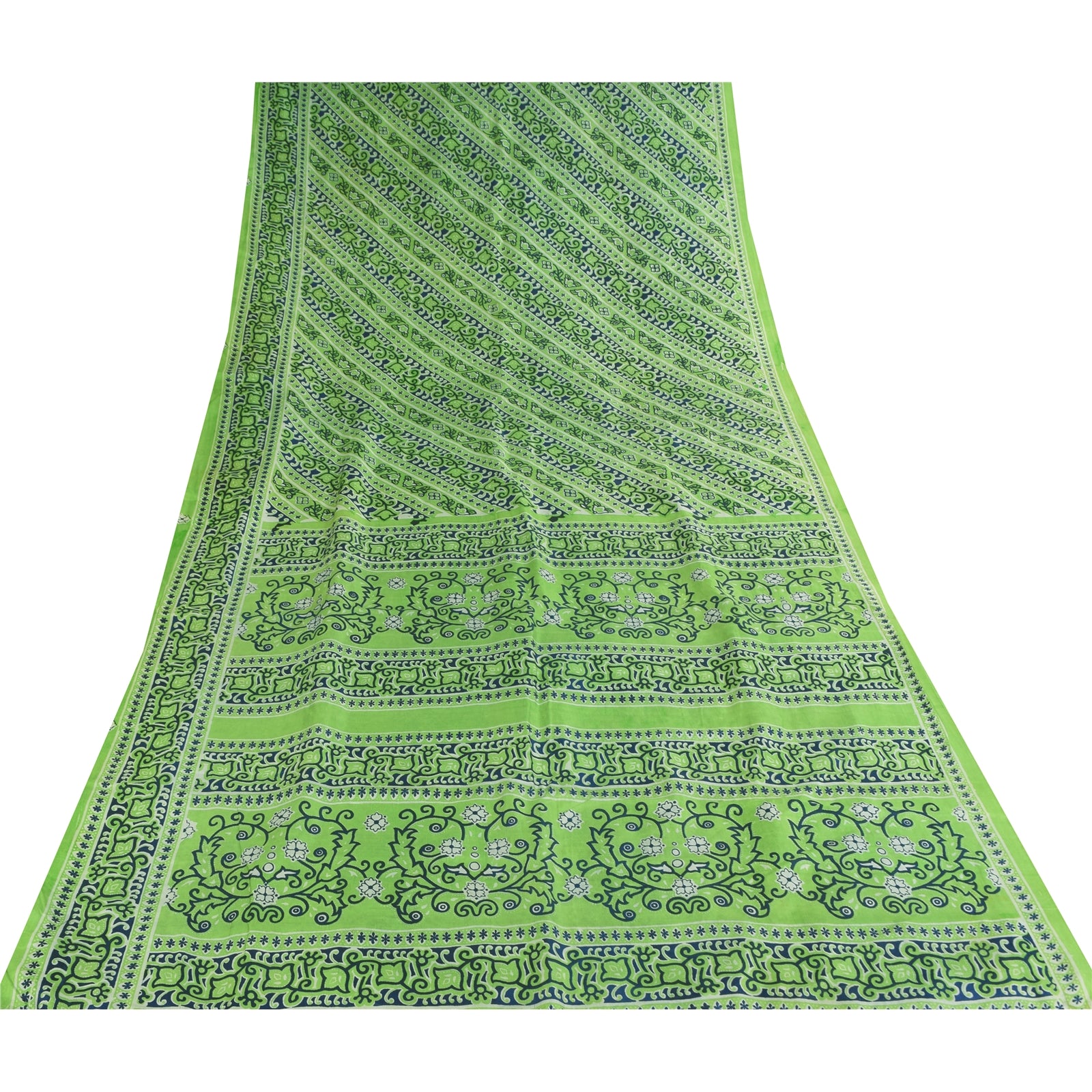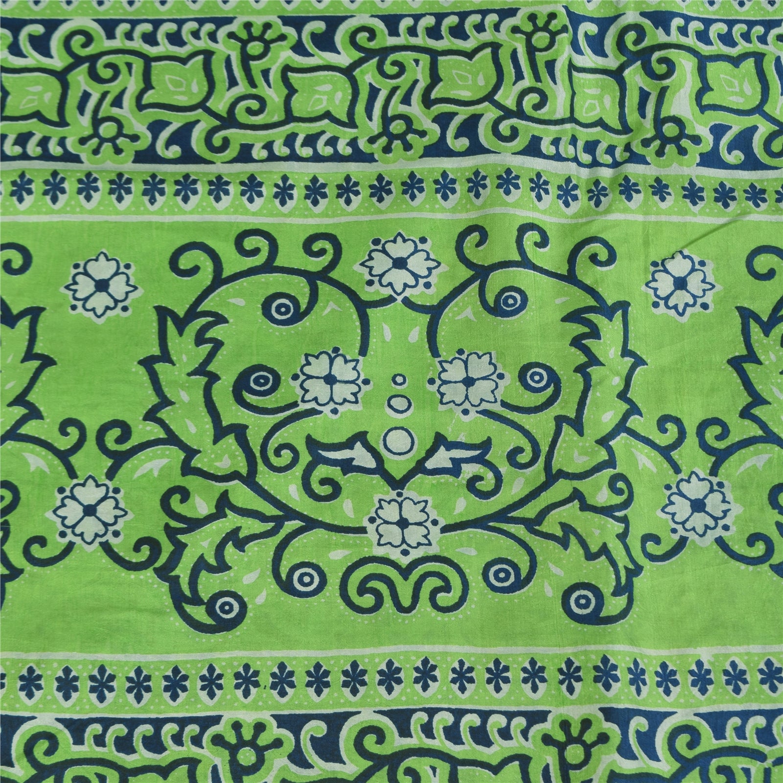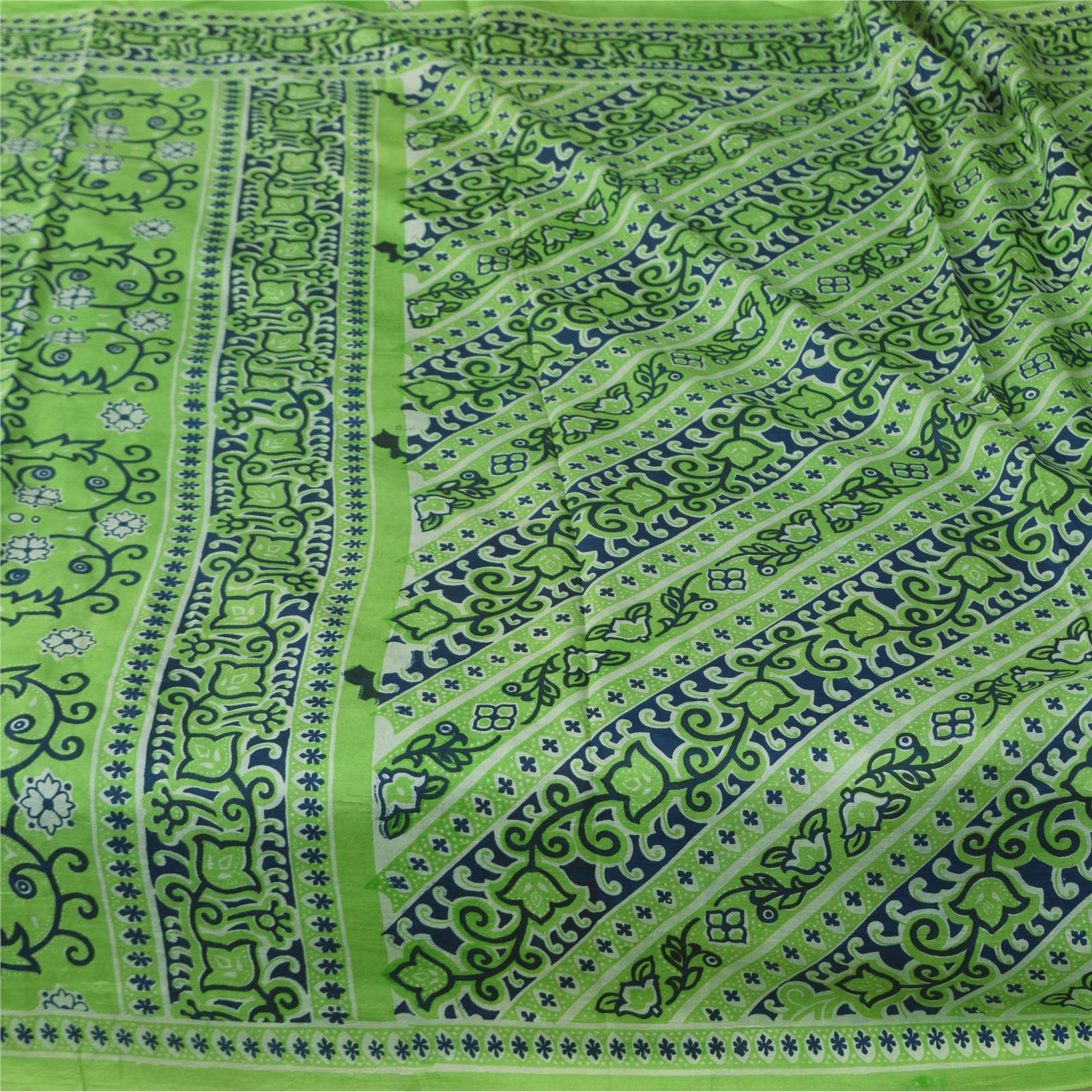 Sanskriti Vintage Sarees Green Indian Pure Silk Printed Sari 5+yd Craft Fabric
