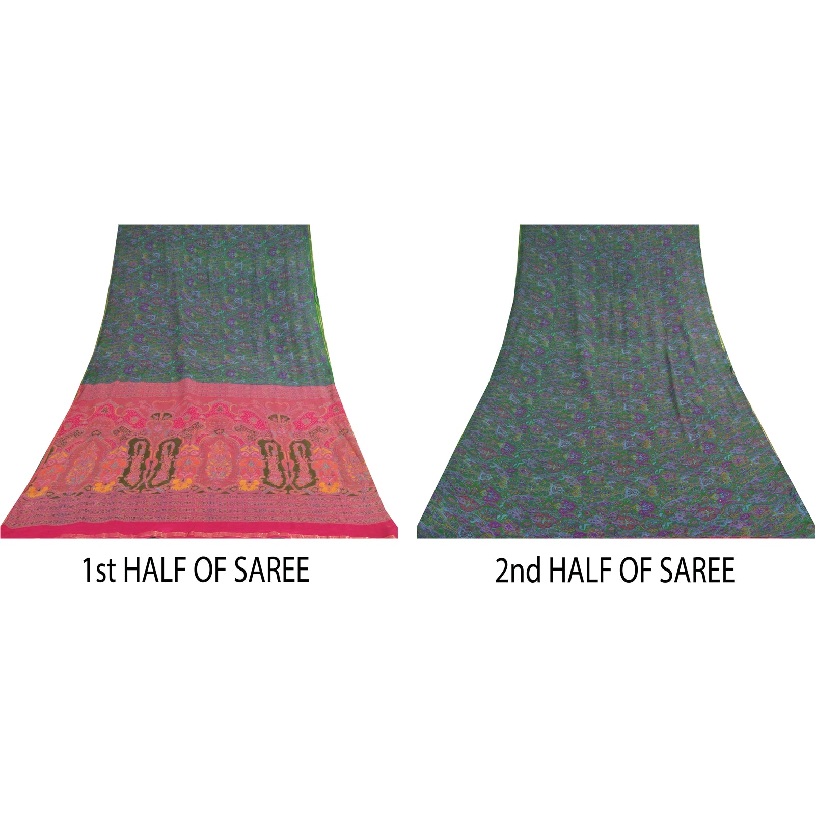 Sanskriti Vintage Sarees Green Indian Pure Silk Printed Sari Floral Craft Sustainable Fabric
