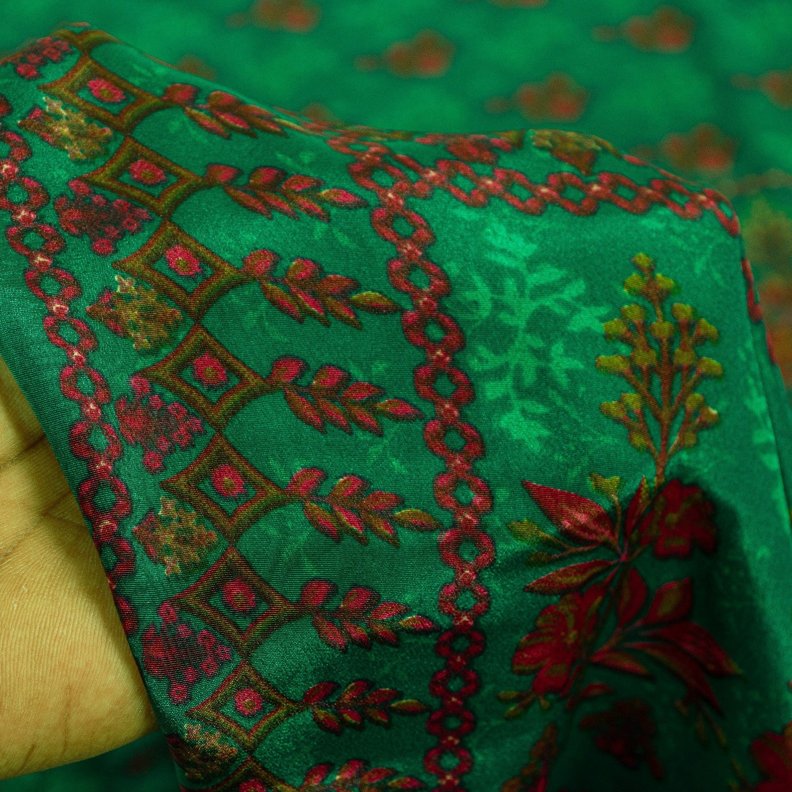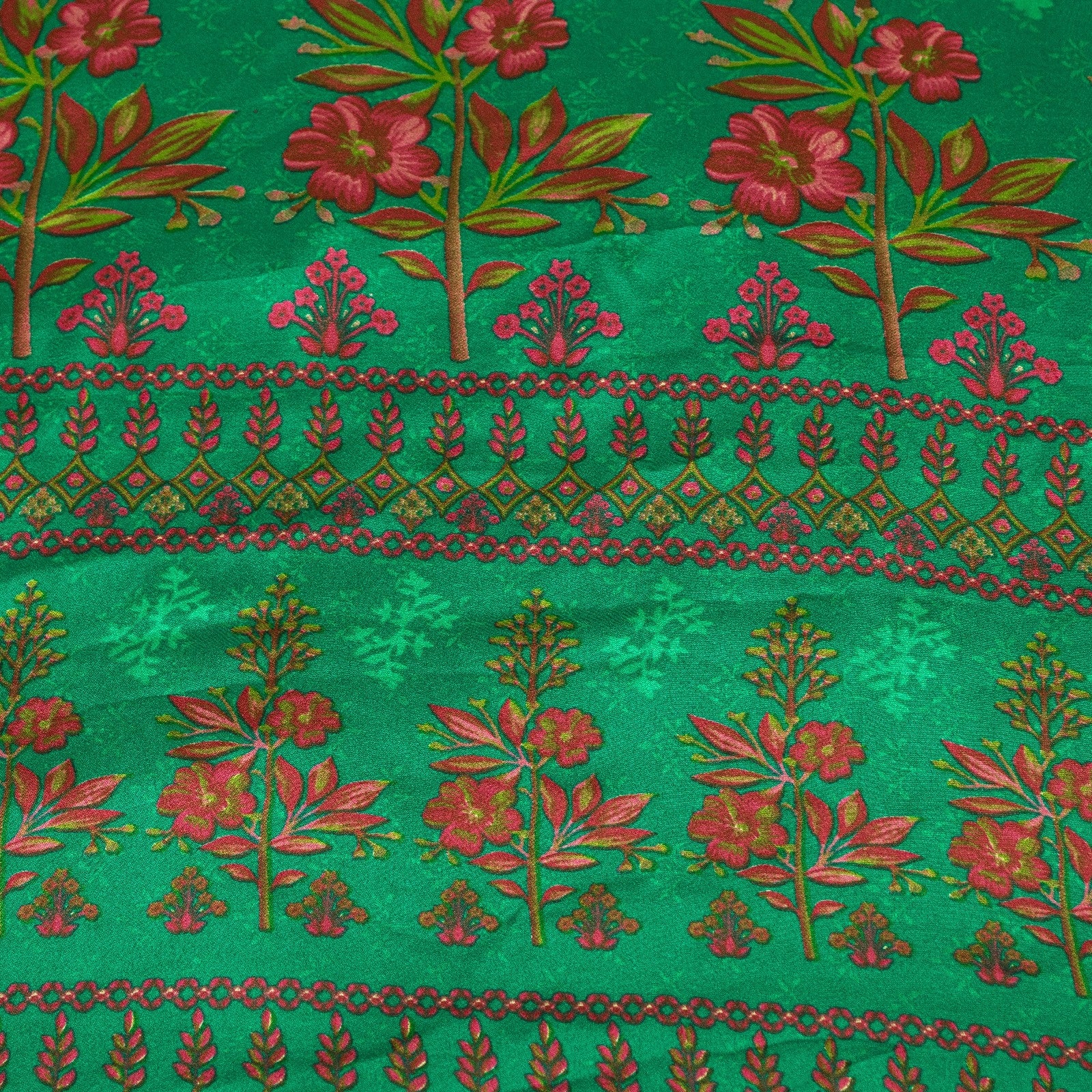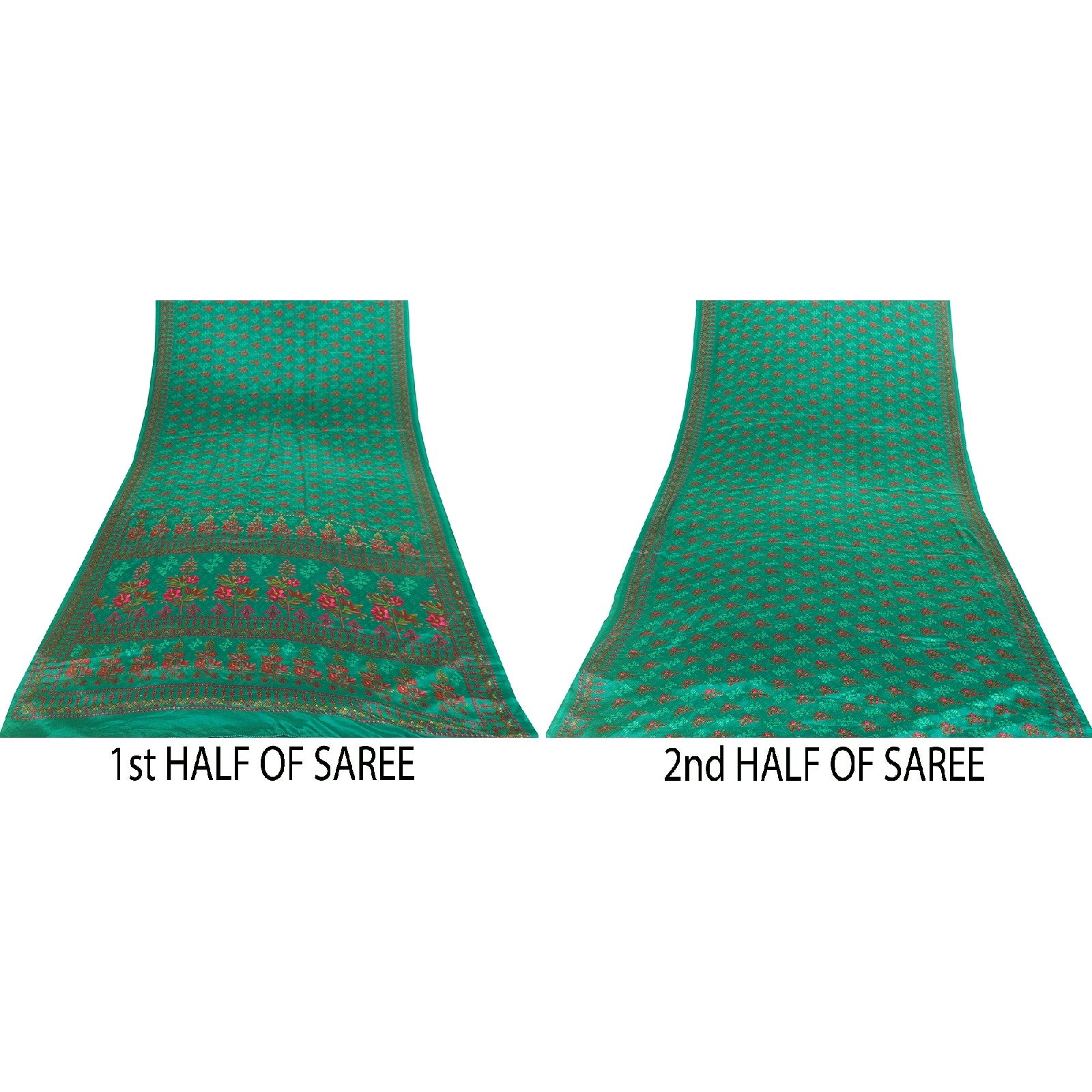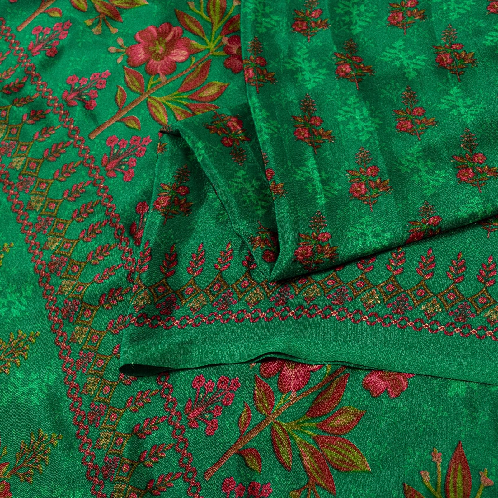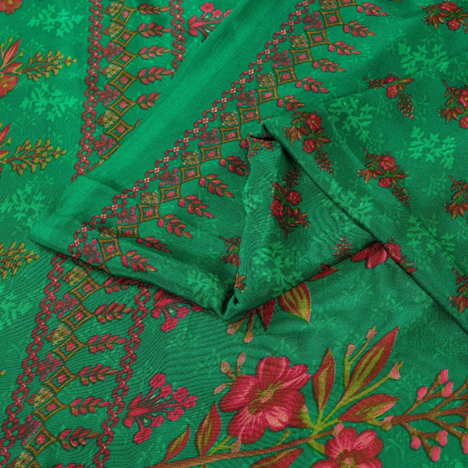 Sanskriti Vintage Sarees Green Moss Crepe Floral Printed Sari 6yd For Crafters