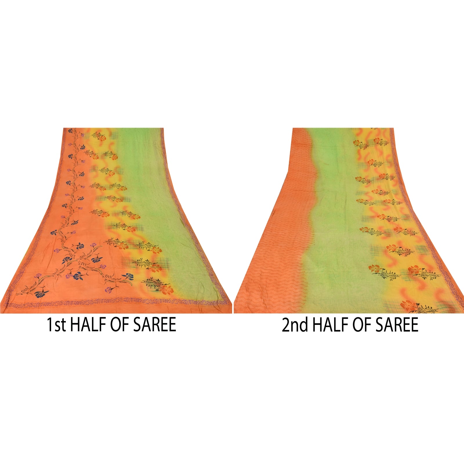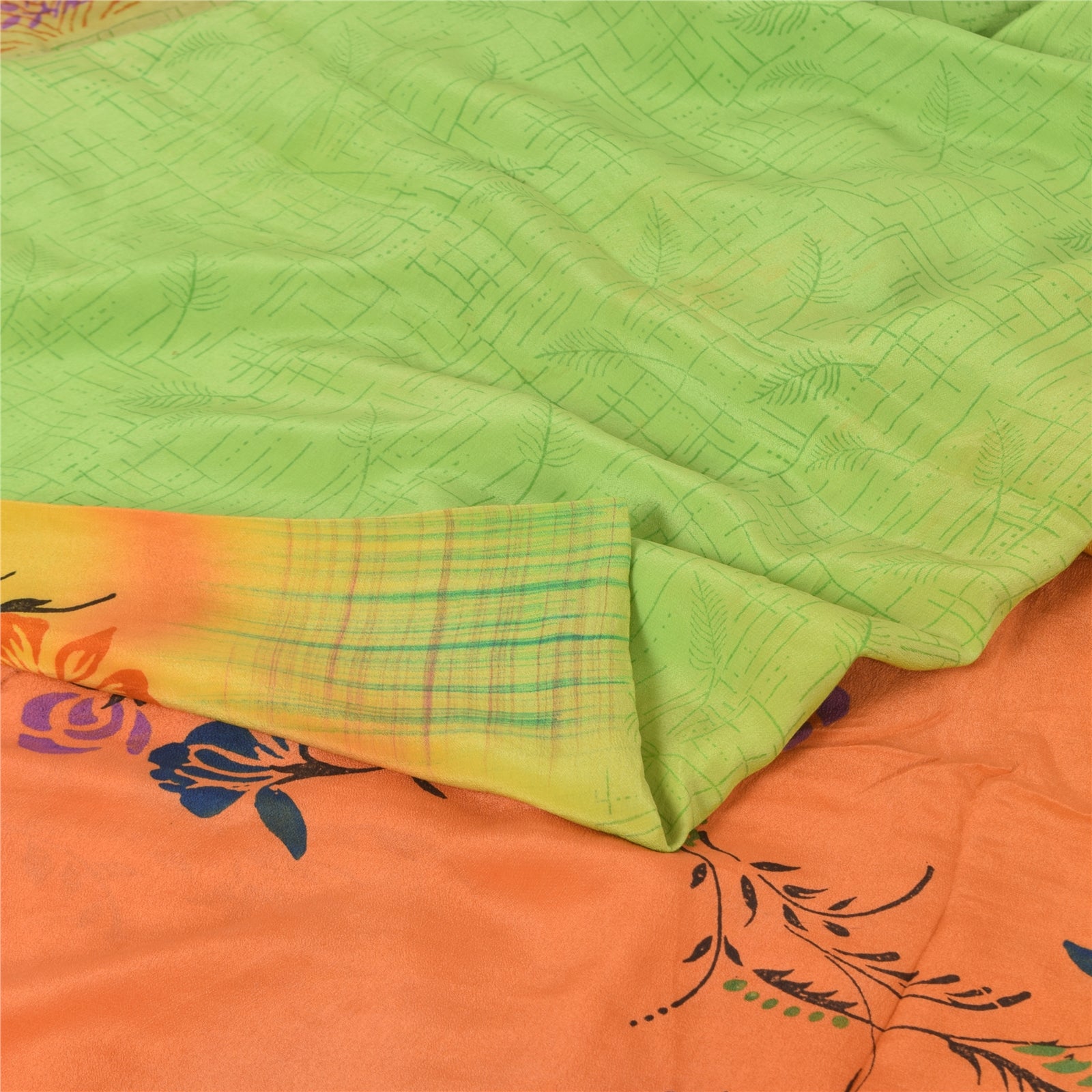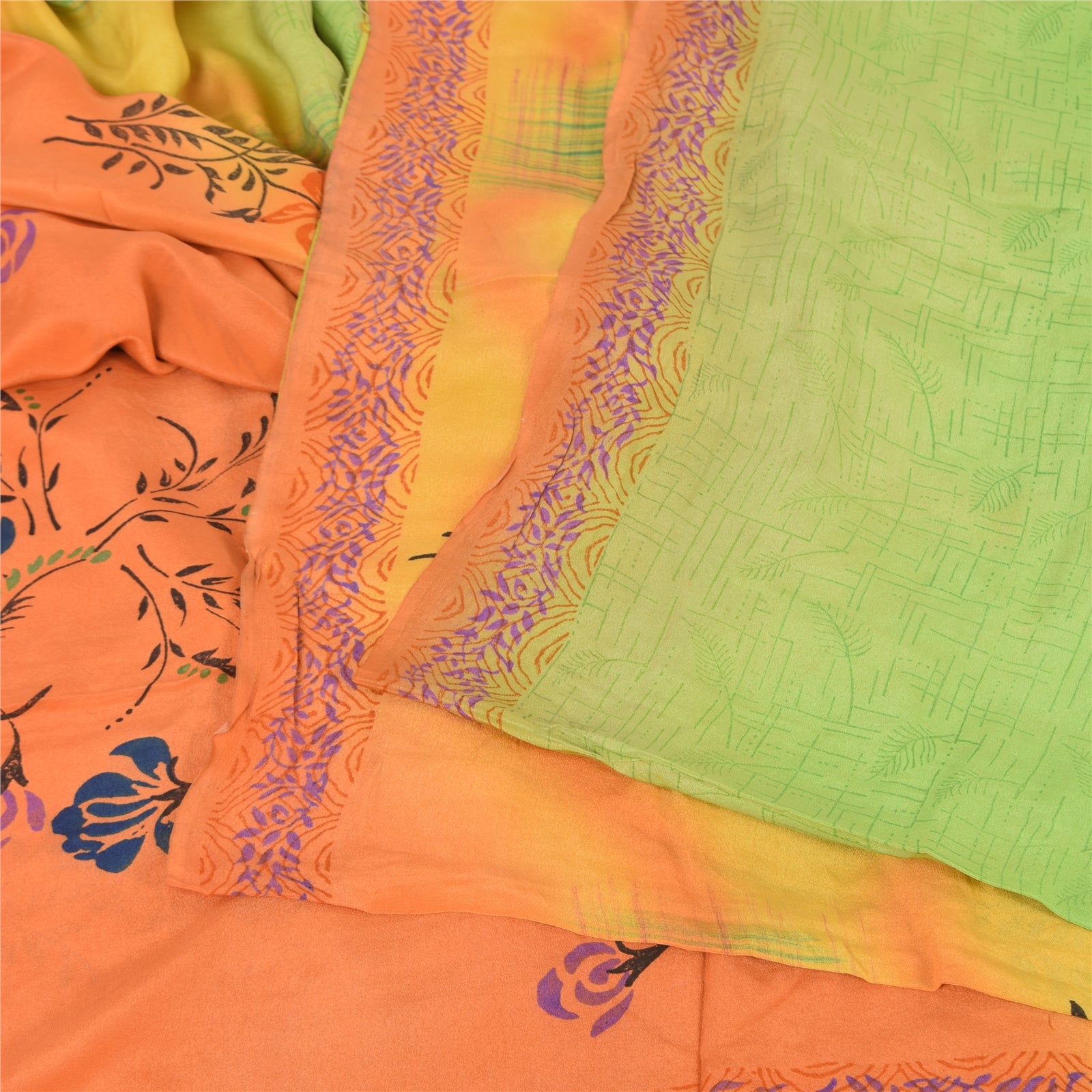 THE ITEM COLOR OR SHADE MAY BE DARKER OR LIGHTER THAN THE PICTURE.' • Beautiful green & orange colored printed pure crepe silk saree . • Pallu & Border has printed floral design. • Floral design in center part of sari . This unique vintage saree can be used for various crafting ideas even if you don't want to use it as a sari. Design a dress, use it as a as window dressing, upholstery, sarongs, throw, dress making and table linen much more. Let your creative juices flow and use this decorated Sustainable Fabric in multiple fashion. International buyers please note: Import duties, taxes, and charges are not included in the item price or postage cost. These charges are the buyer's responsibility. Please check with your country's customs office to determine what these additional costs will be prior to bidding or buying.Buyer will pay custom duty/tax. It is calculated and charged differently by every country. As a seller I do not have any control over it. VAT or sales tax is calculated by the platform at the time of checkout. Customs charge is payable at the time of delivery.
