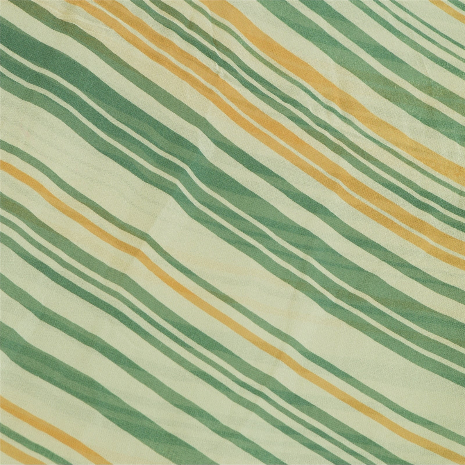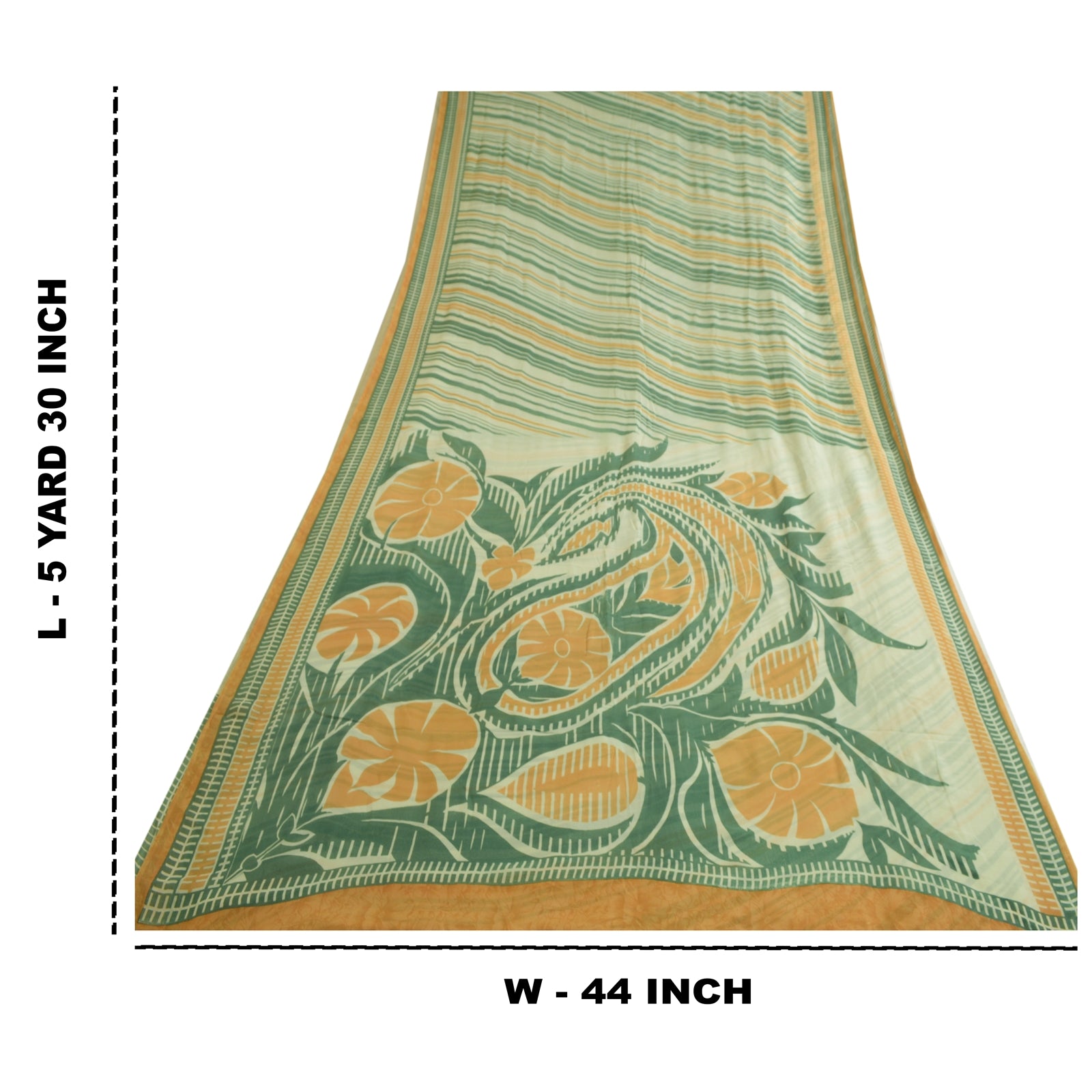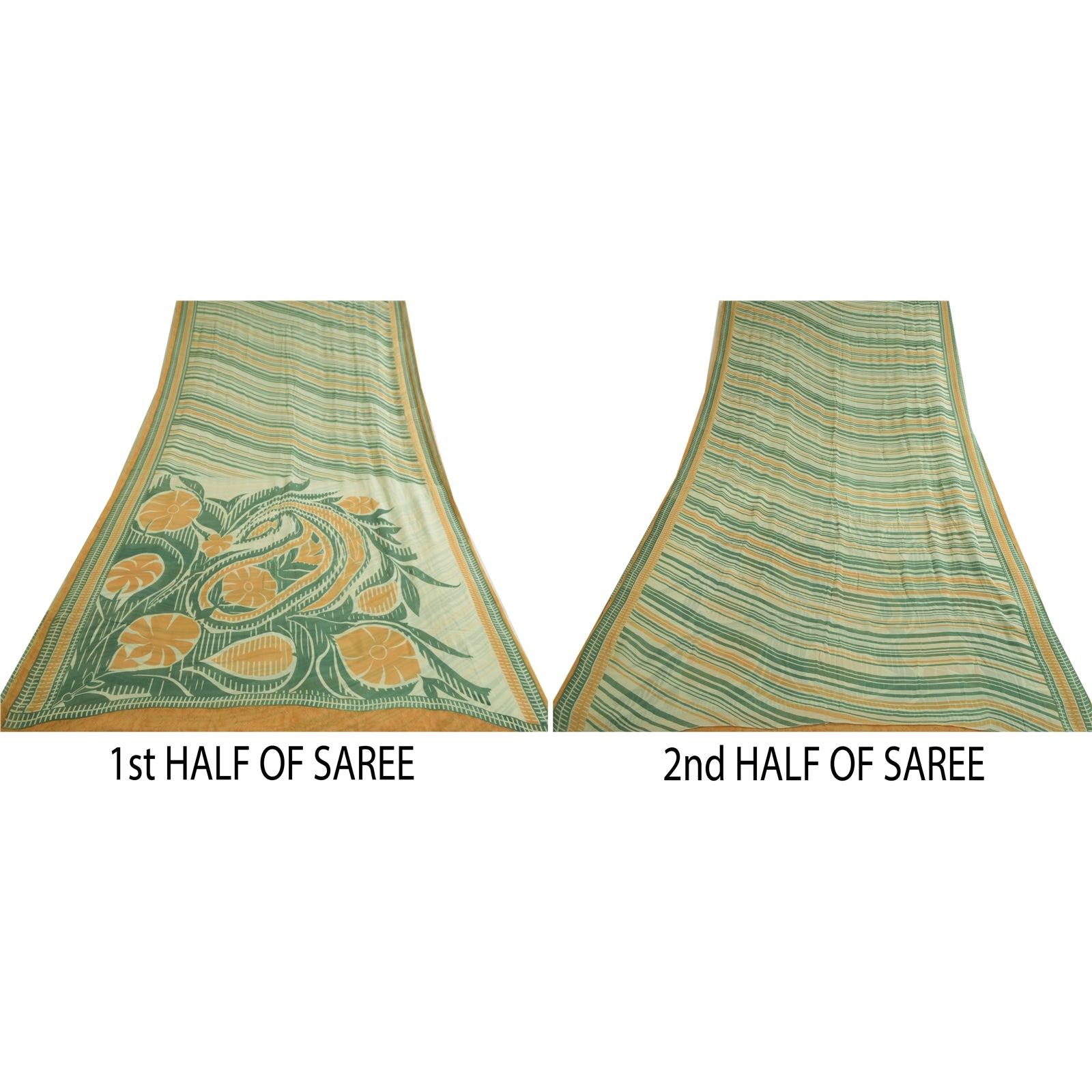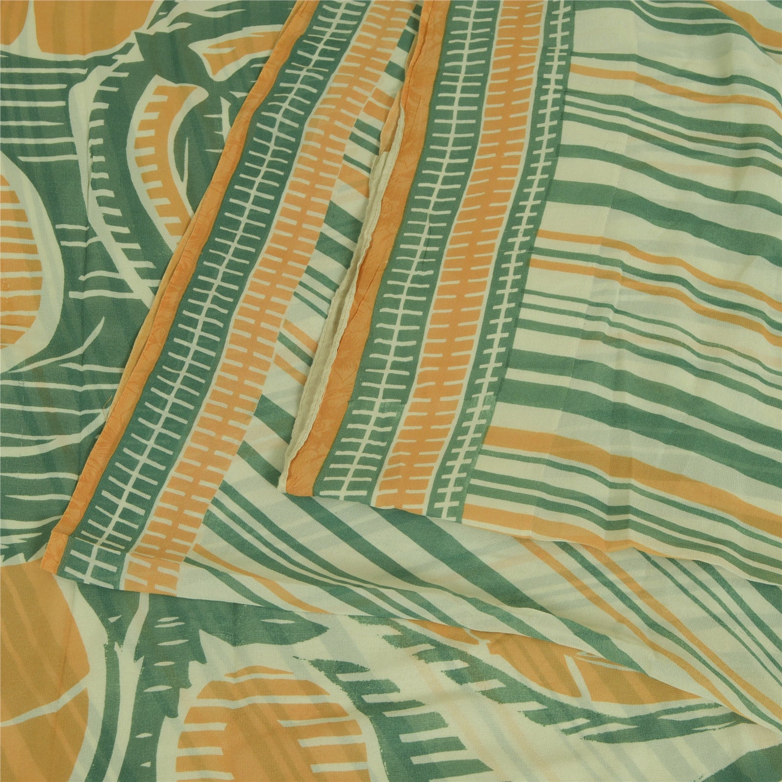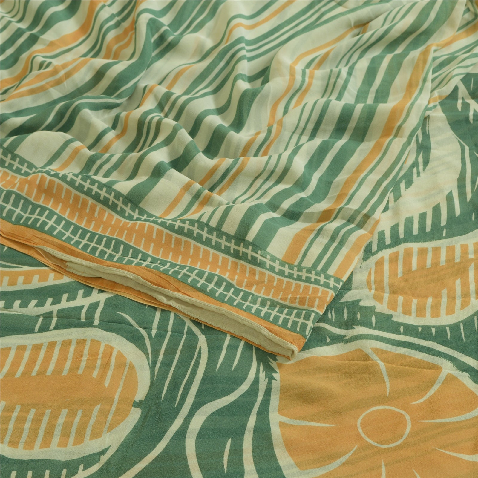 Sanskriti Vintage Sarees Green/Orange Pure Georgette Silk Print Sari CraftSustainable Fabric