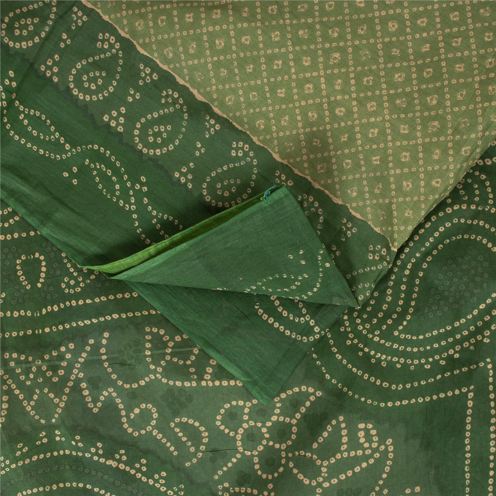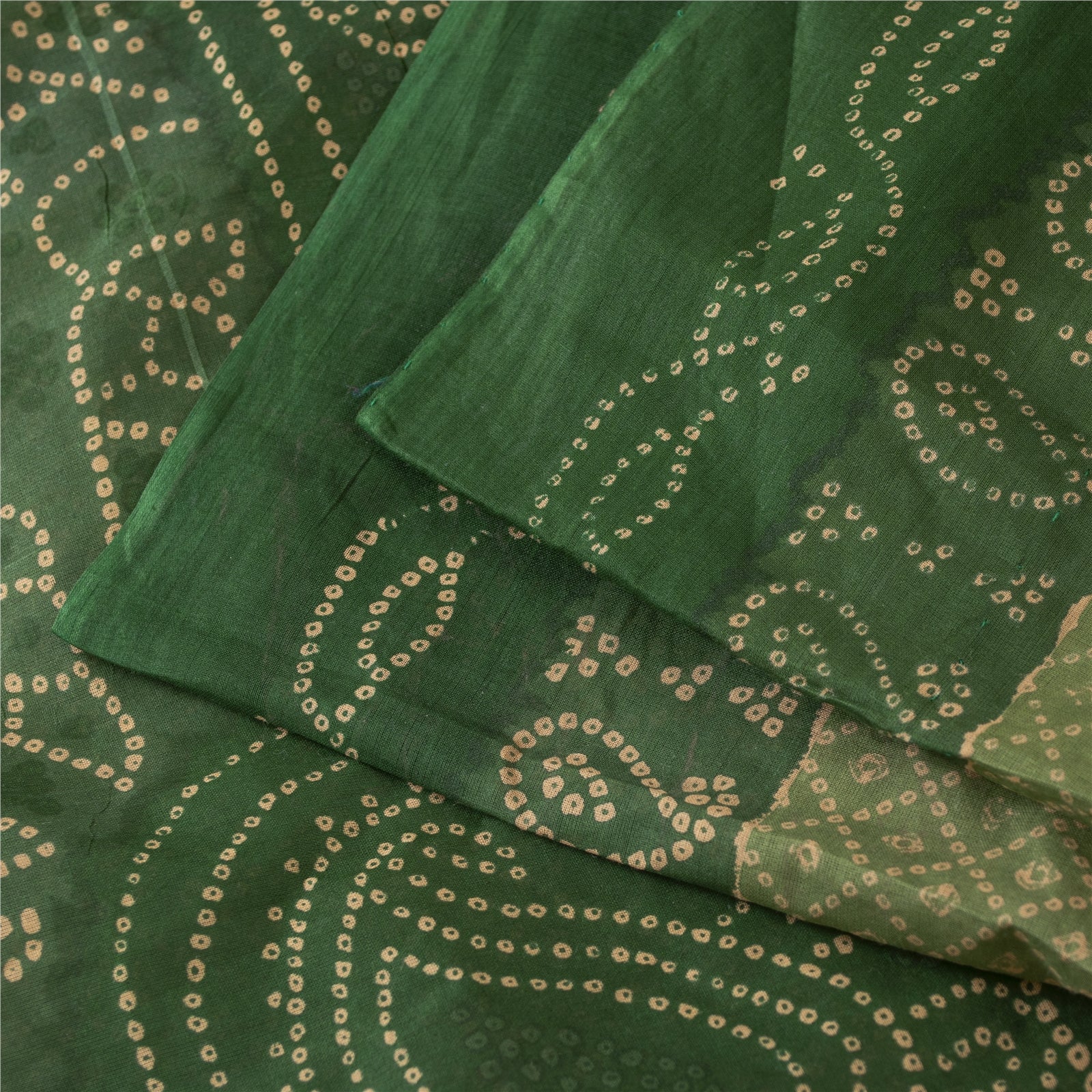 Sanskriti Vintage Sarees Green Pure Cotton Bandhani Print Sari 5+yd Craft Fabric