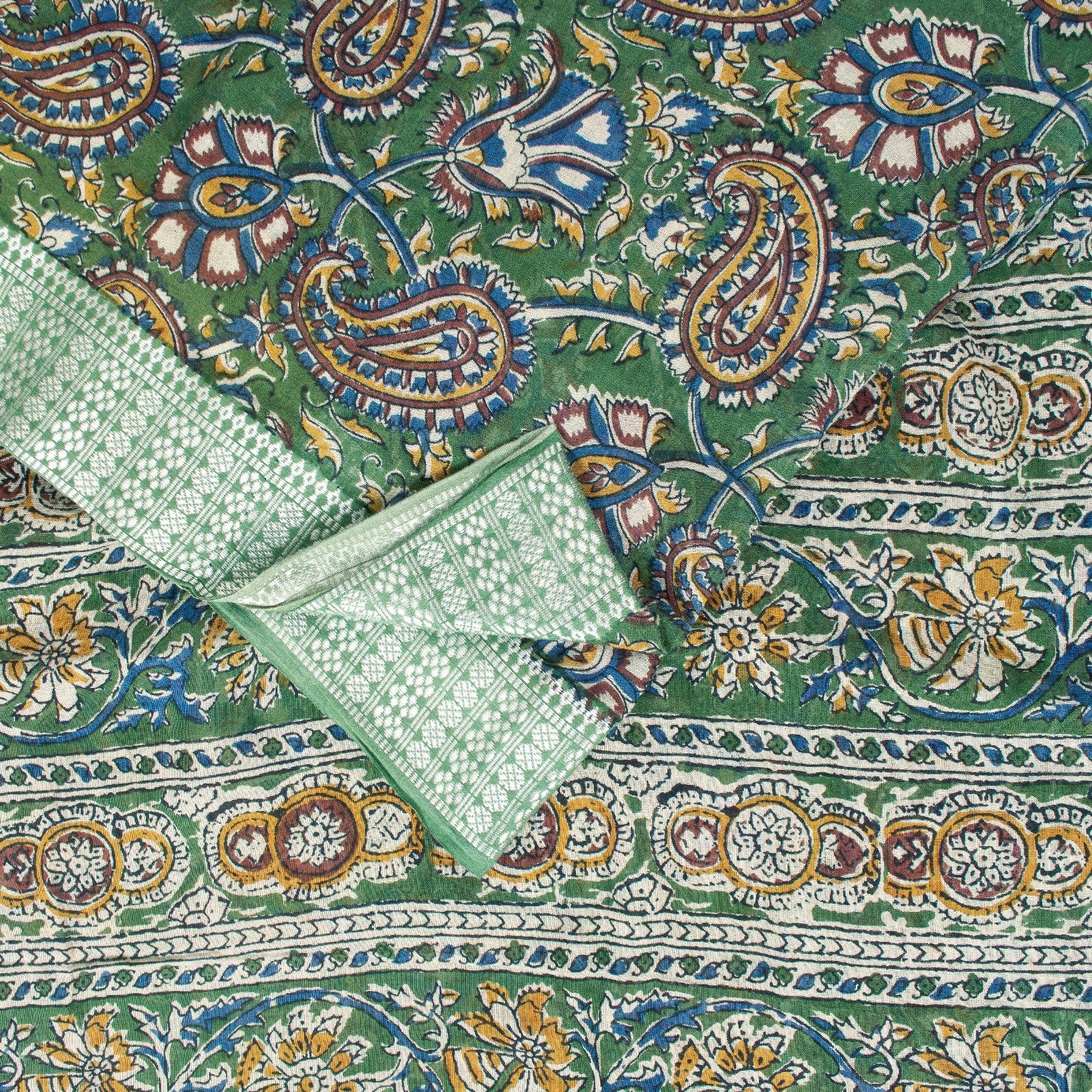 Sanskriti Vintage Sarees Green Pure Cotton Hand Block Kalamkari Print 5+yd Sari