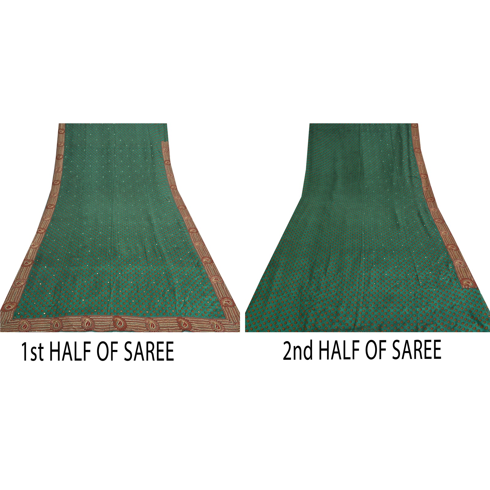 THE ITEM COLOR OR SHADE MAY BE DARKER OR LIGHTER THAN THE PICTURE.' • Beautiful green colored embroidered & printed pure crepe silk saree . • Border has printed floral design with zari & sequins work. • Similar work in center part of sari . This unique vintage saree can be used for various crafting ideas even if you don't want to use it as a sari. Design a dress, use it as a as window dressing, upholstery, sarongs, throw, dress making and table linen much more. Let your creative juices flow and use this decorated Sustainable Fabric in multiple fashion. International buyers please note: Import duties, taxes, and charges are not included in the item price or postage cost. These charges are the buyer's responsibility. Please check with your country's customs office to determine what these additional costs will be prior to bidding or buying.Buyer will pay custom duty/tax. It is calculated and charged differently by every country. As a seller I do not have any control over it. VAT or sales tax is calculated by the platform at the time of checkout. Customs charge is payable at the time of delivery.