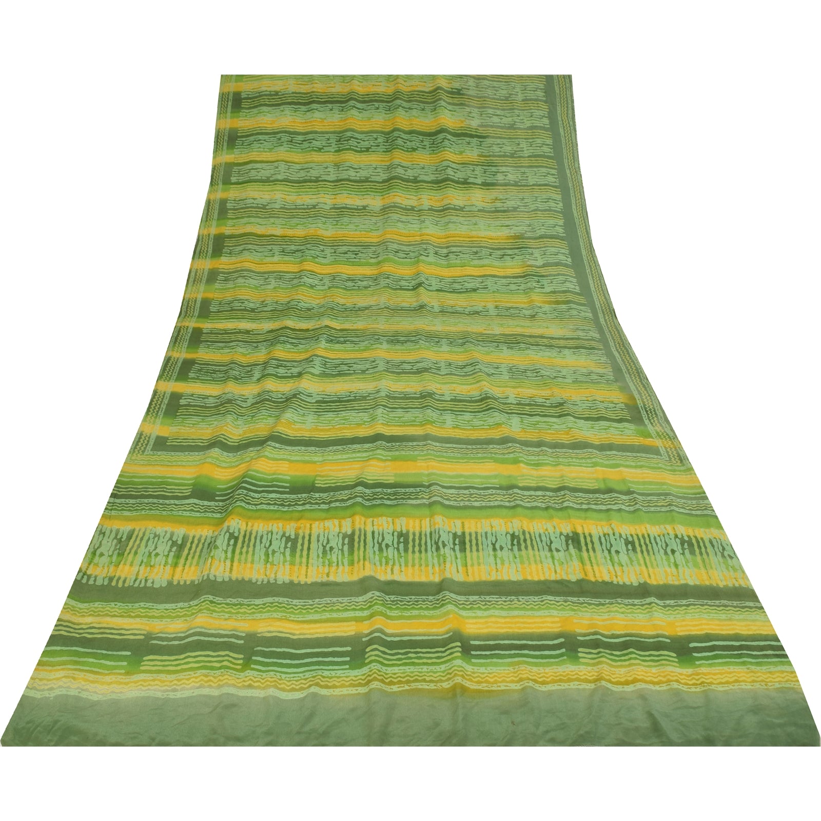 Sanskriti Vintage Sarees Green Pure Crepe Silk Printed Sari 5+yd Craft Fabric