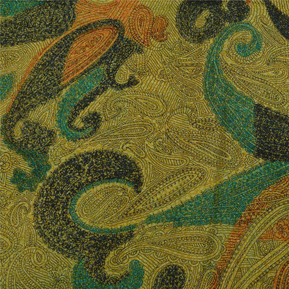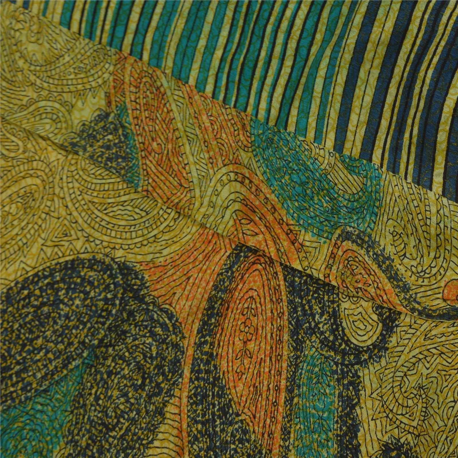 Sanskriti Vintage Sarees Green Pure Crepe Silk Printed Sari 5+yd Craft Sustainable Fabric