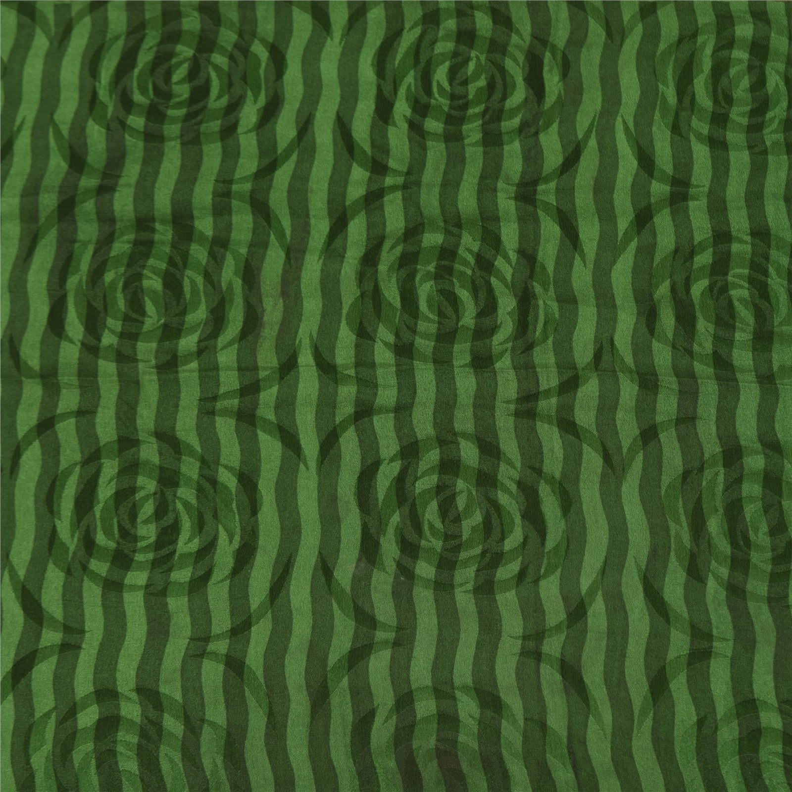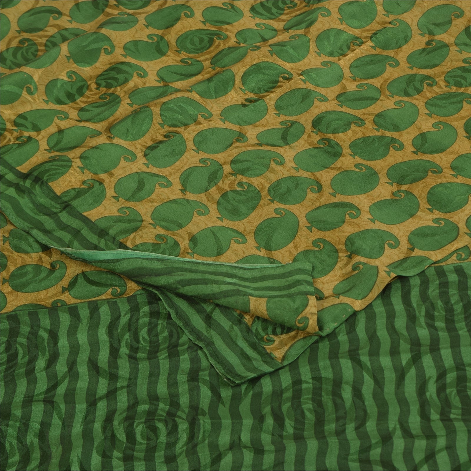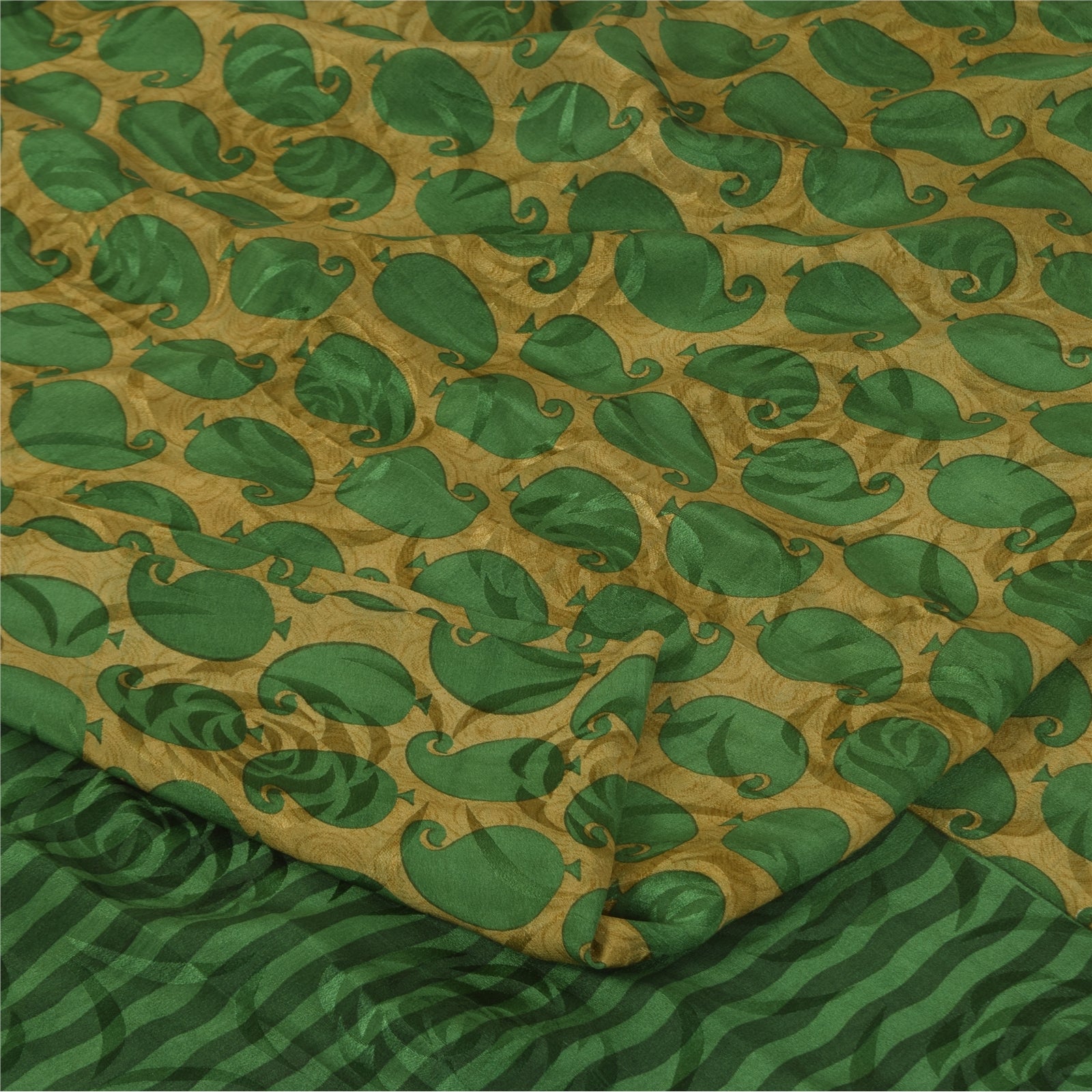 Sanskriti Vintage Sarees Green Pure Crepe Silk Printed Sari 5+yd Craft Sustainable Fabric