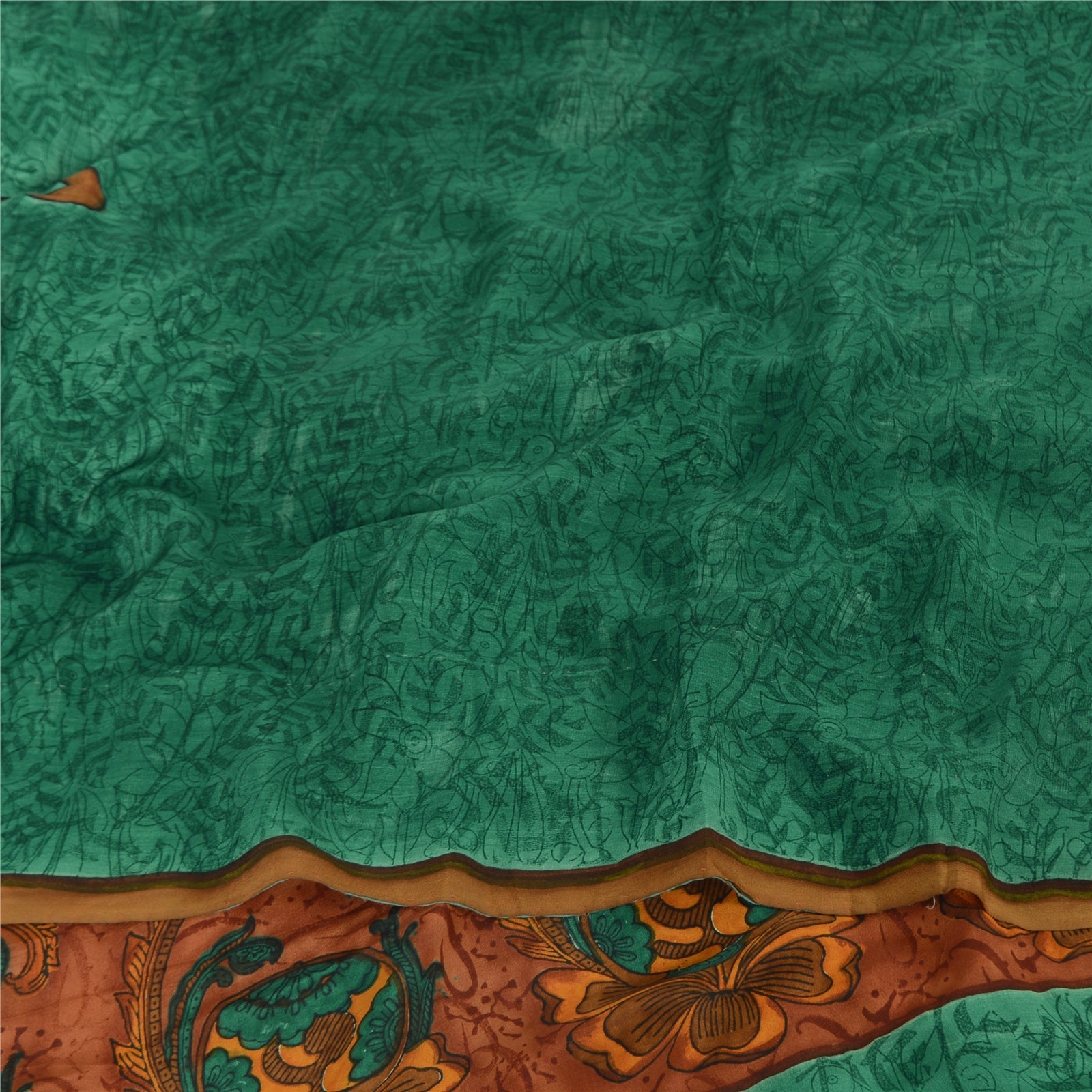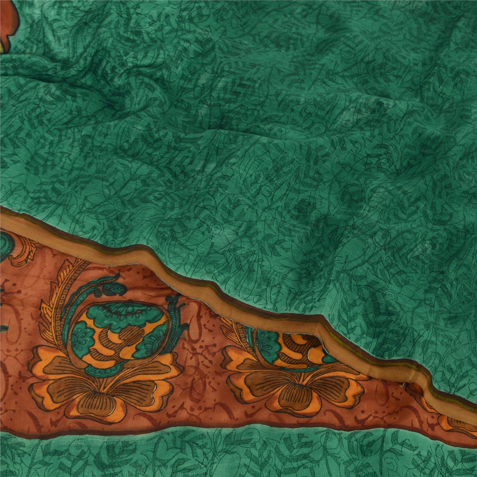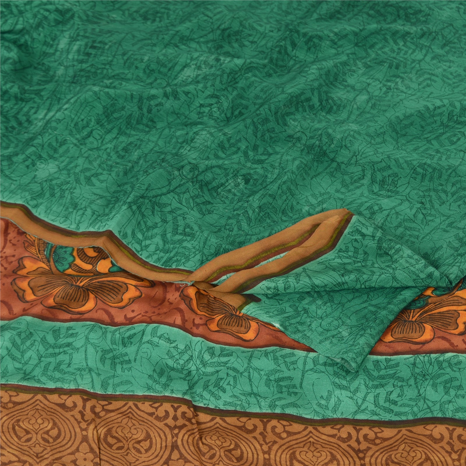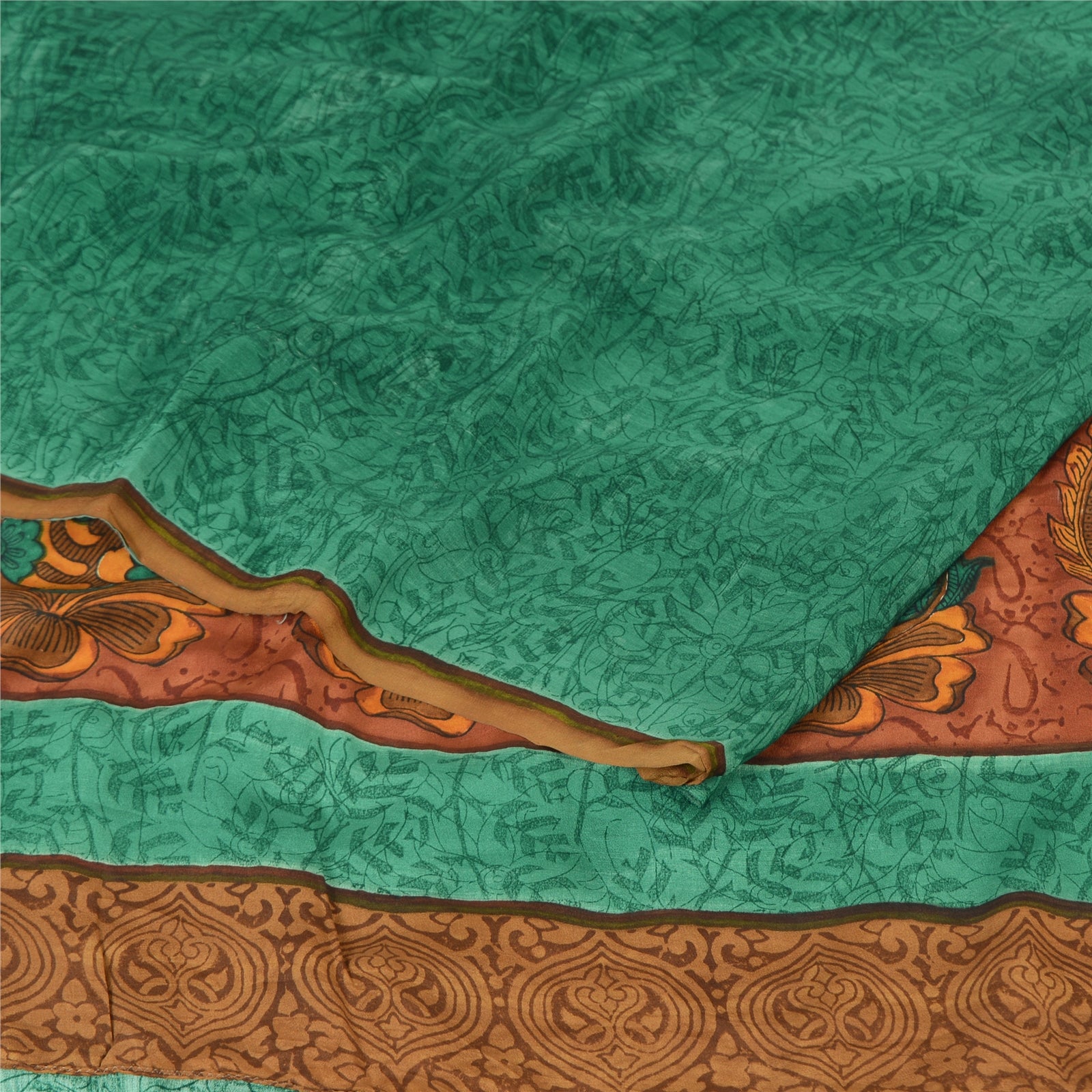 Sanskriti Vintage Sarees Green Pure Crepe Silk Printed Sari 5yd Craft Sustainable Fabric