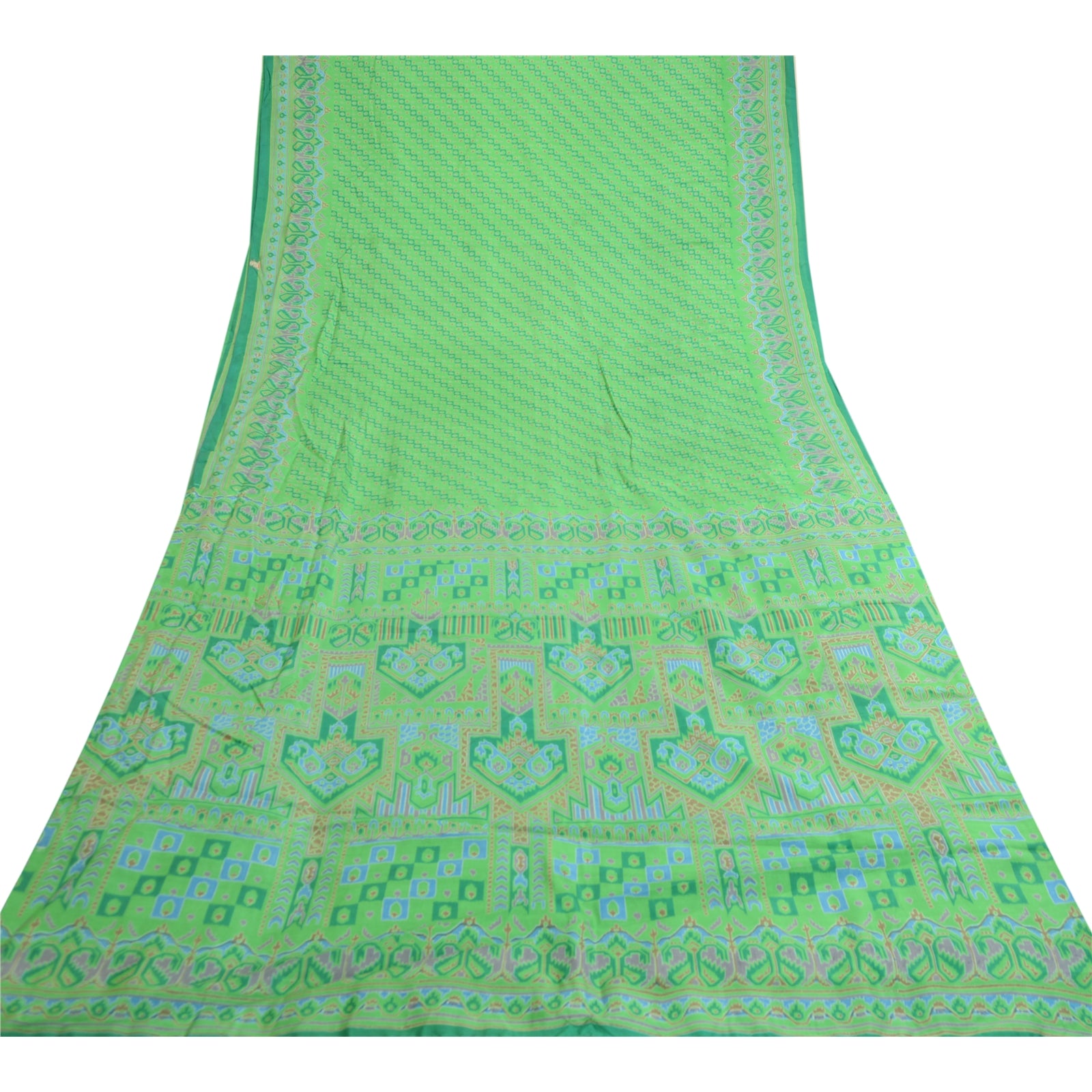 Sanskriti Vintage Sarees Green Pure Silk Printed Sari 5yd Floral Craft Sustainable Fabric