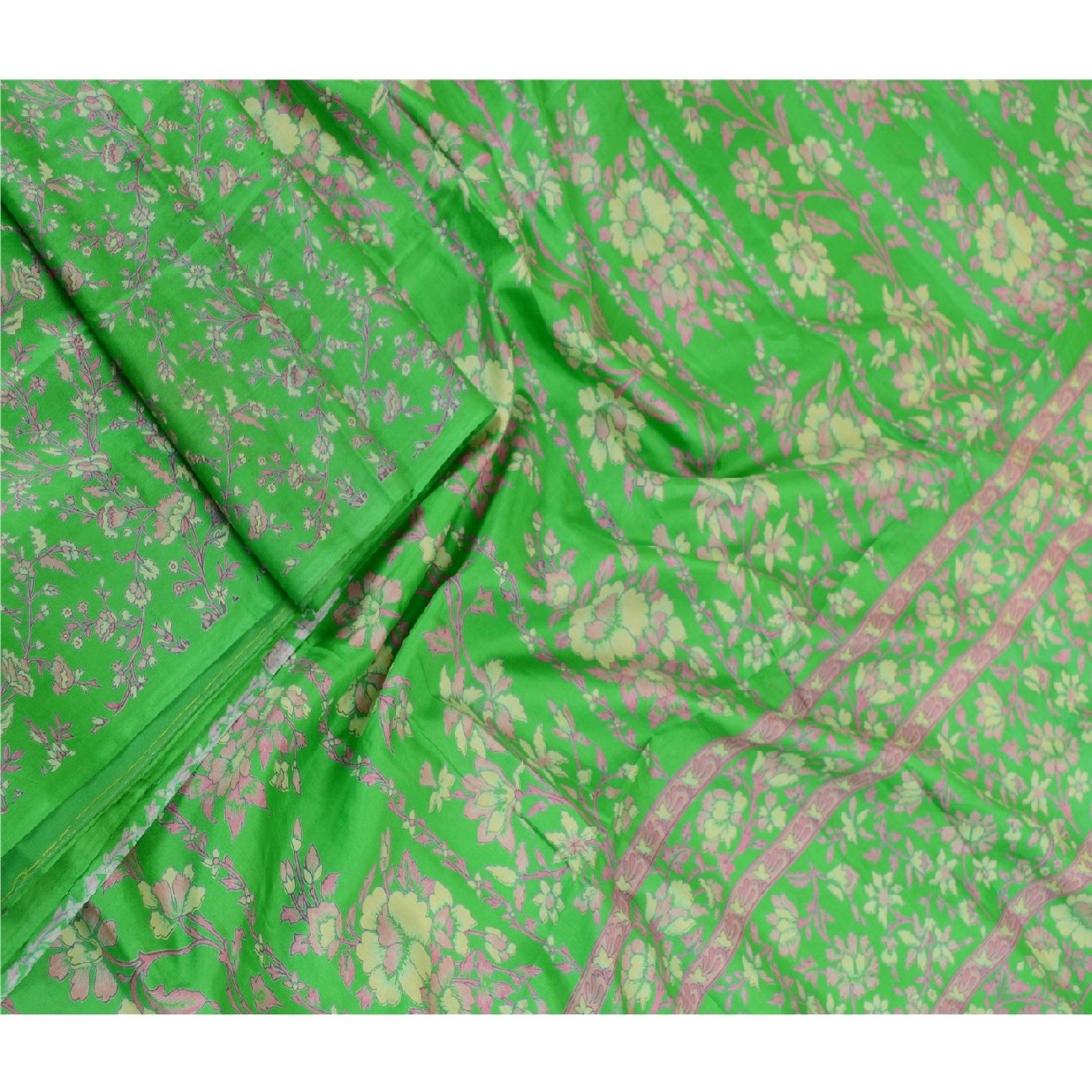 Sanskriti Vintage Sarees Green Pure Silk Printed Sari Floral Soft Craft Sustainable Fabric
