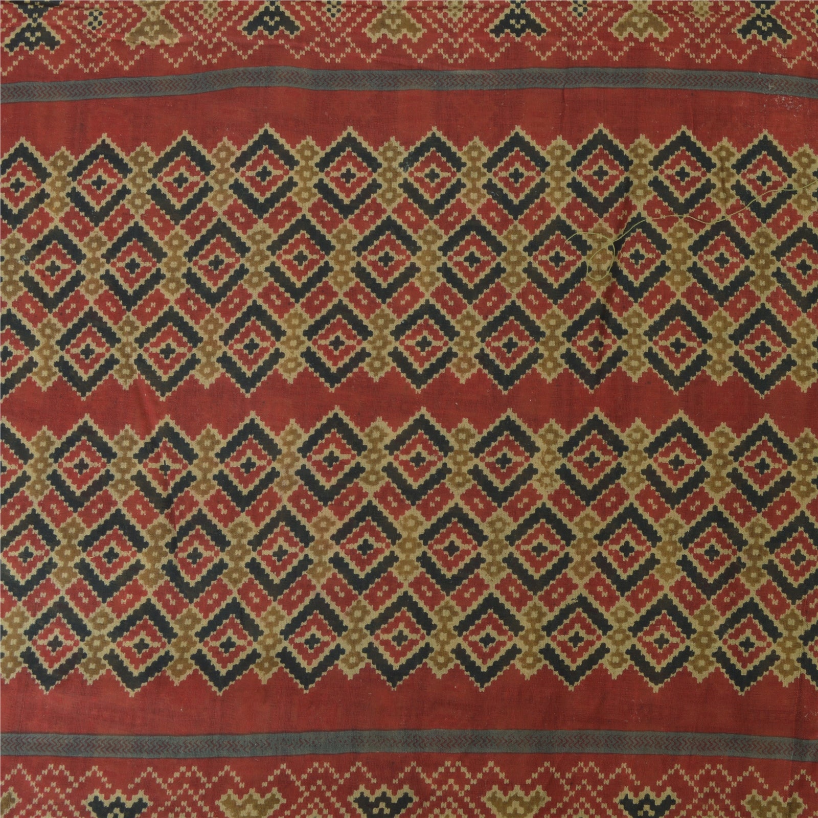 Sanskriti Vintage Sarees Green/Red 100%Pure Cotton Printed Sari 6yd Craft Sustainable Fabric