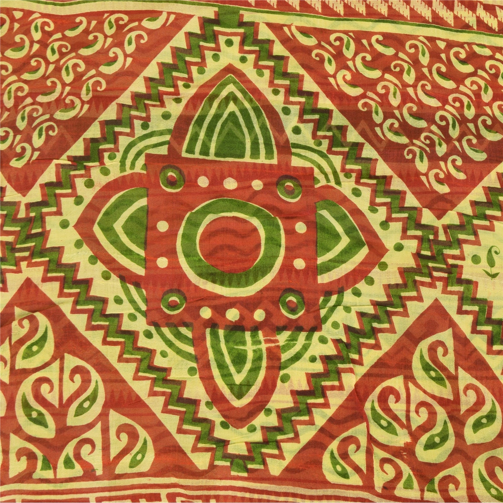 Sanskriti Vintage Sarees Green/Red 100% Pure Silk Printed Sari 5yd Craft Sustainable Fabric