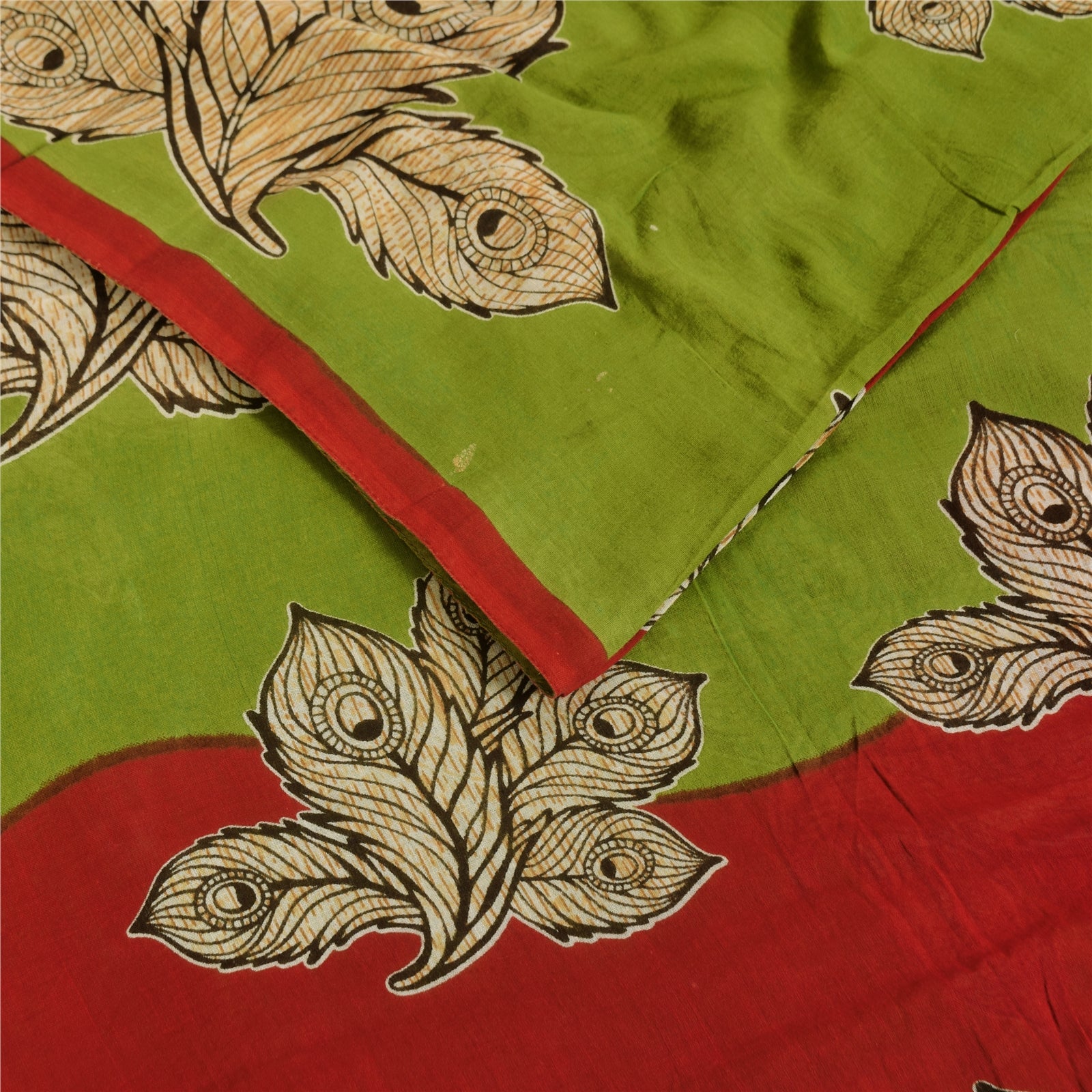 Sanskriti Vintage Sarees Green/Red Pure Cotton Kalamkari Printed Sari Sustainable Fabric